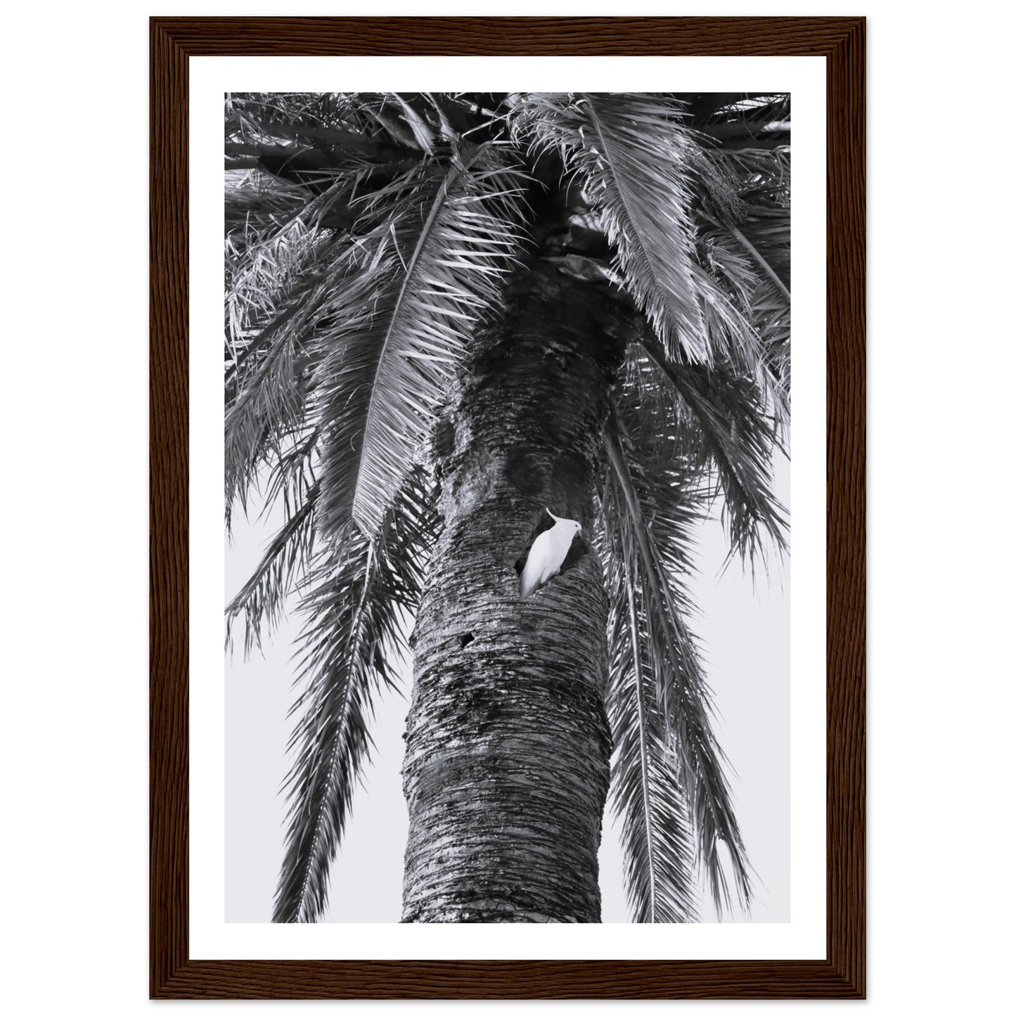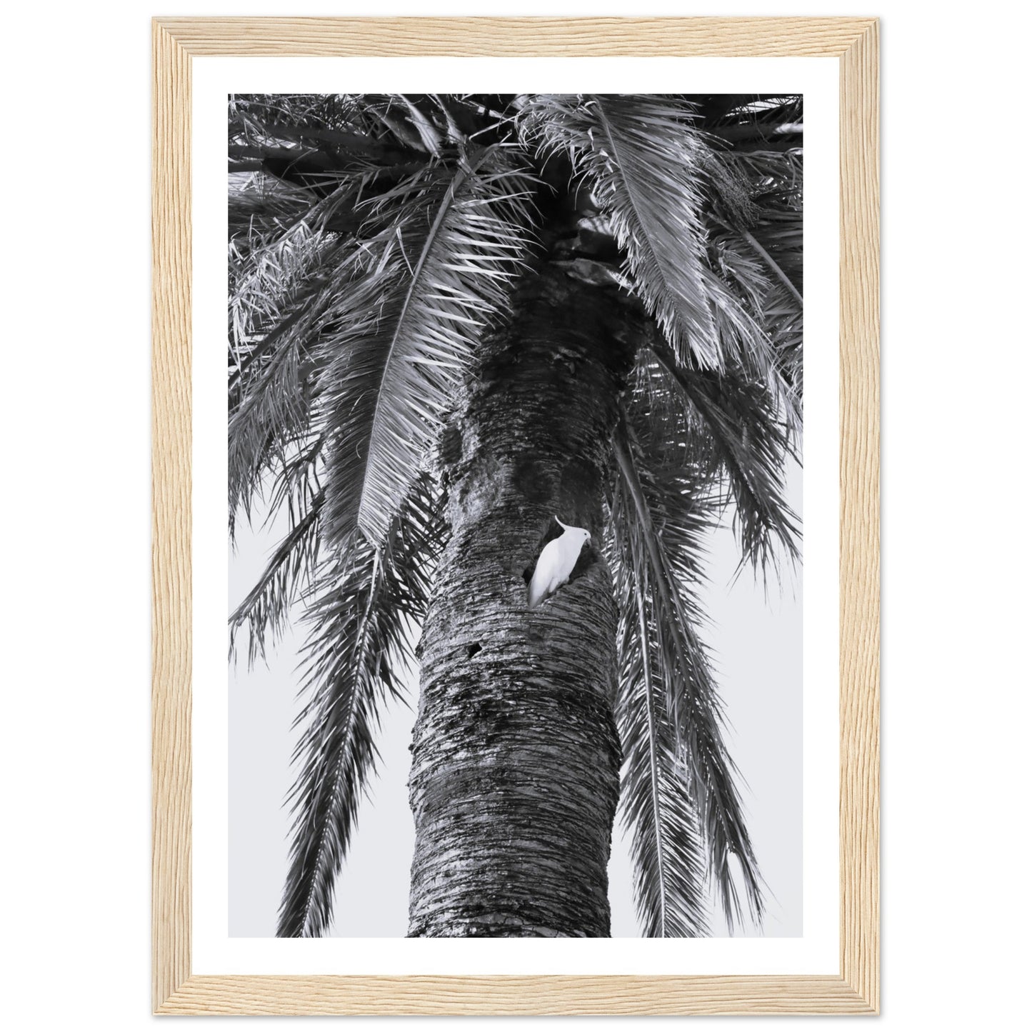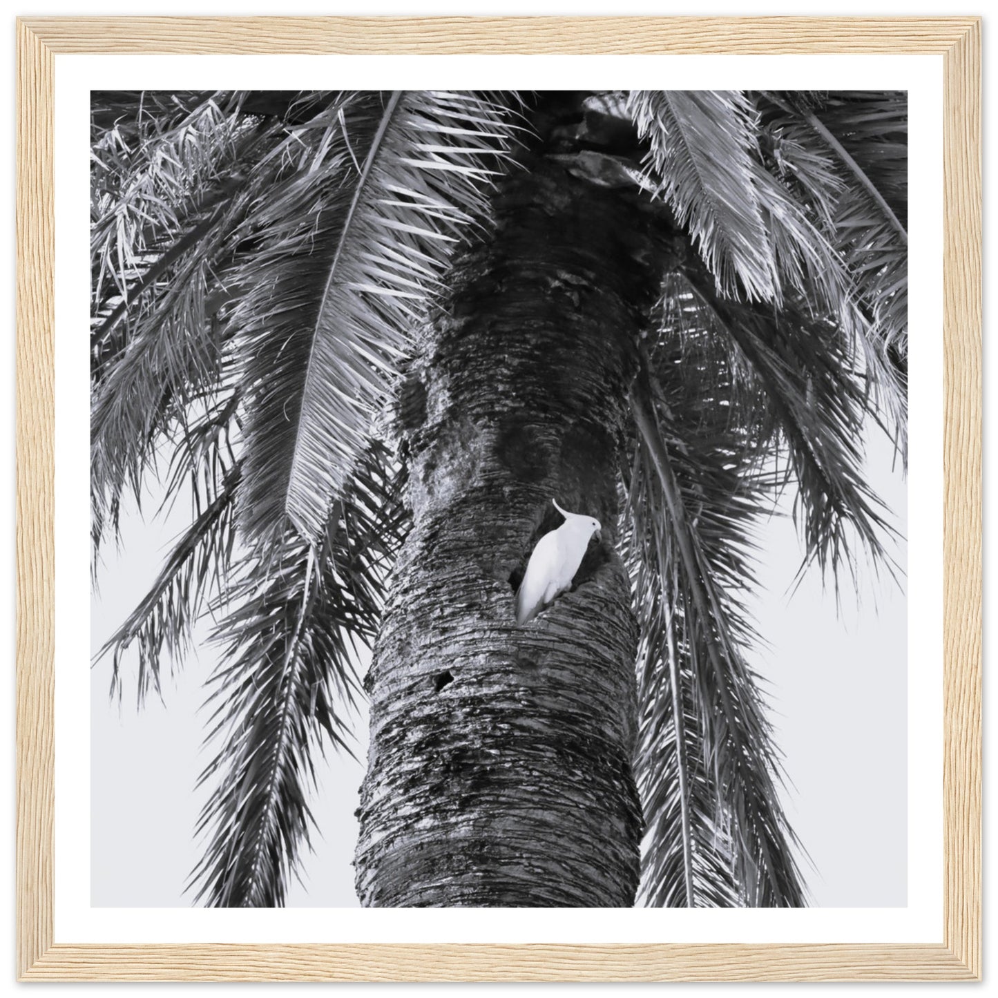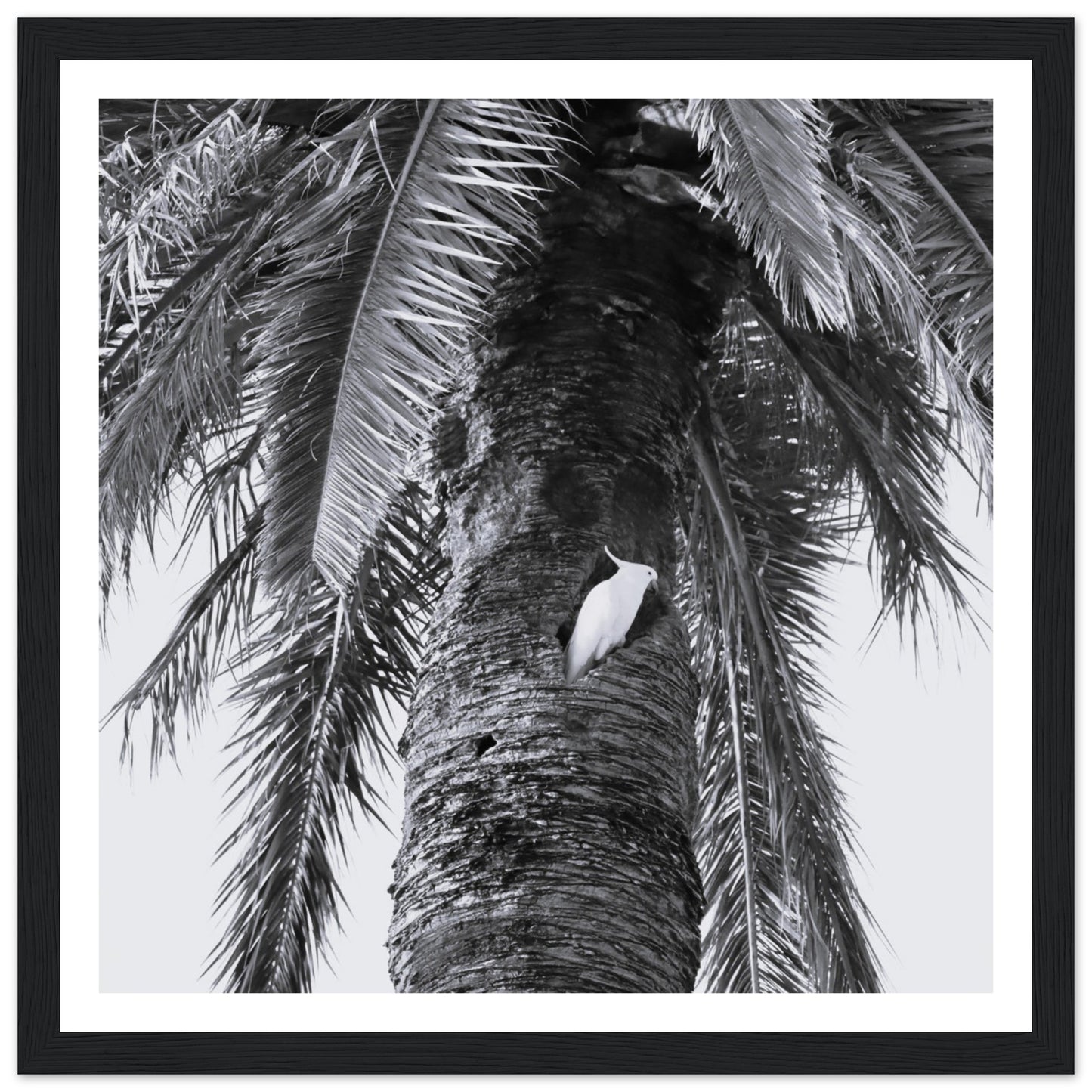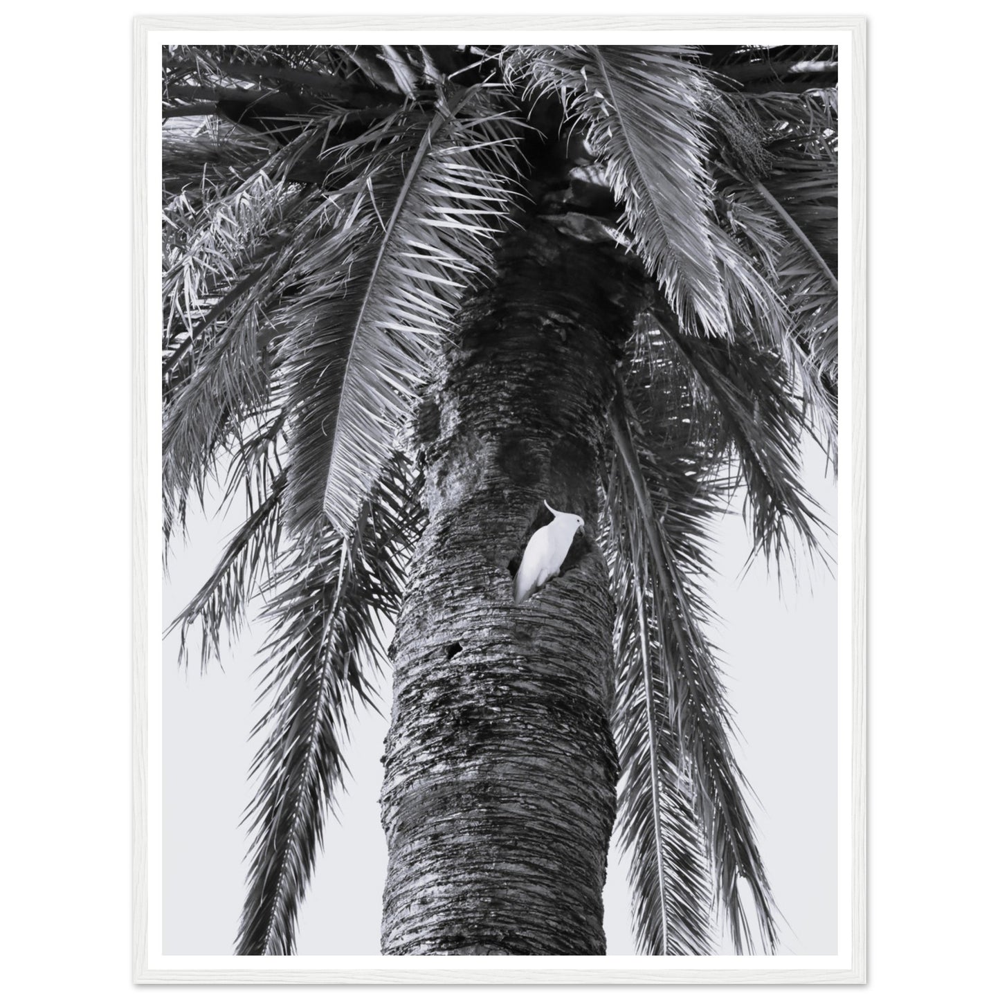 Cockatoo in palm tree - Black & White - Premium Matte Paper Wooden Framed Poster