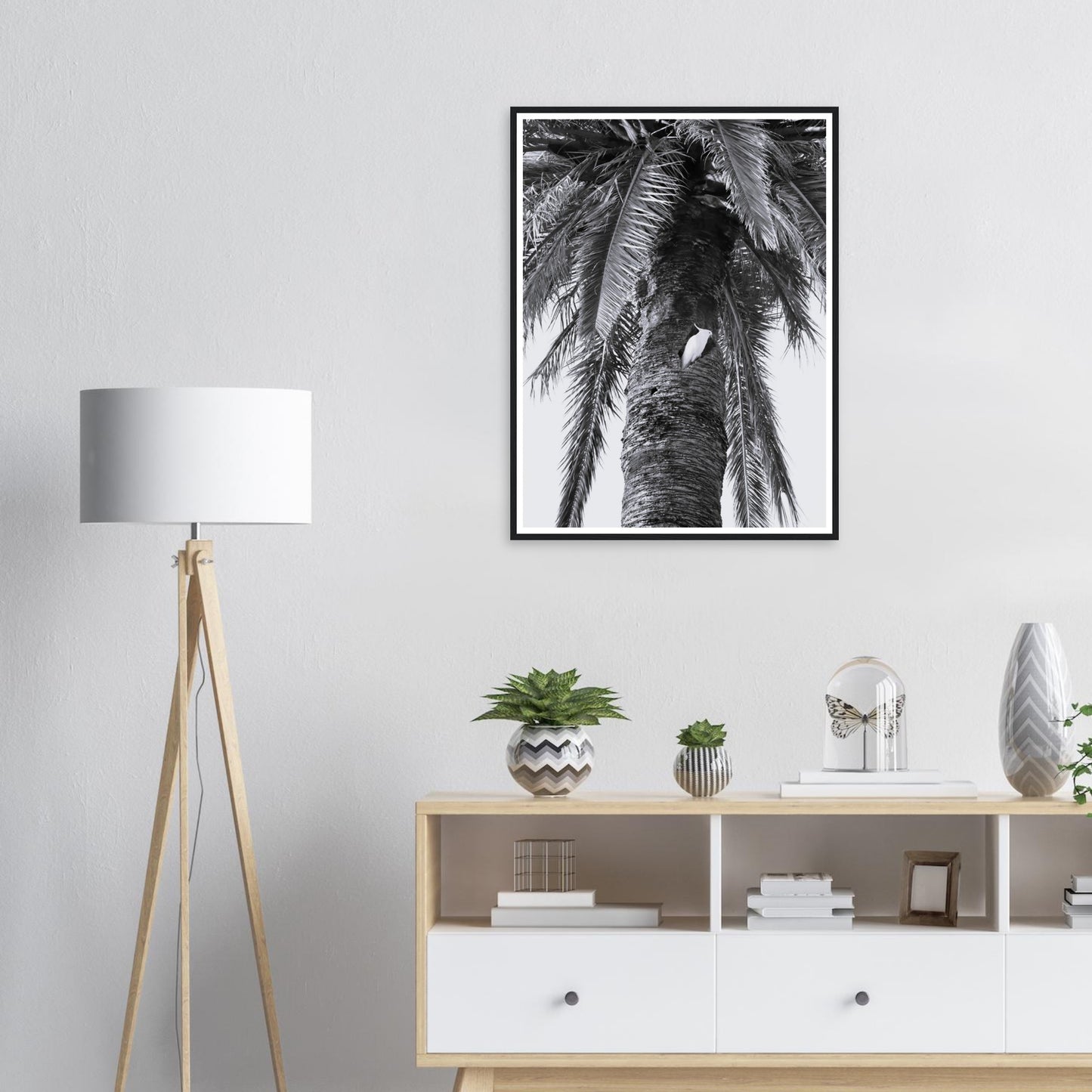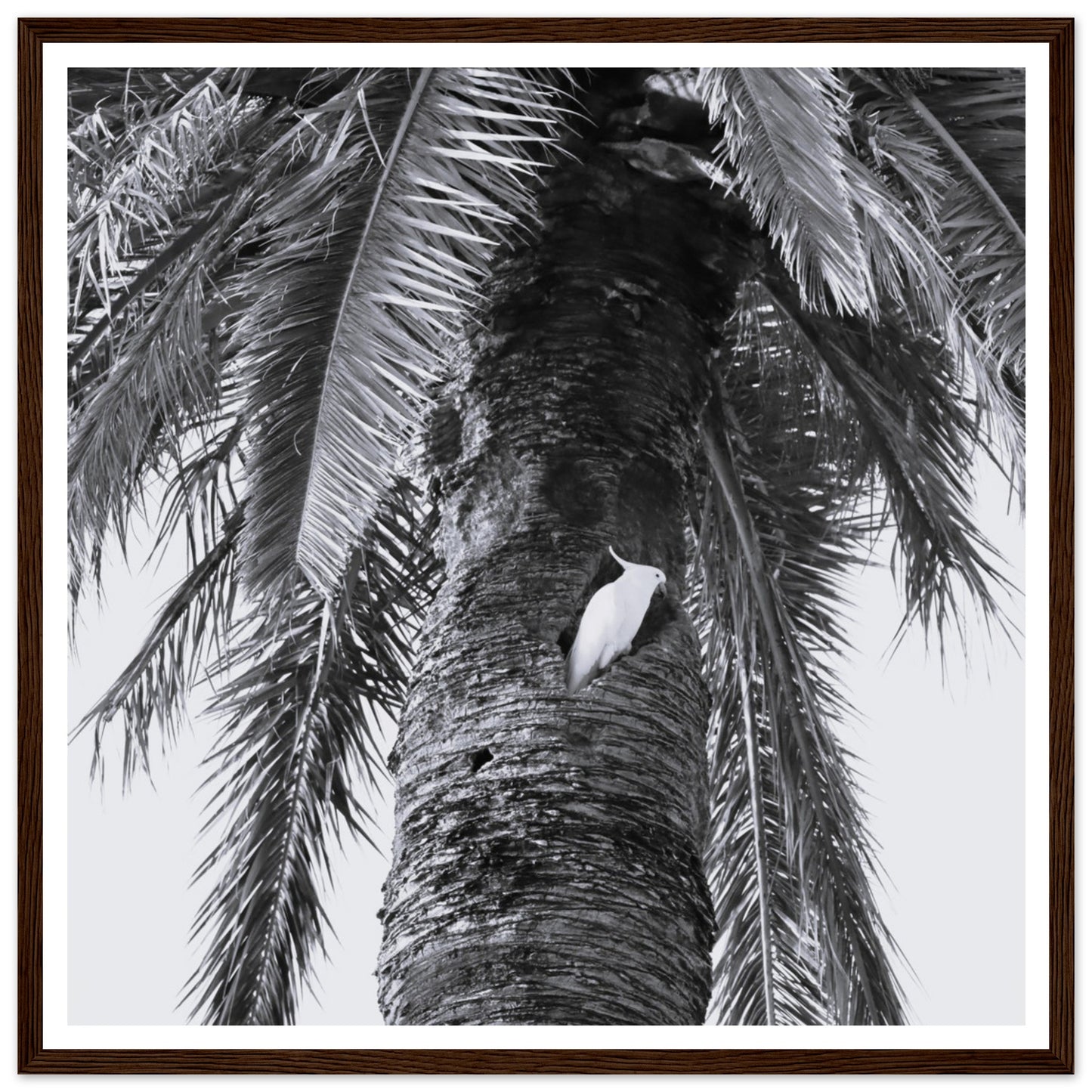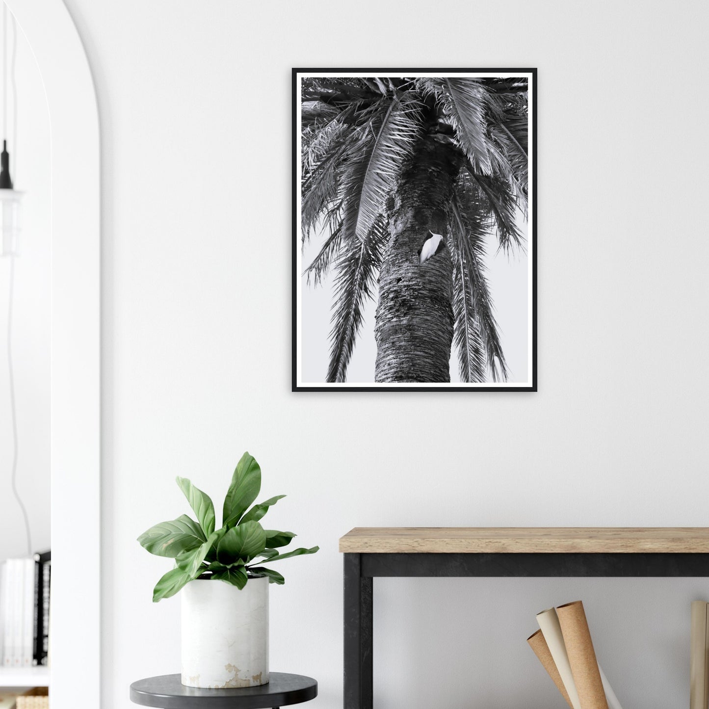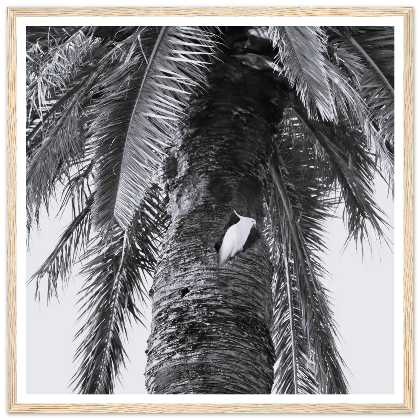 Cockatoo in palm tree - Black & White - Premium Matte Paper Wooden Framed Poster