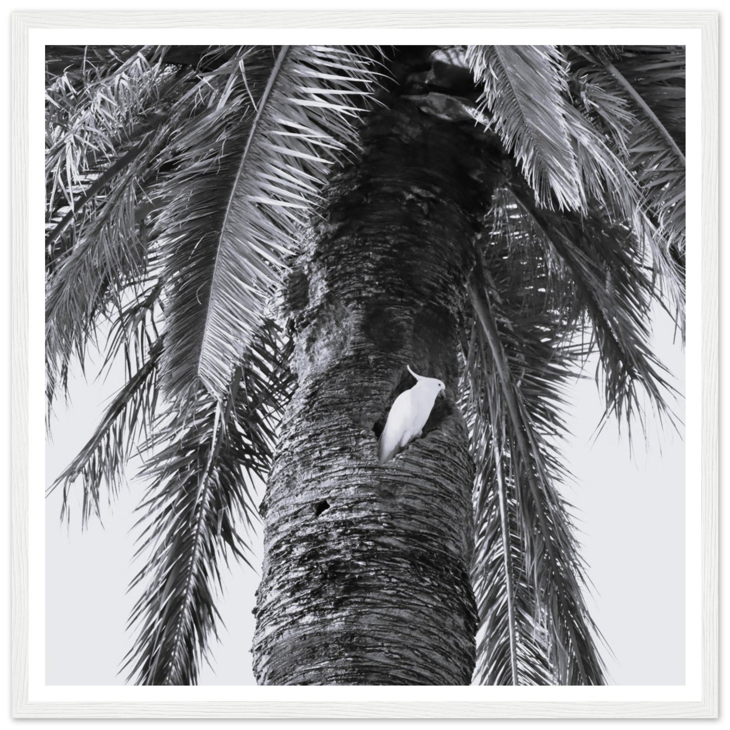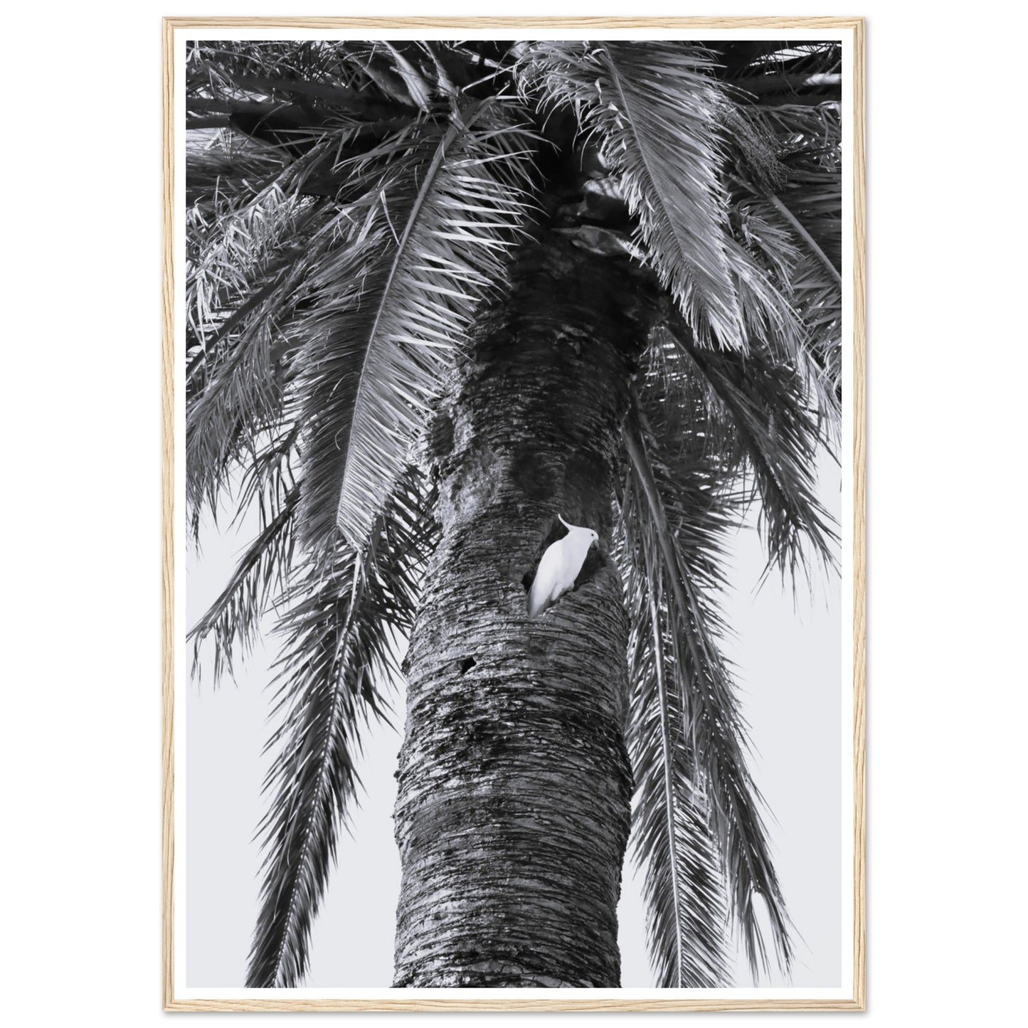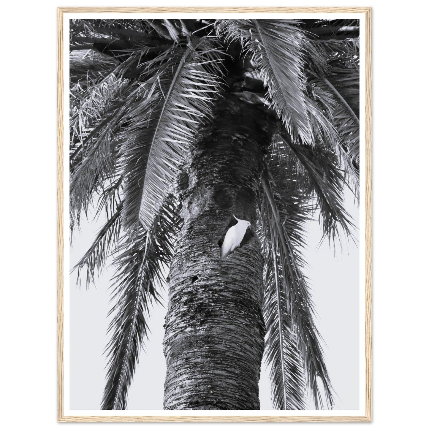 Cockatoo in palm tree (B&W) - Premium Matte Paper Wooden Framed Poster