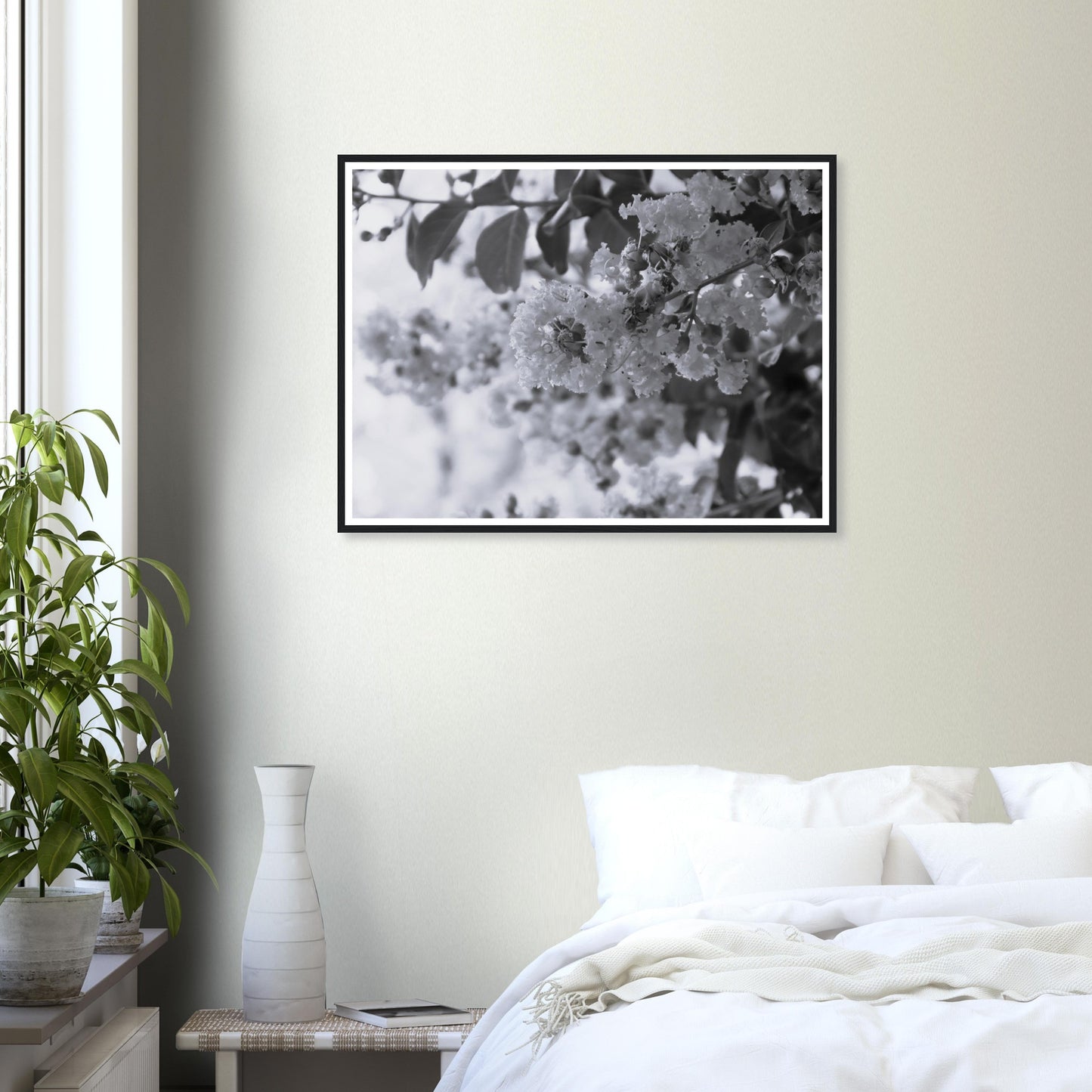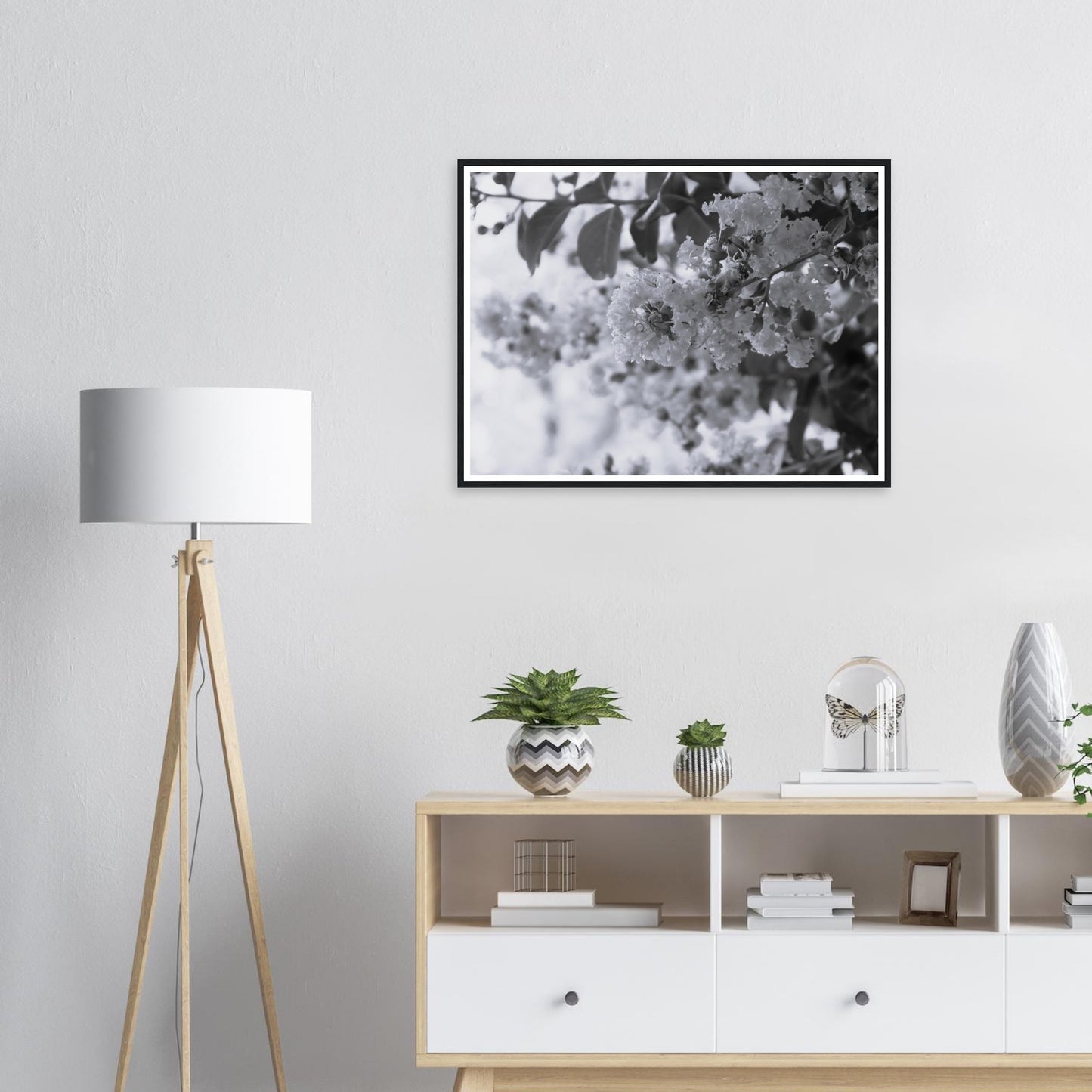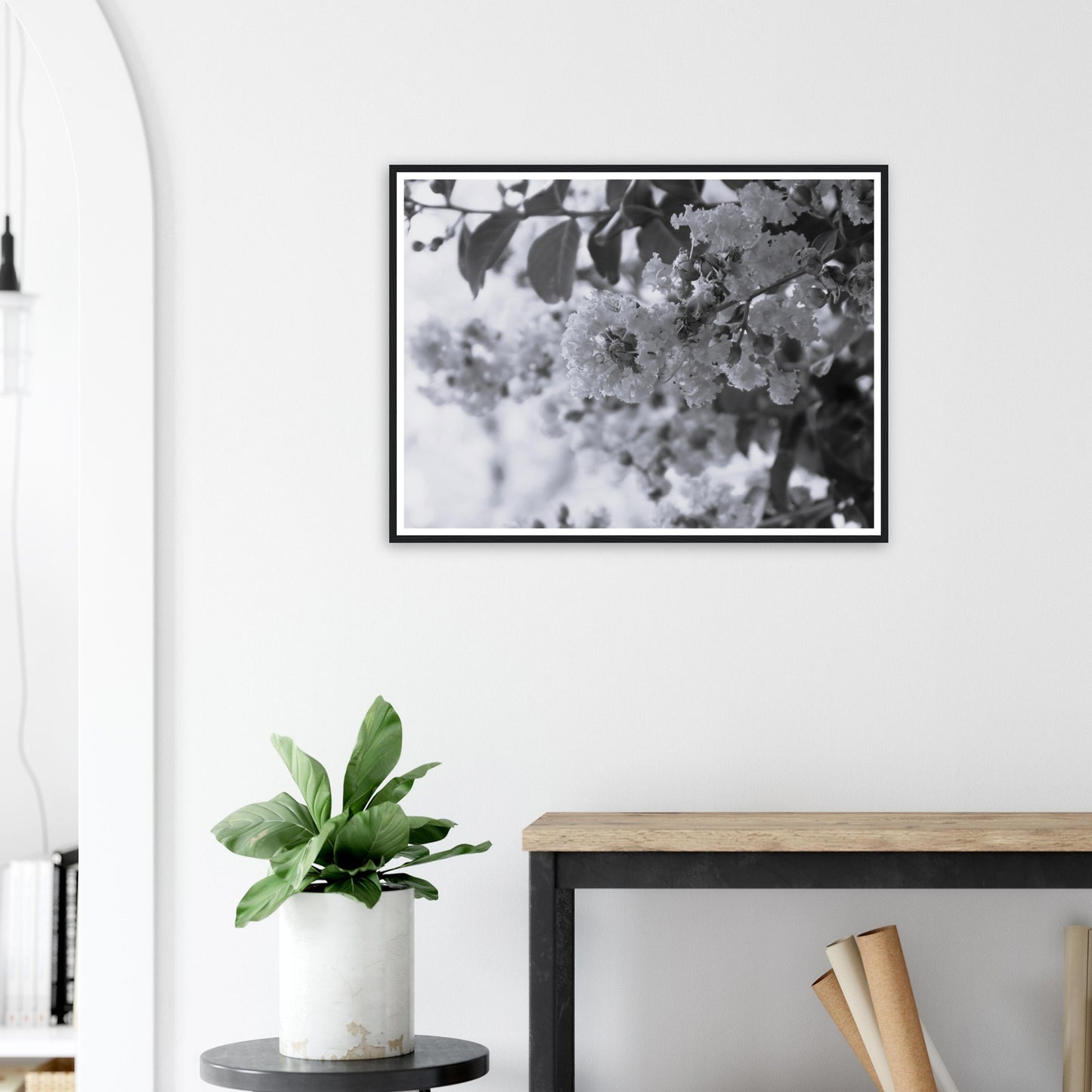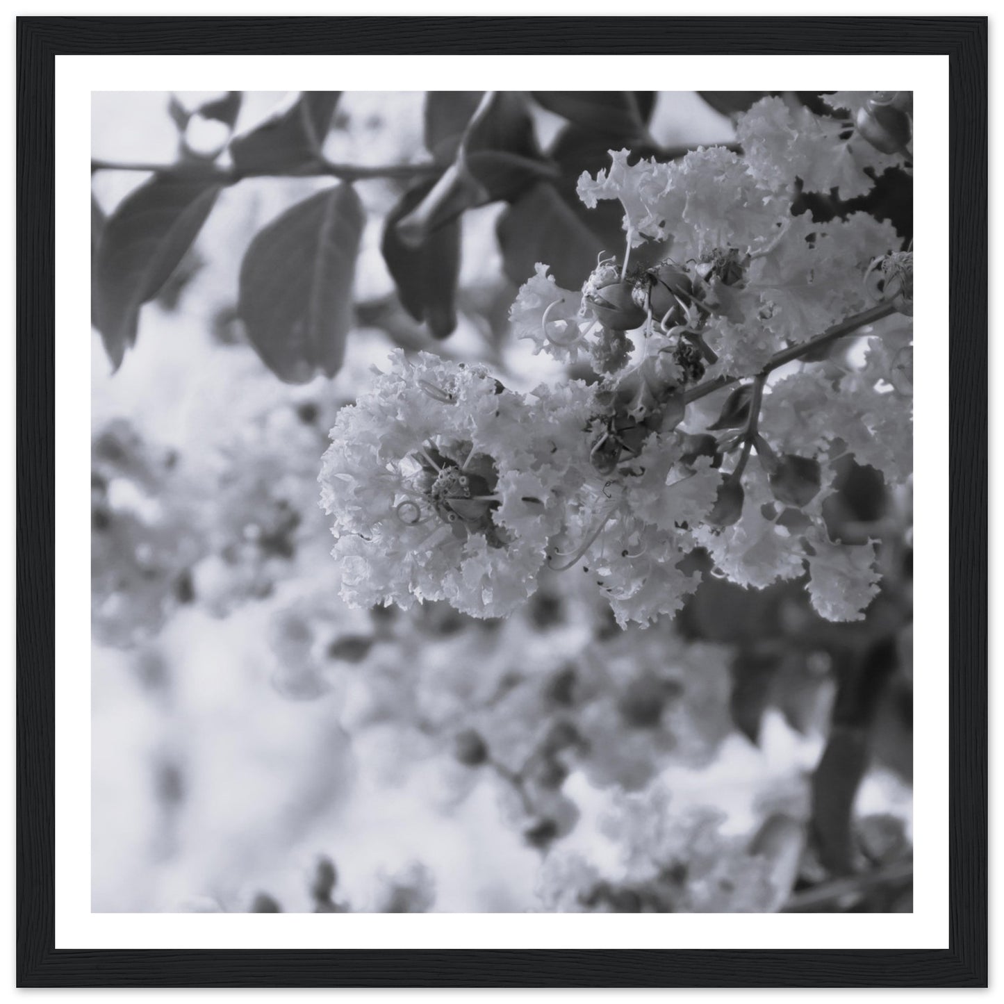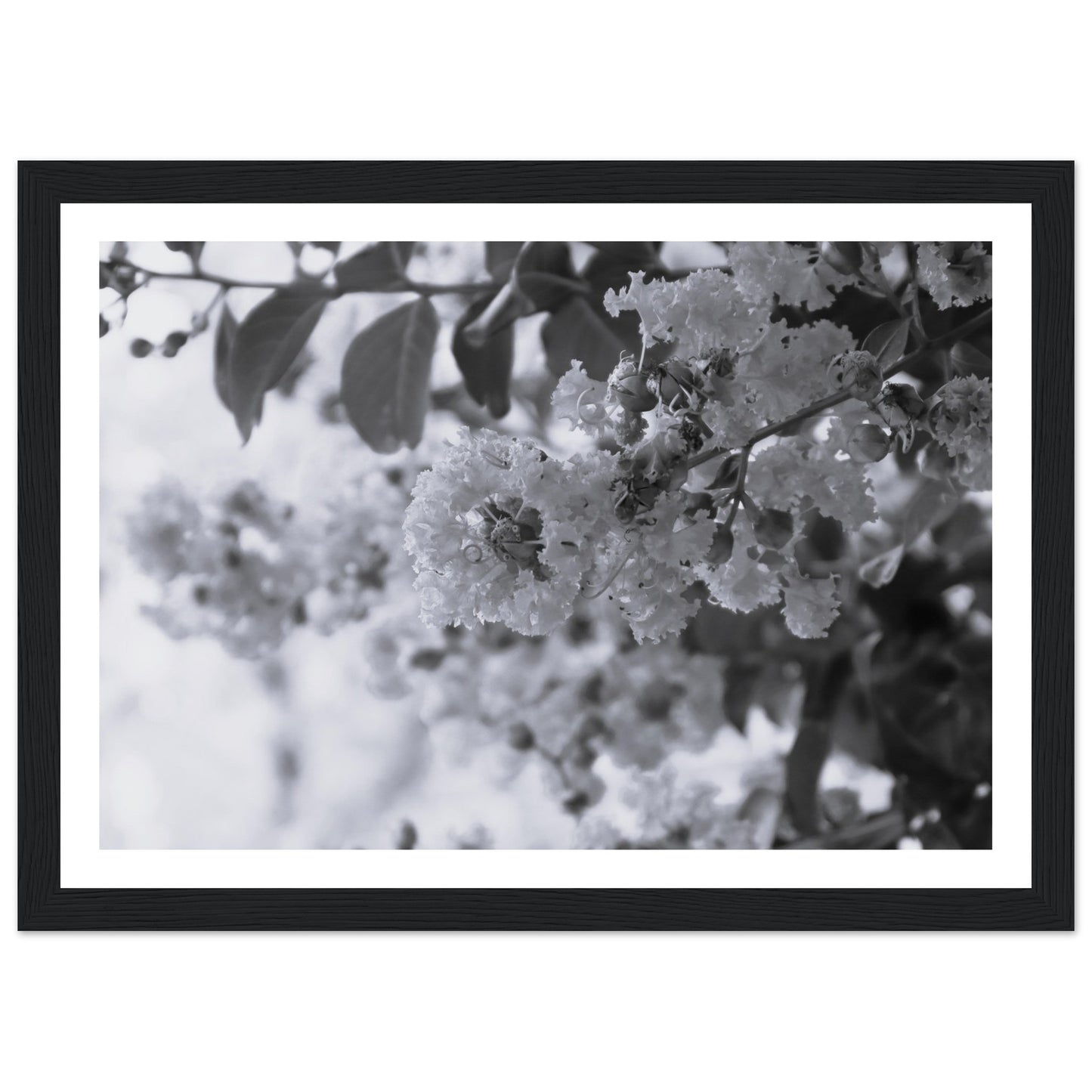 Crape myrtle - Black & White - Premium matte paper poster with wooden frame
