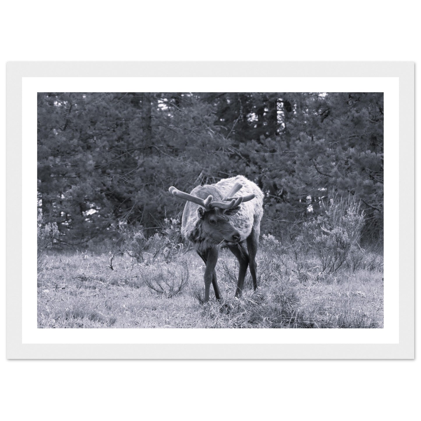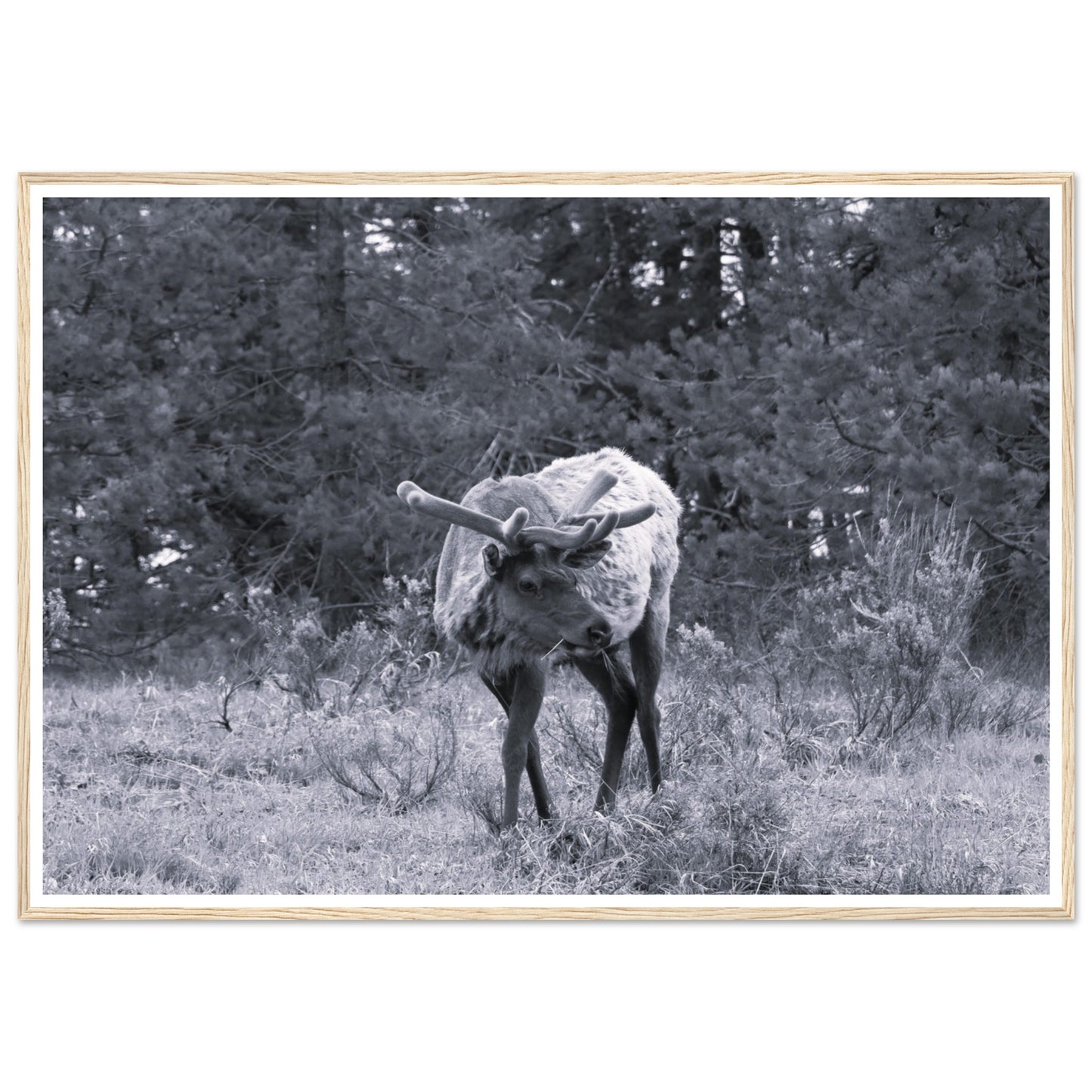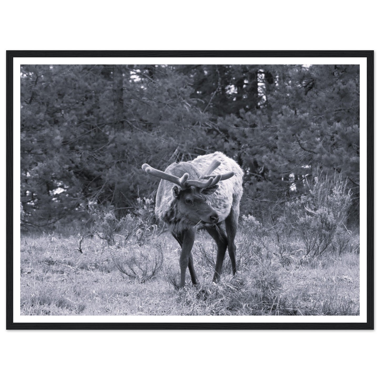 Elk, Grand Teton National Park (B&W) - Premium Matte Paper Wooden Framed Poster