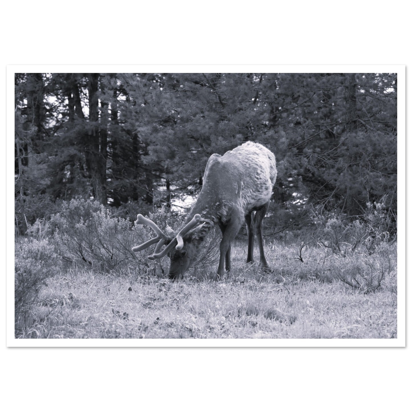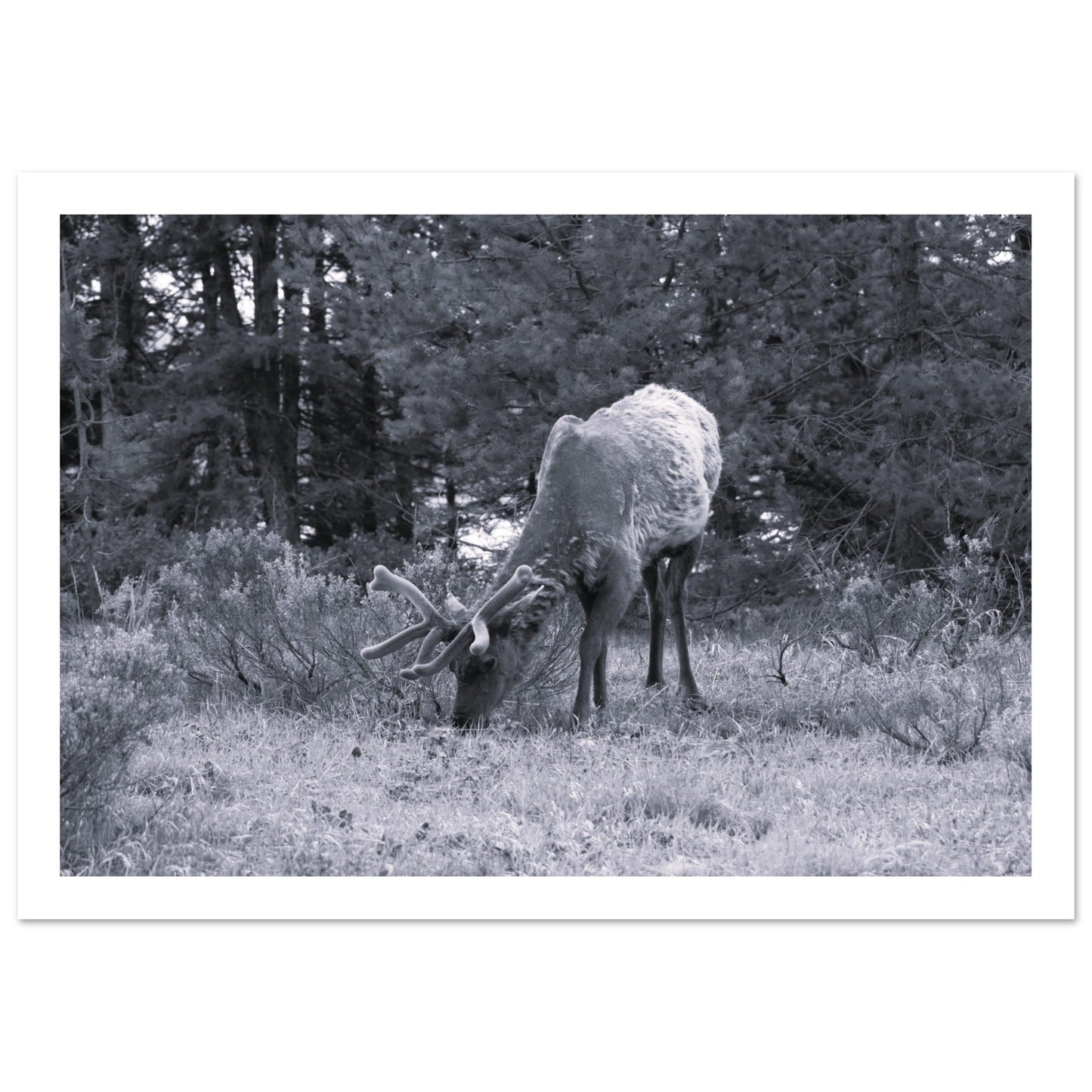 Elk in Grand Teton National Park - Black & White - Premium Matte Paper Poster