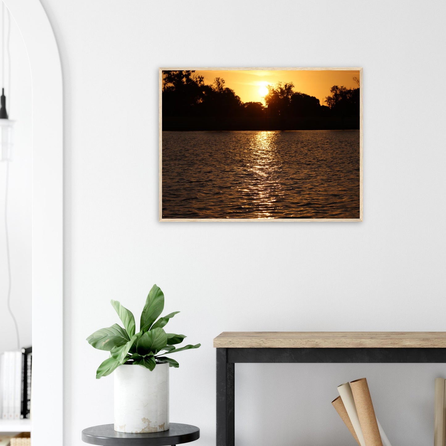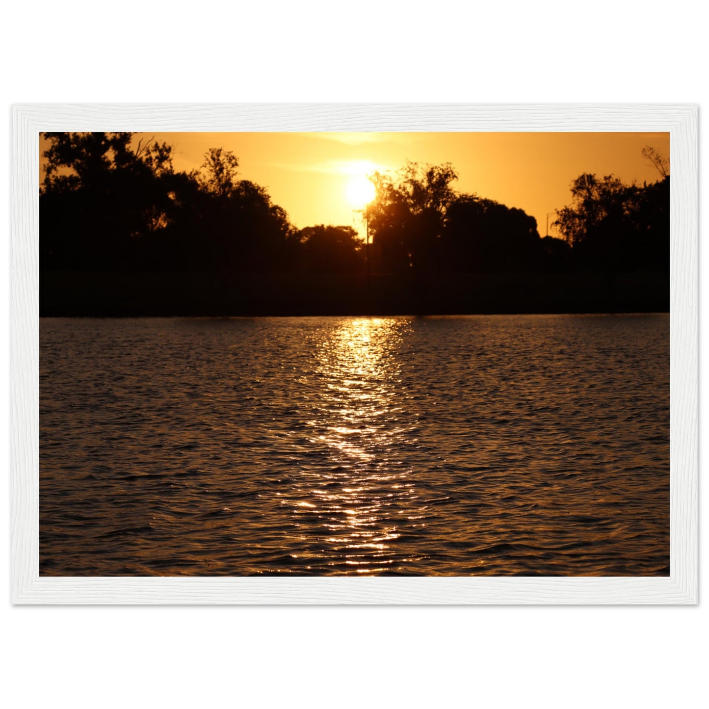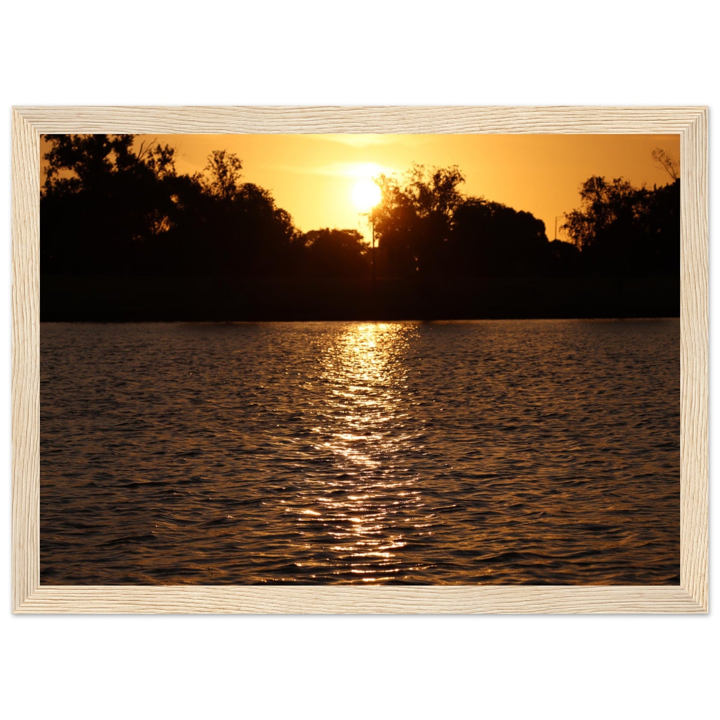 Evening sunlight over the lake - Premium Matte Paper Wooden Framed Poster