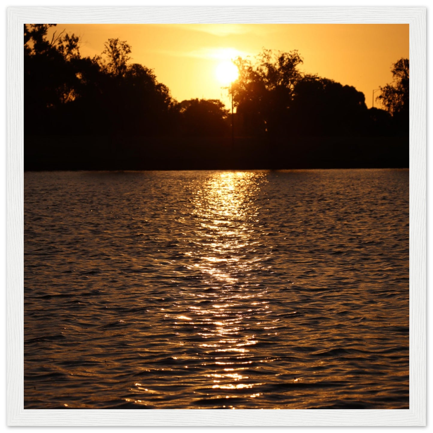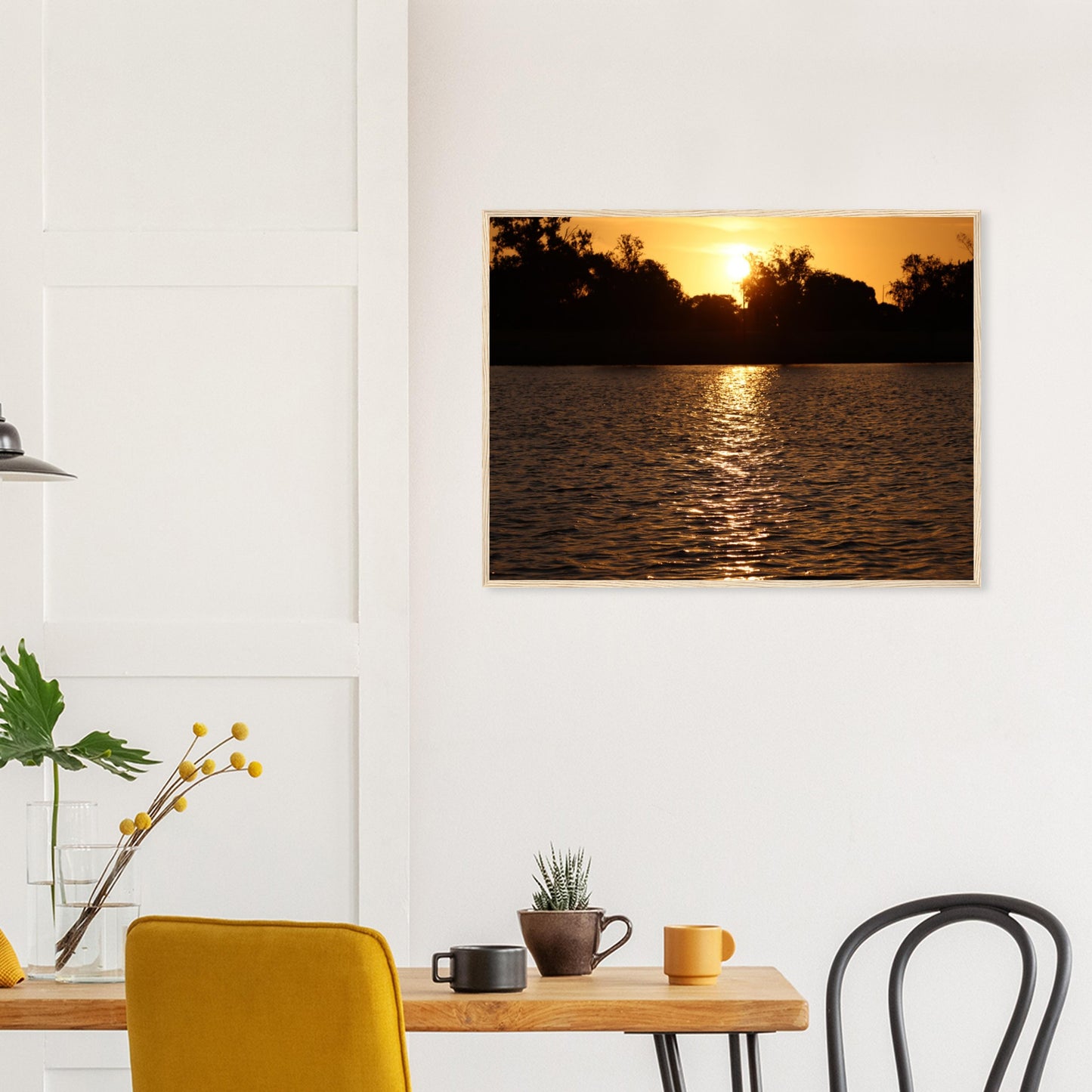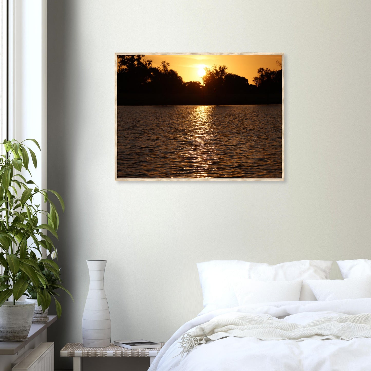 Evening sunlight over the lake - Premium Matte Paper Wooden Framed Poster