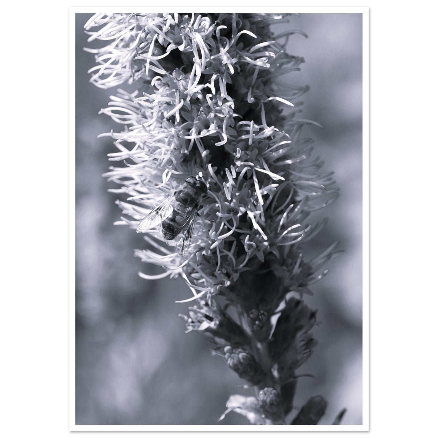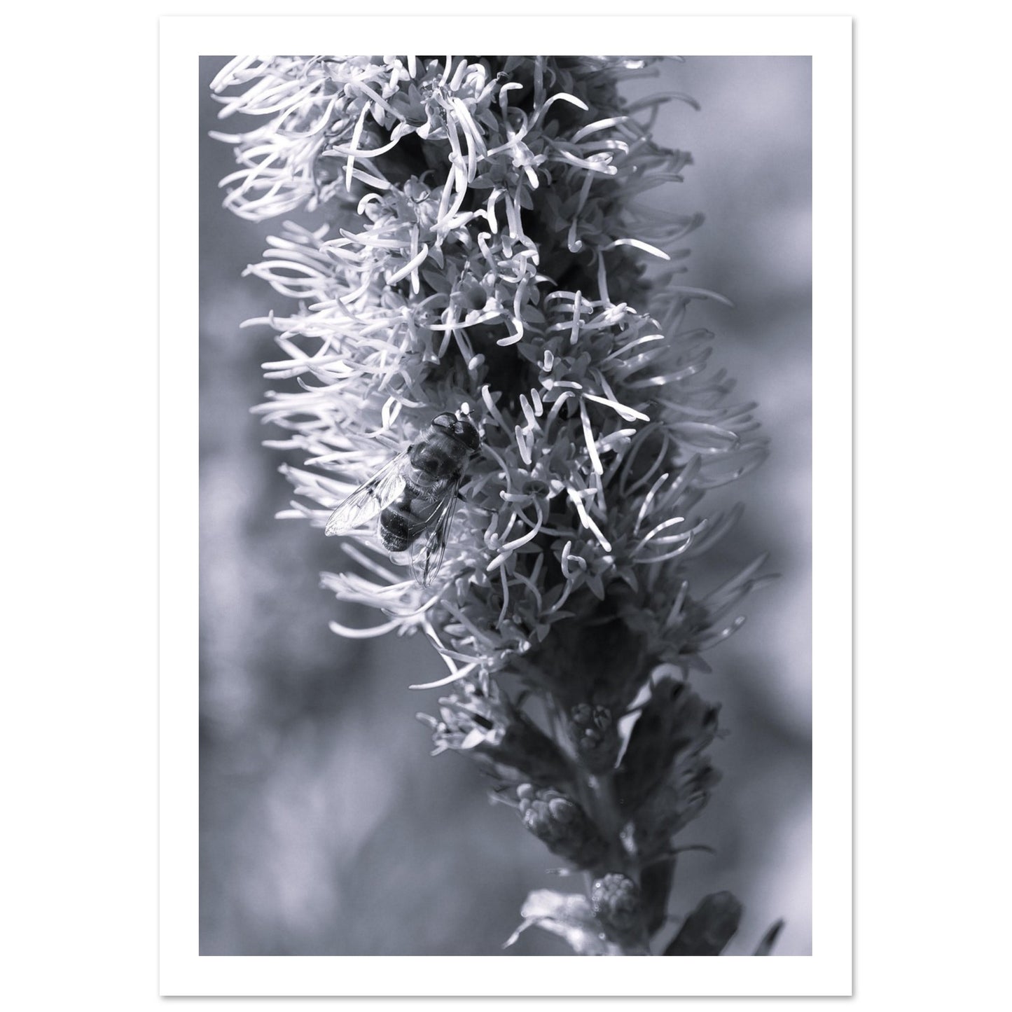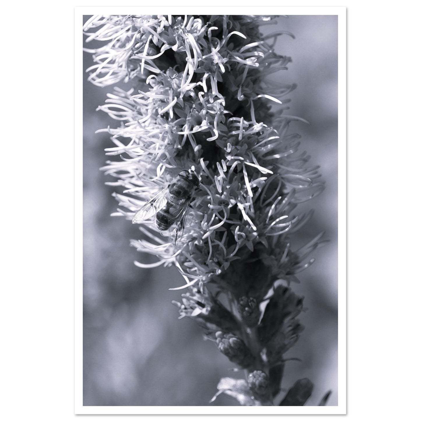 Foraging bee on liatris flower - Black & White - Premium Matte Paper Poster