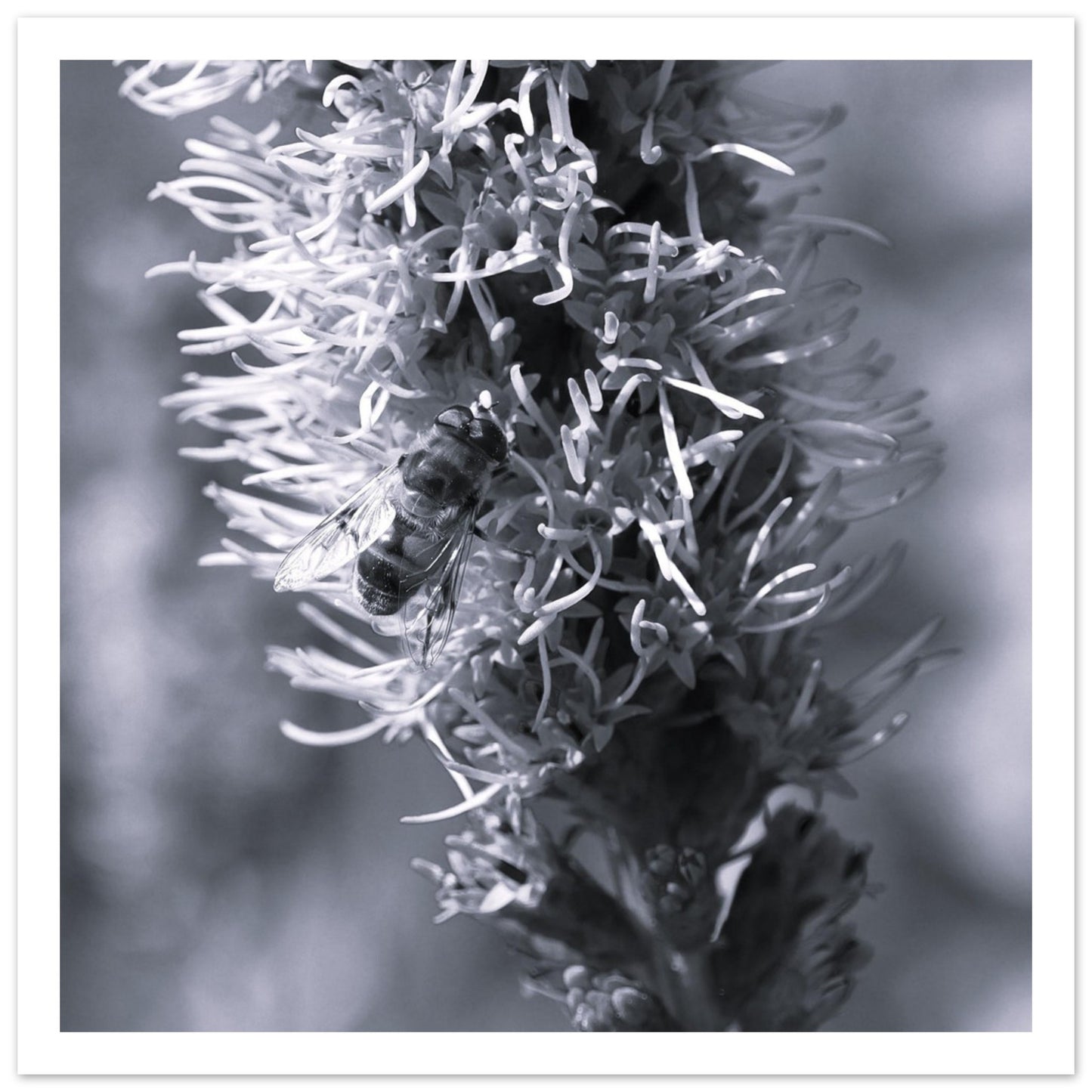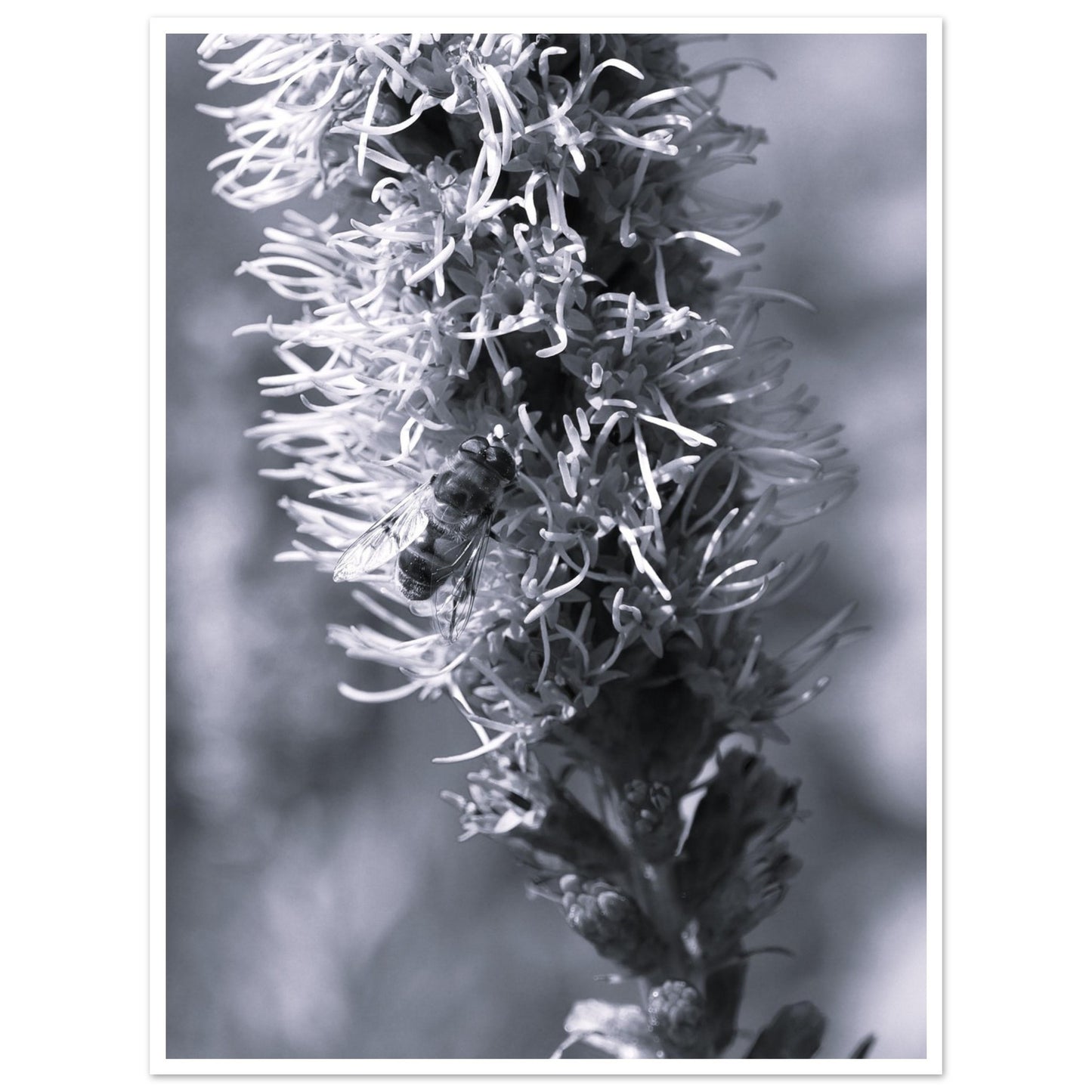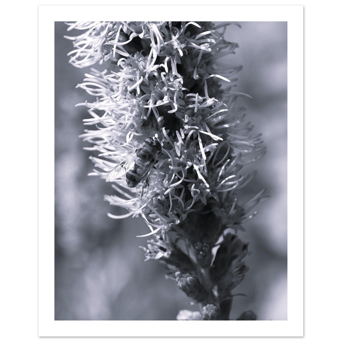 Foraging bee on liatris flower - Black & White - Premium Matte Paper Poster