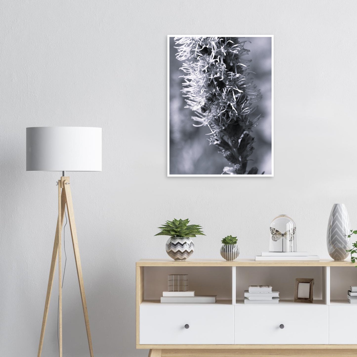 Foraging bee on liatris flower (B&W) - Premium Matte Paper Poster