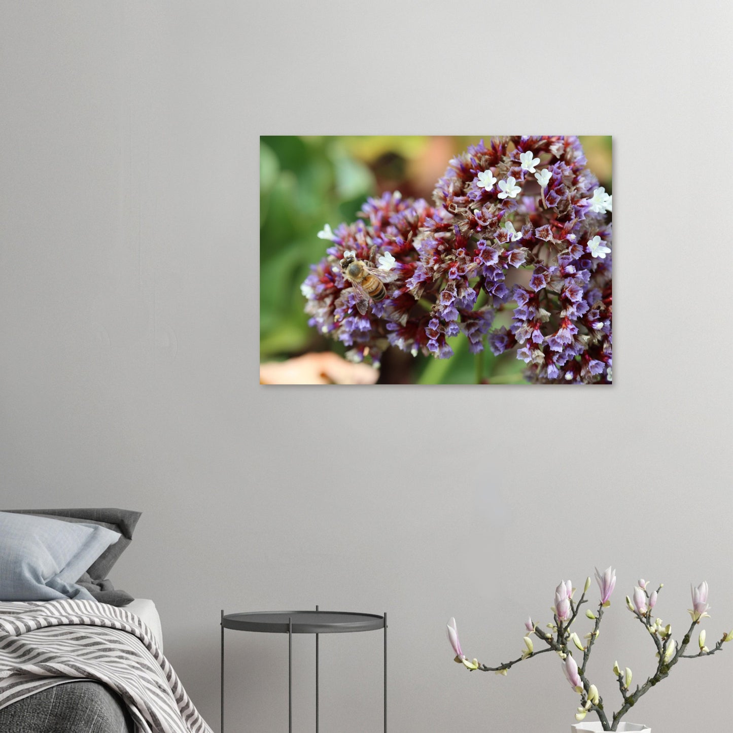 Foraging bee on summer flowers - Premium Matte Paper Poster