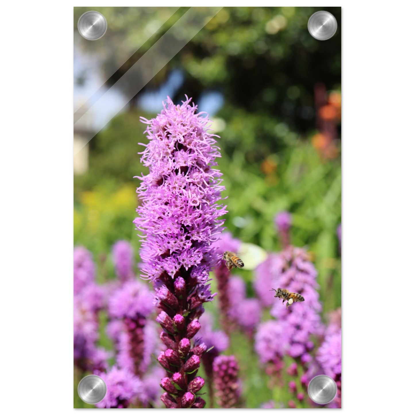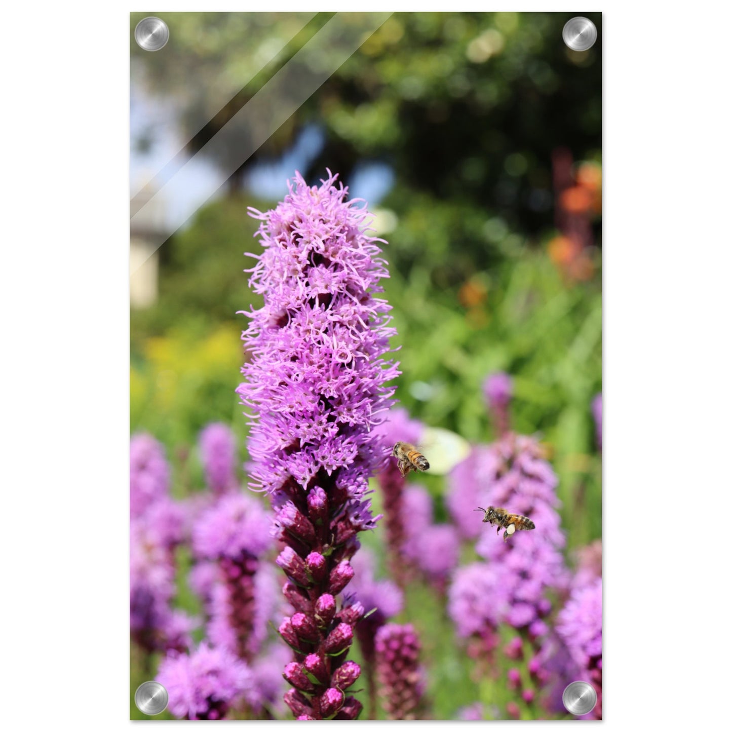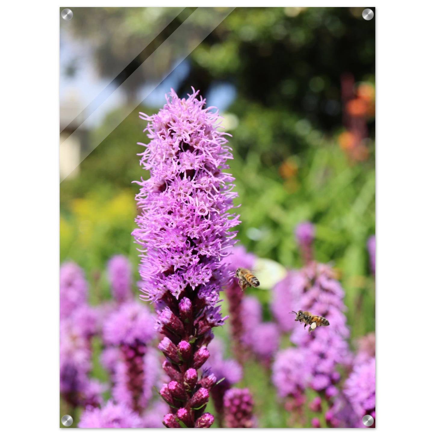 Foraging bees on spring liatris flowers - Acrylic print (lightweight, shatterproof, and temperature-resistant, making them easy to mount on your walls.)