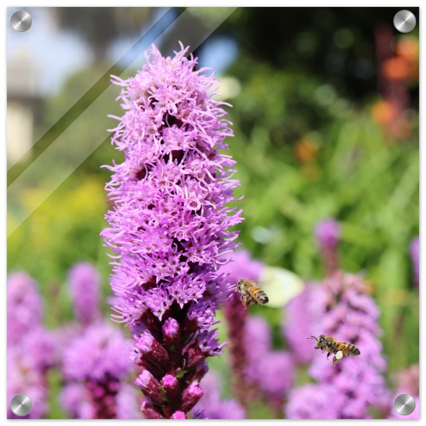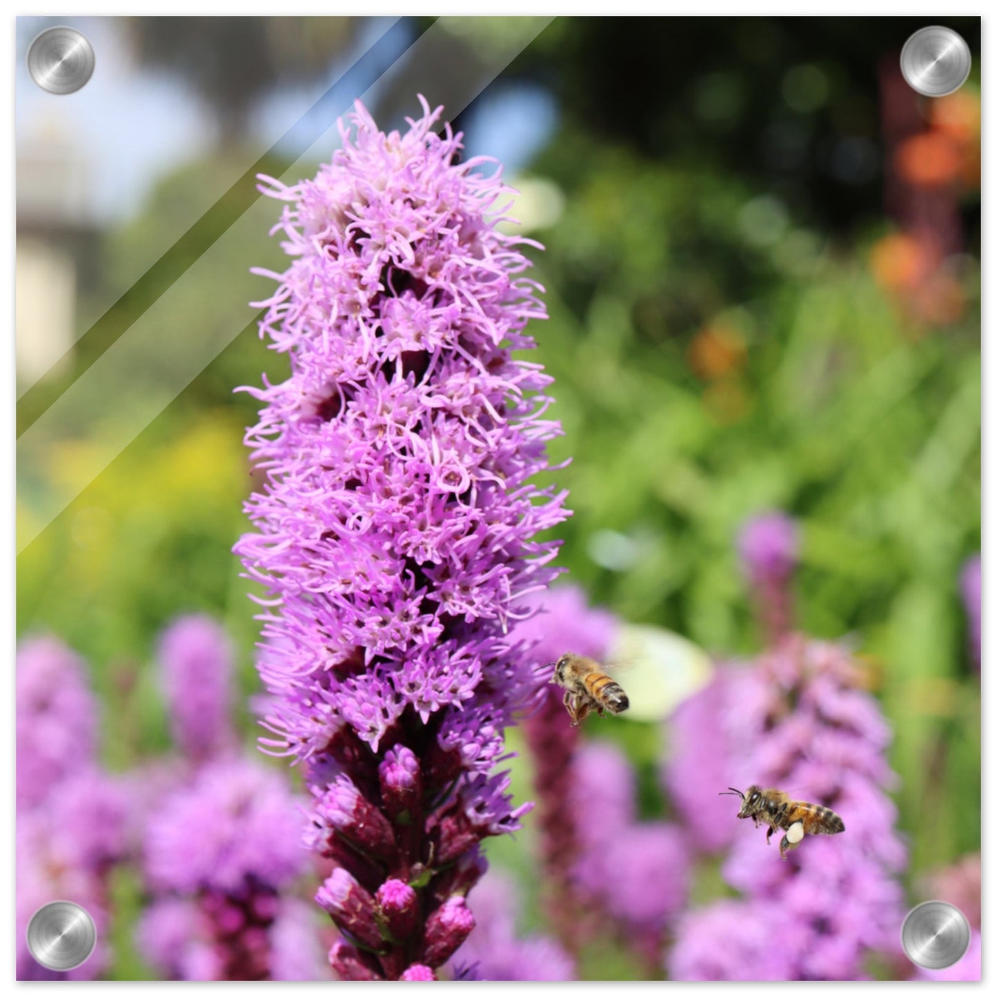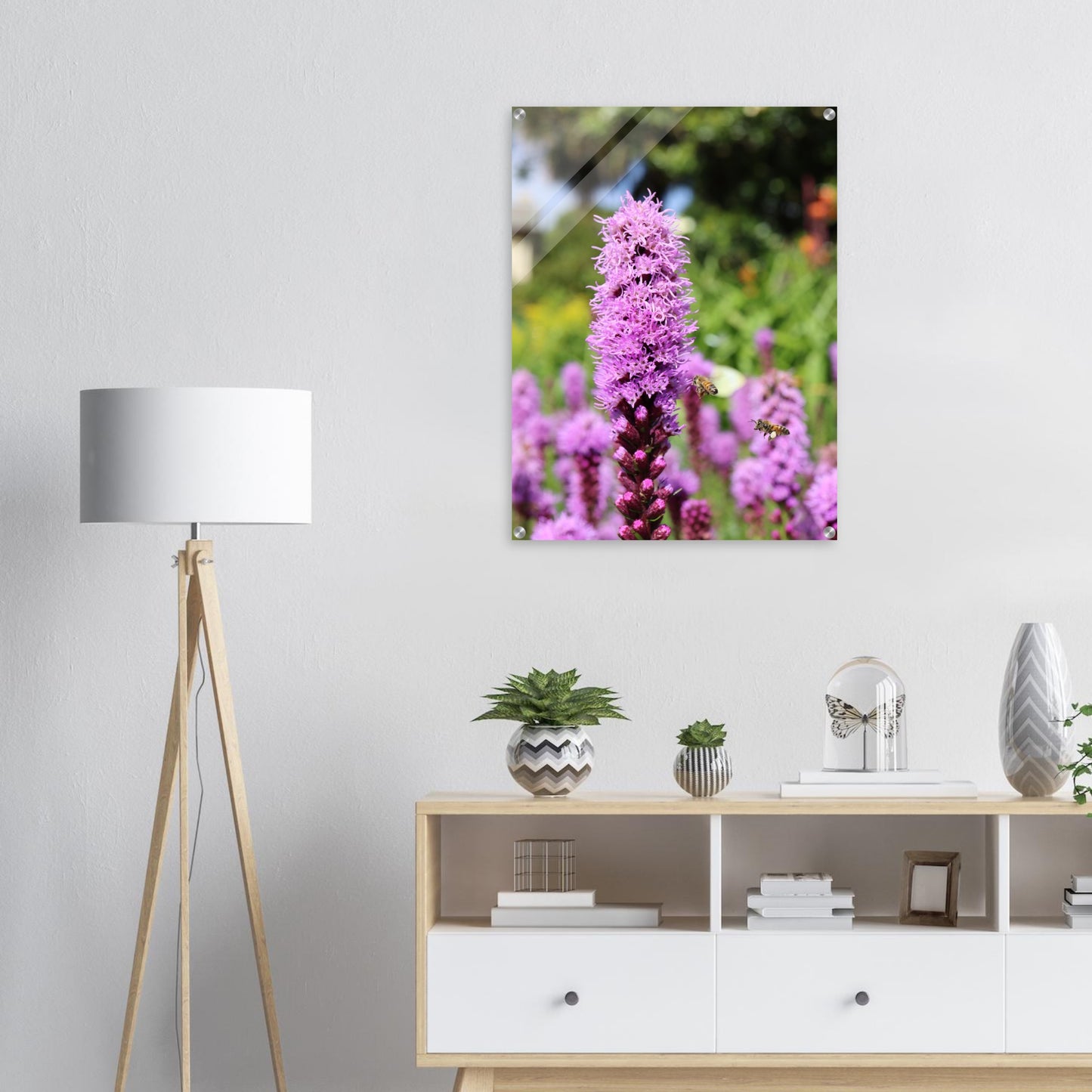 Foraging bees on spring liatris flowers - Acrylic print (lightweight, shatterproof, and temperature-resistant, making them easy to mount on your walls.)