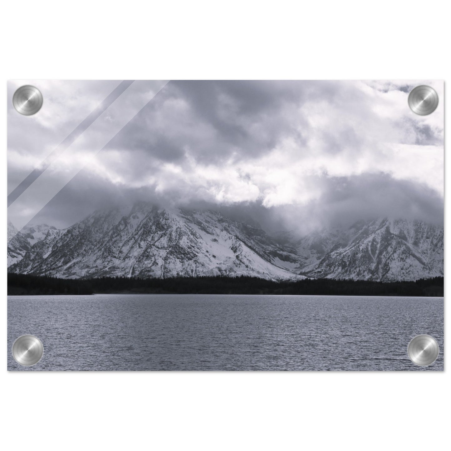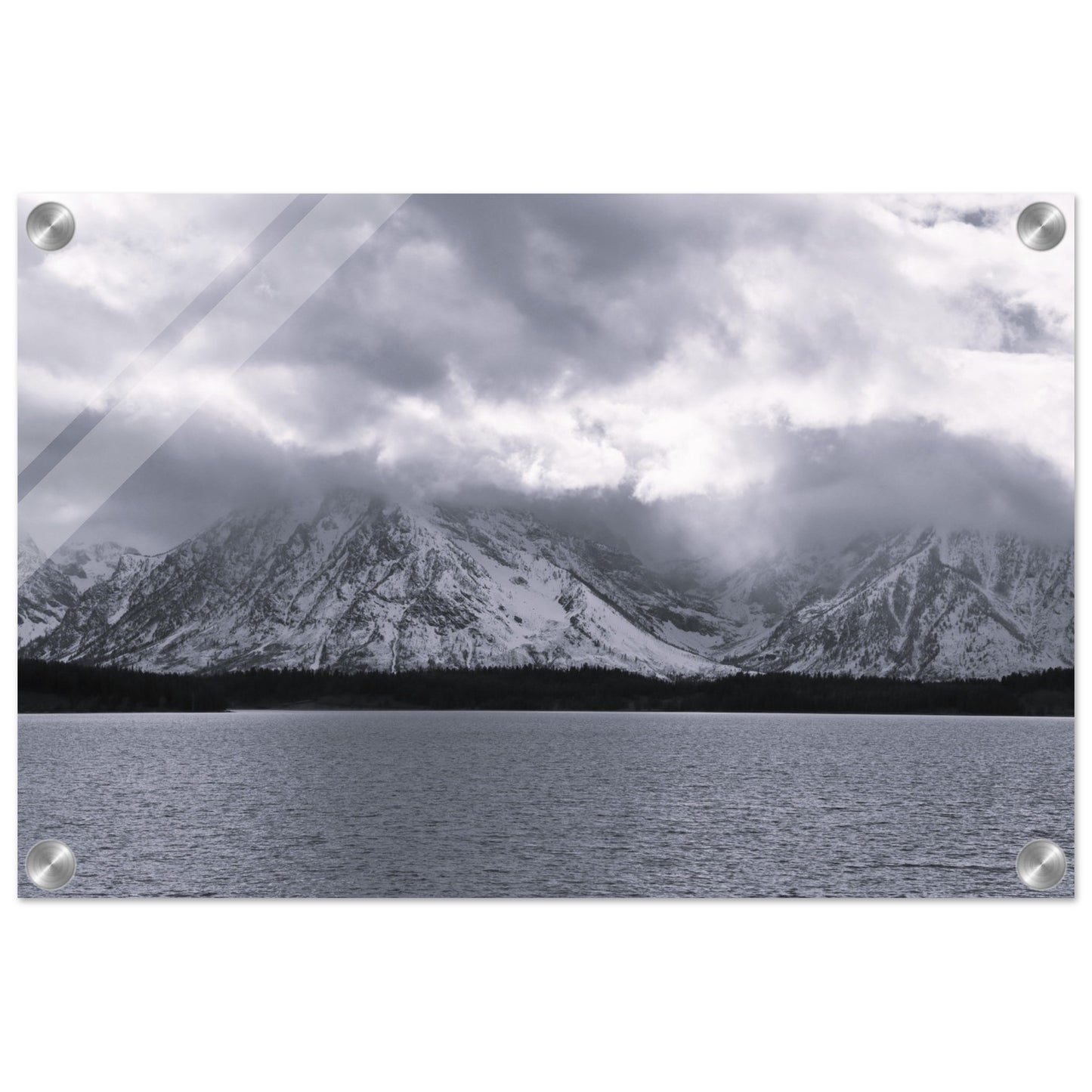 Grand Teton National Park, lakeside - Black & White - Acrylic prints (lightweight, shatterproof, and temperature-resistant, making them easy to mount on your walls.)