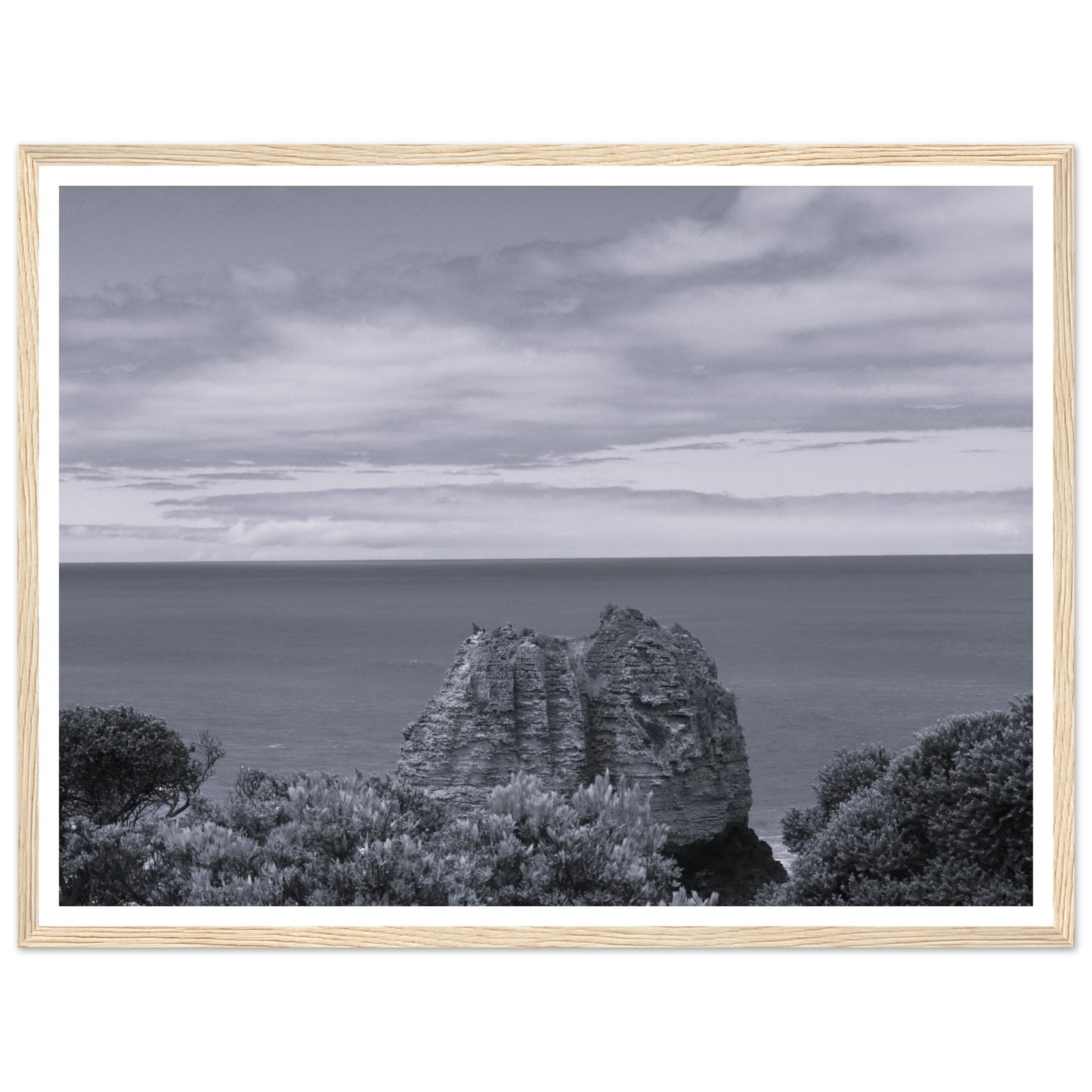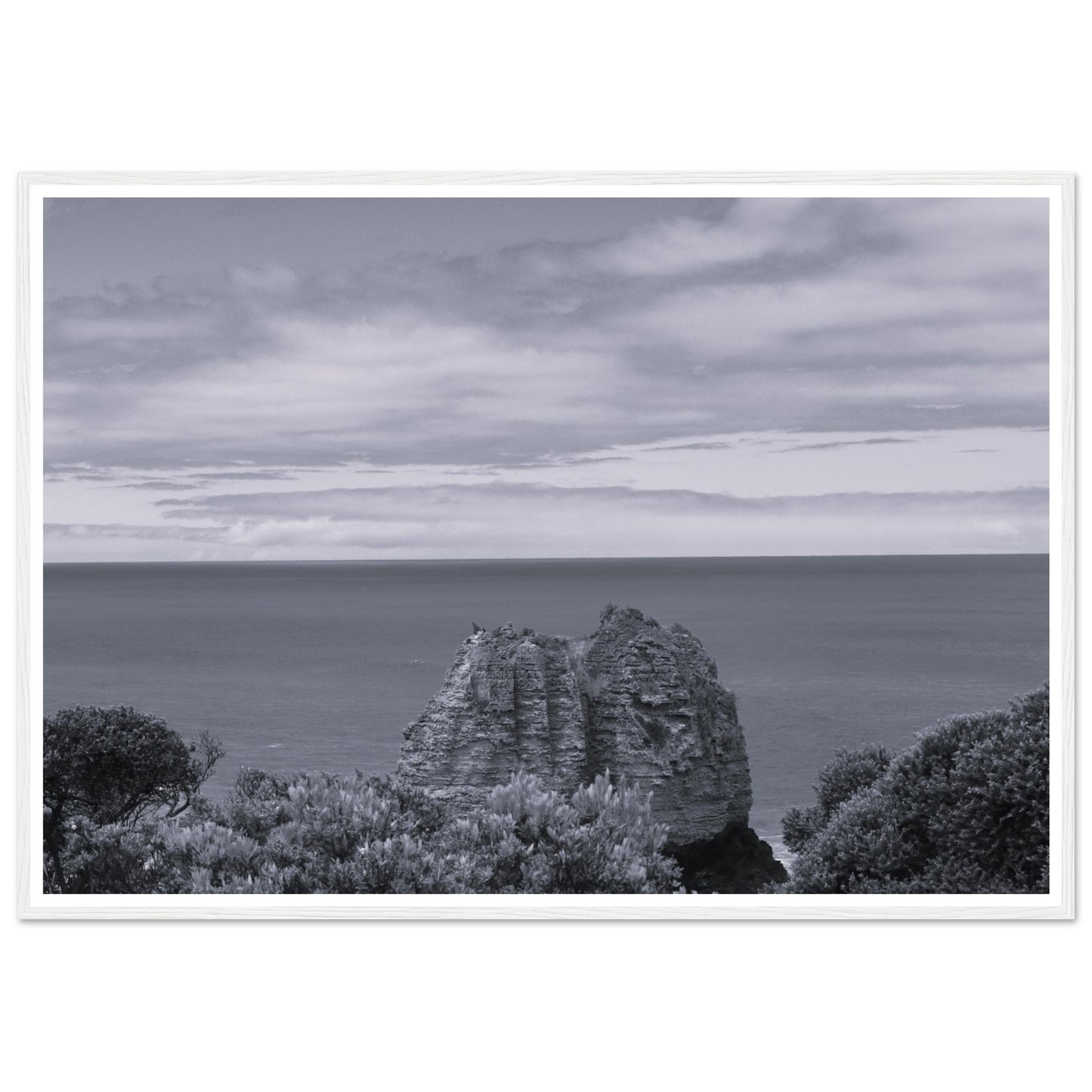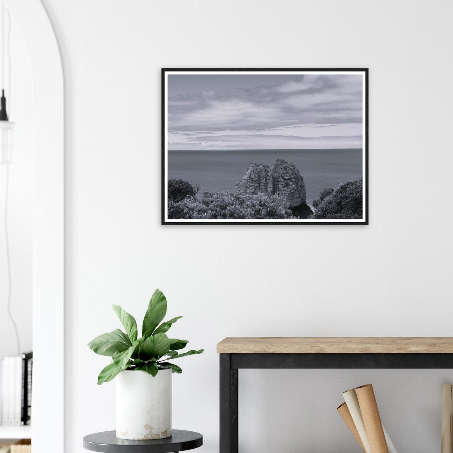 Great Ocean Road - Black & White - Premium matte paper poster with wooden frame