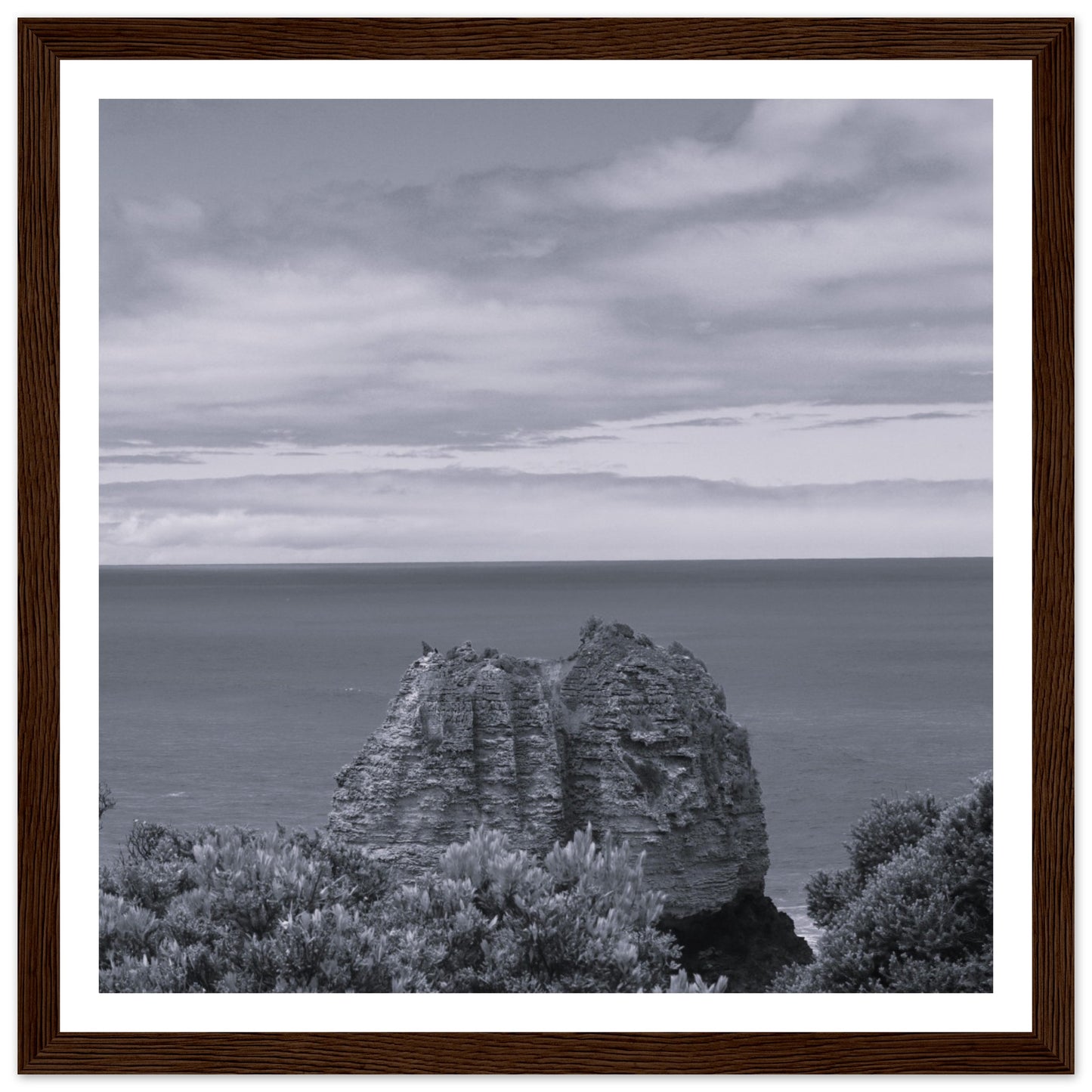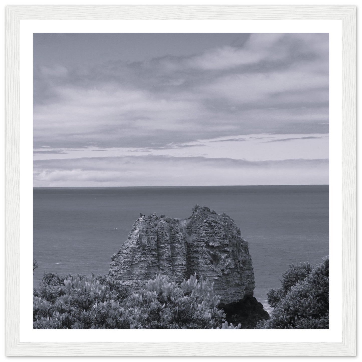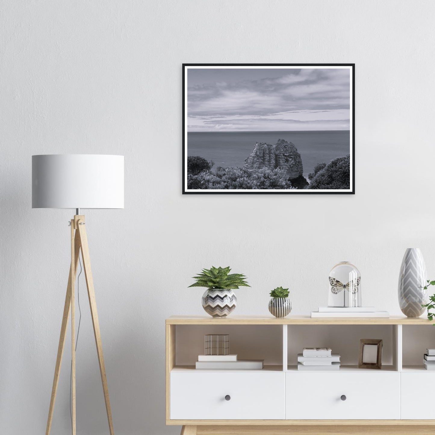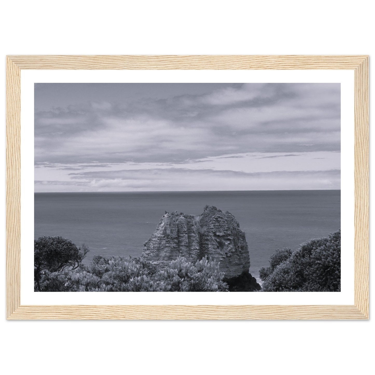 Great Ocean Road - Black & White - Premium matte paper poster with wooden frame