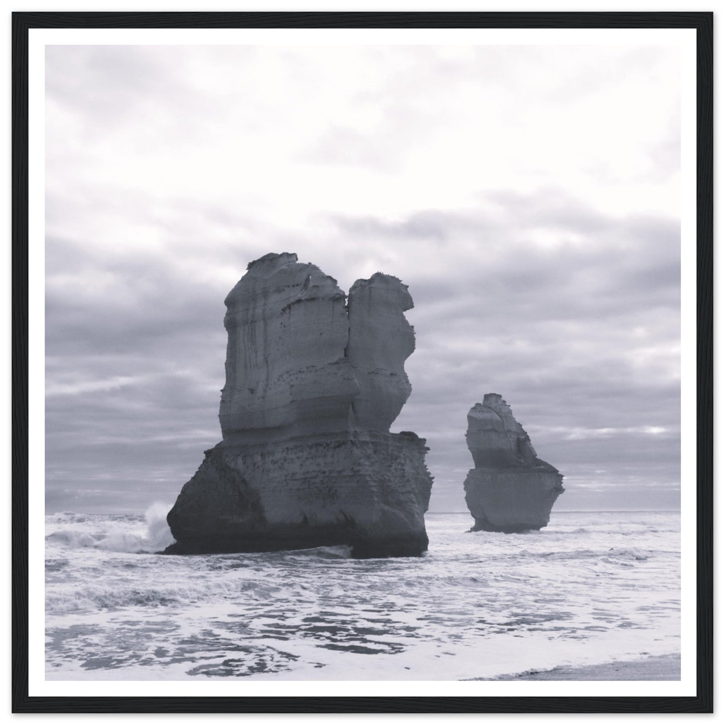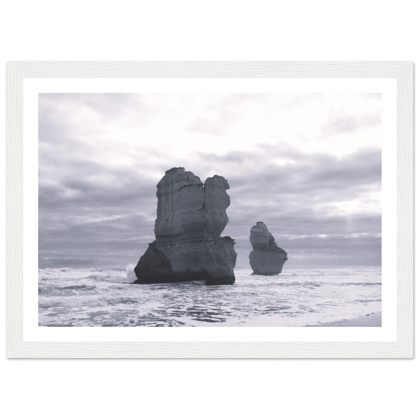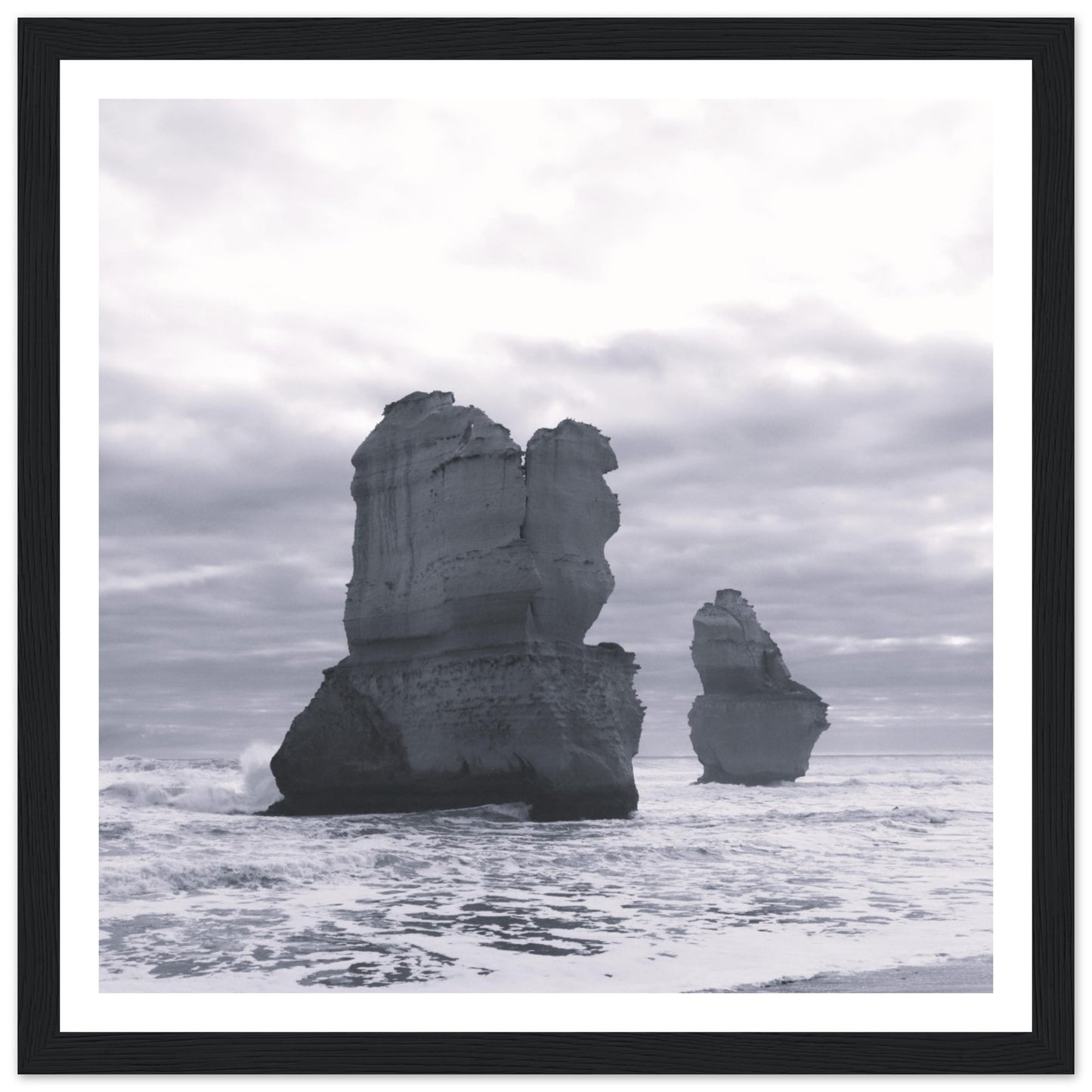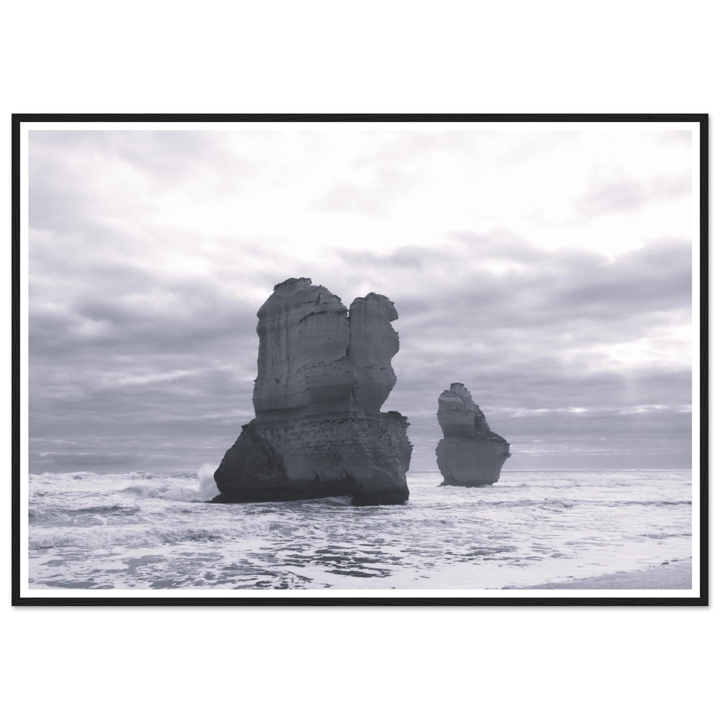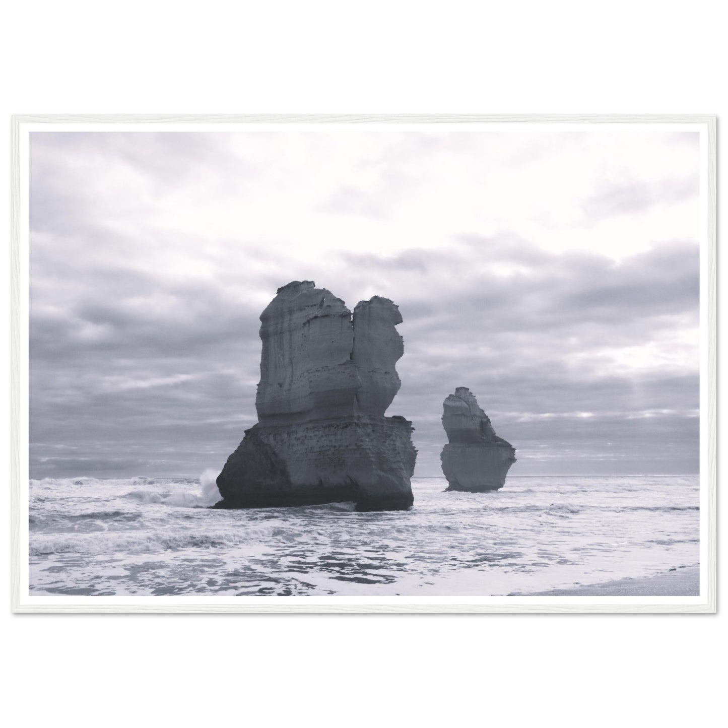 Great Ocean Road Gog & Magog - Black & White - Premium matte paper poster with wooden frame