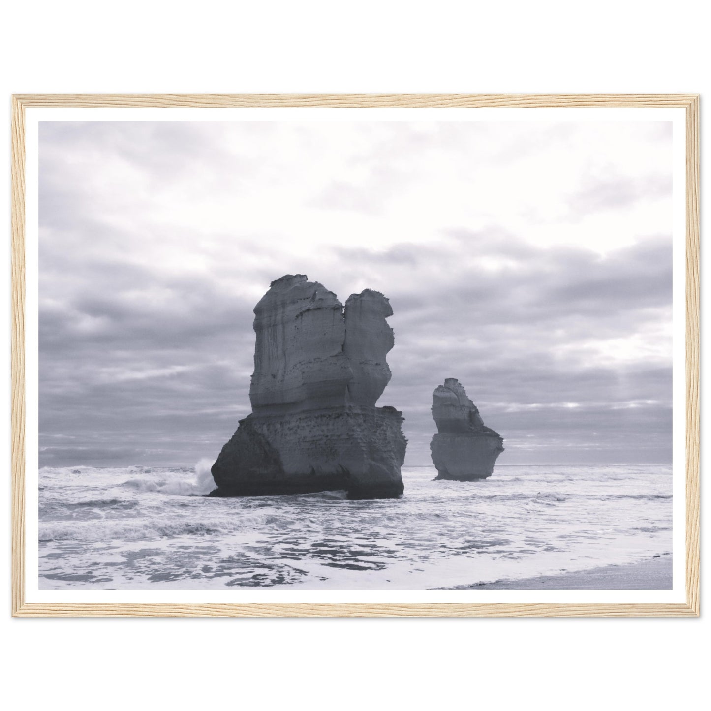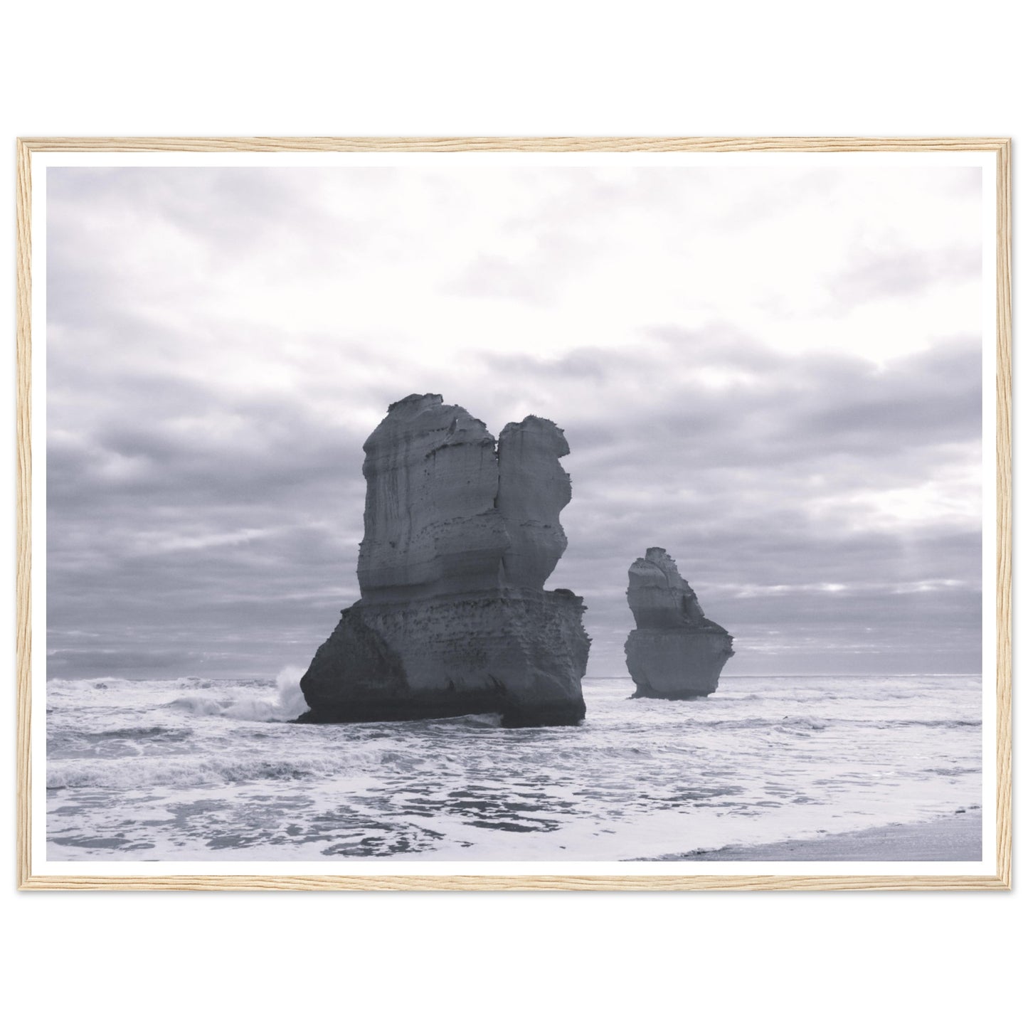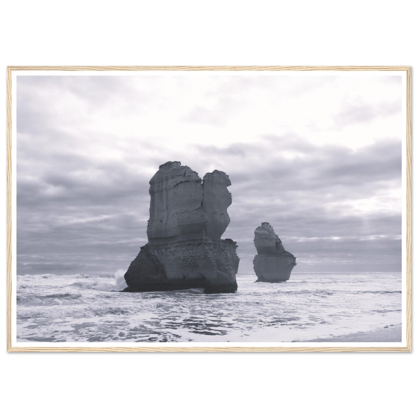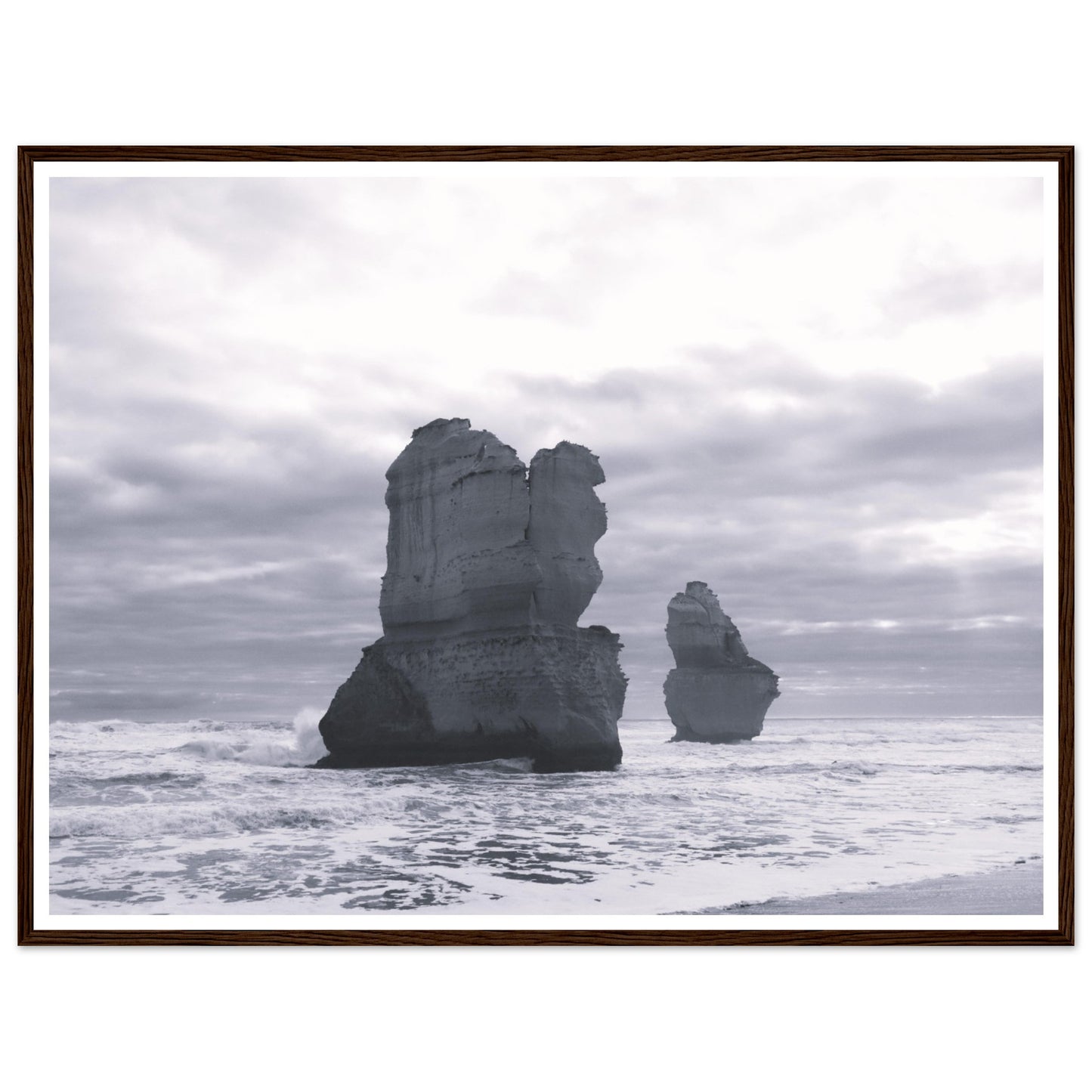 Great Ocean Road Gog & Magog - Black & White - Premium matte paper poster with wooden frame