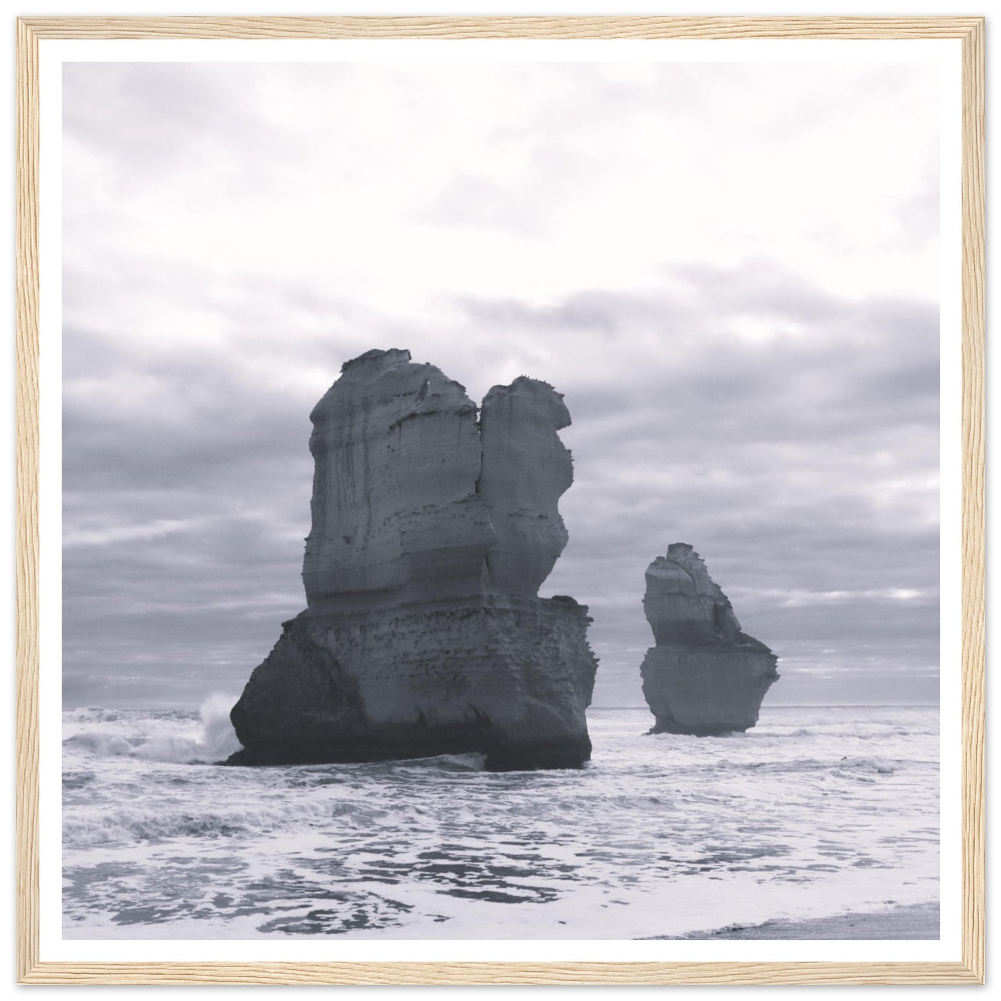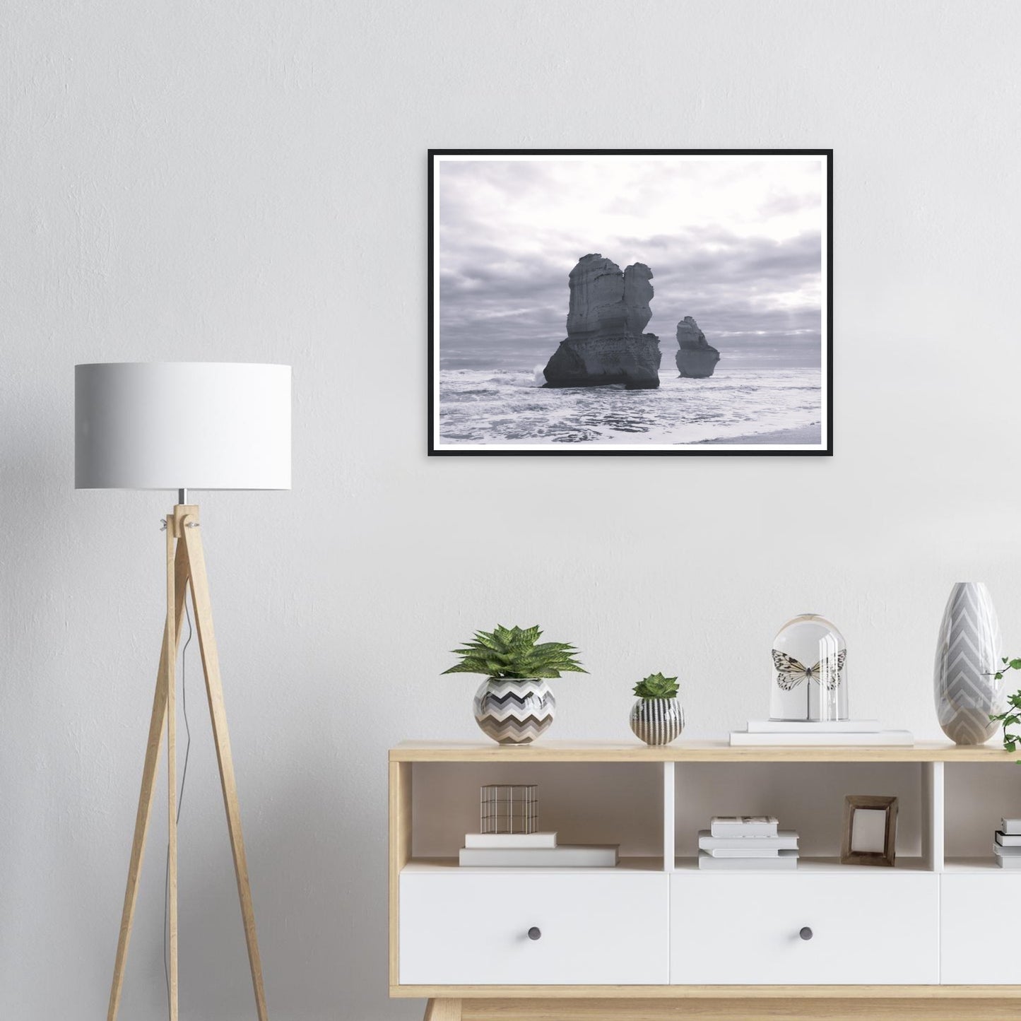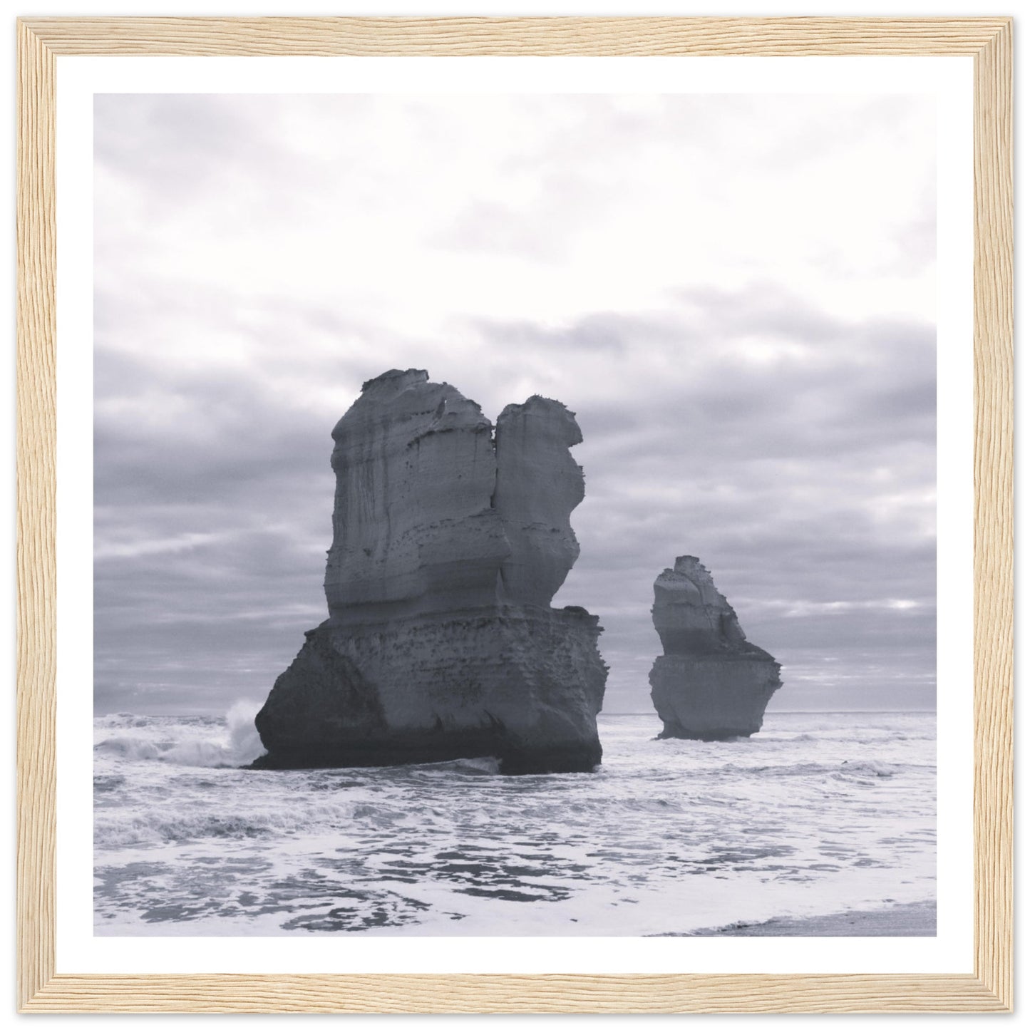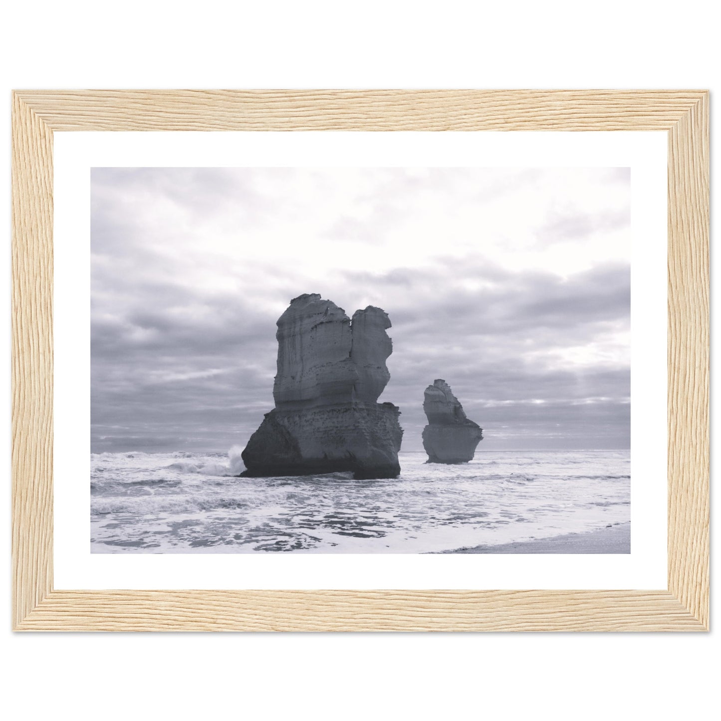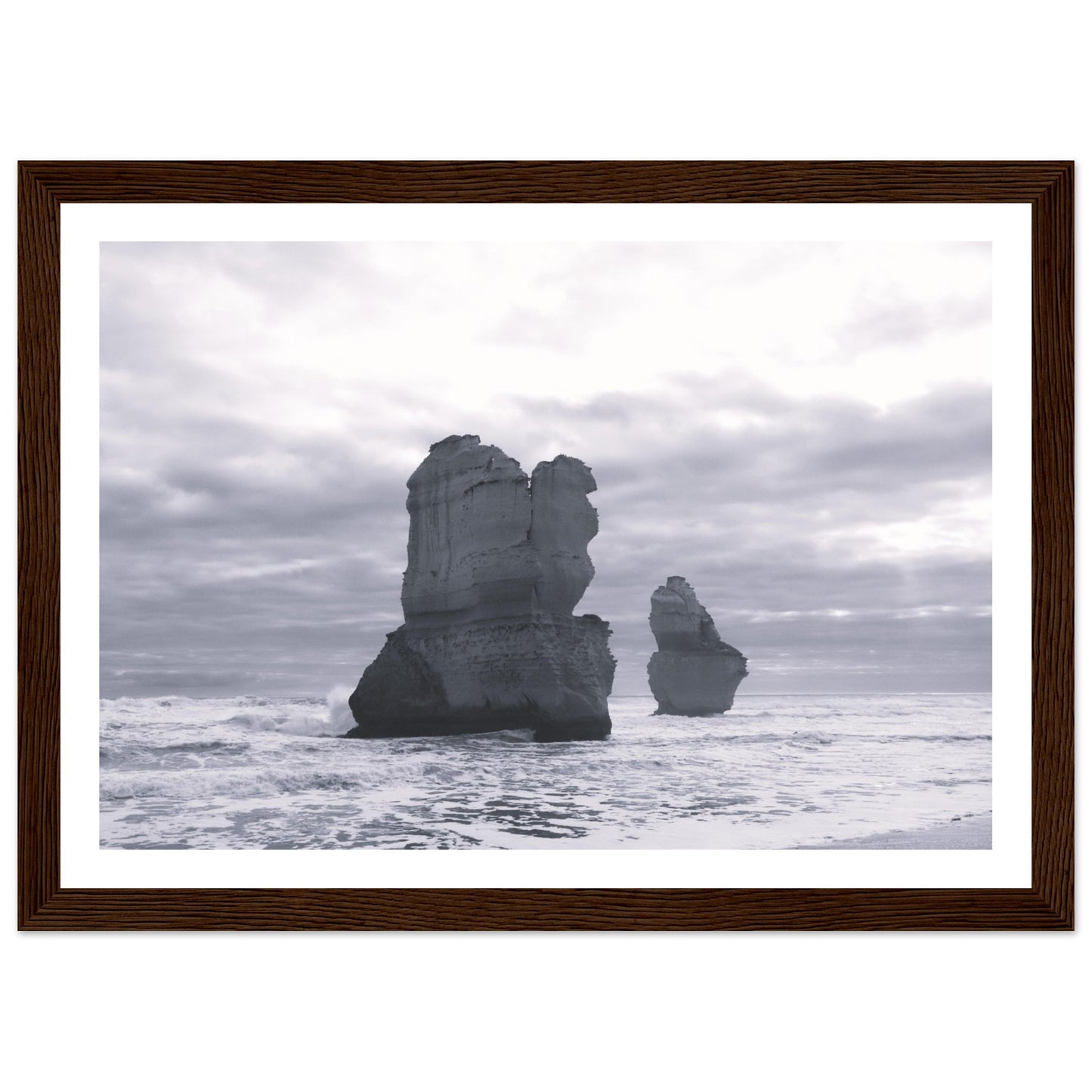 Great Ocean Road Gog & Magog - Black & White - Premium matte paper poster with wooden frame