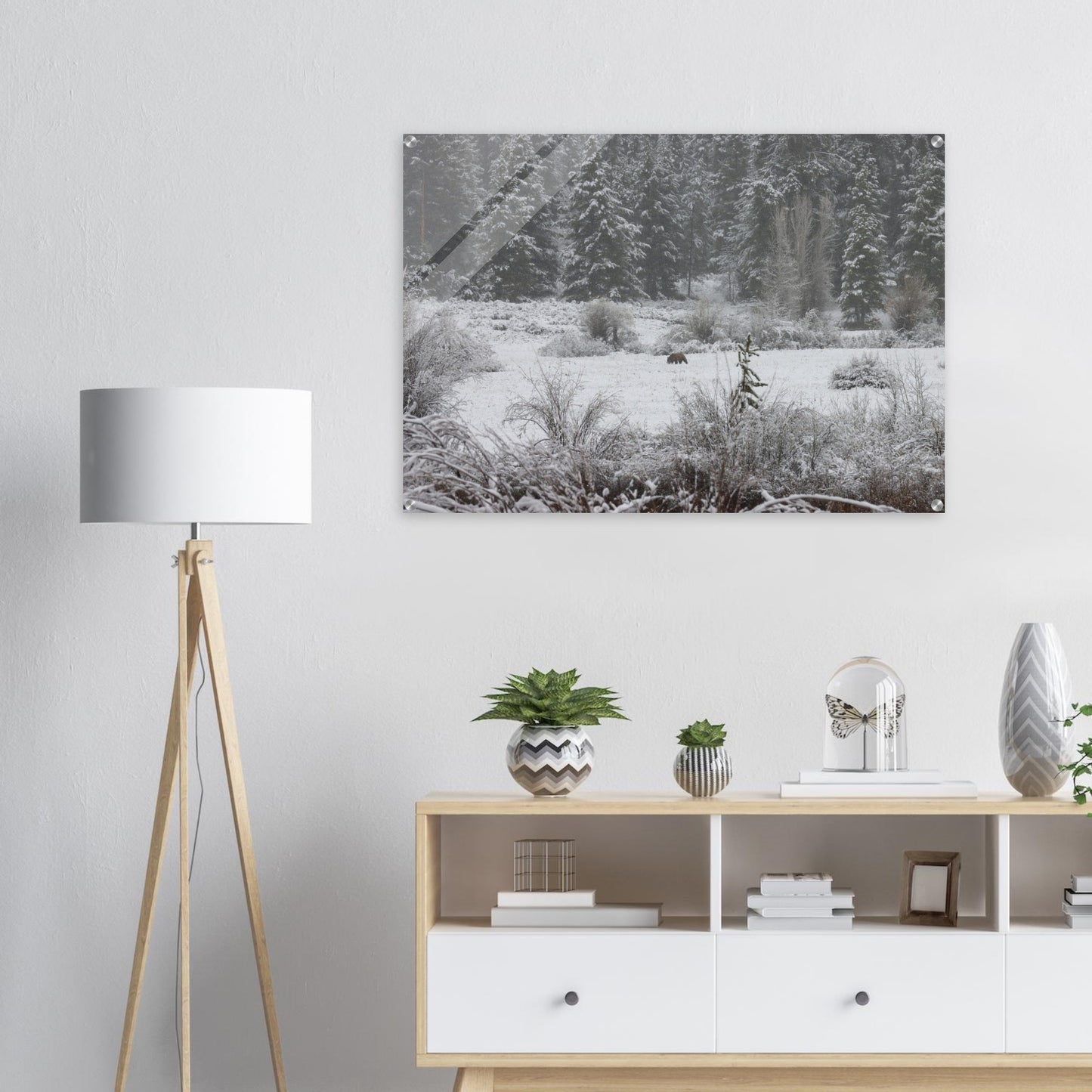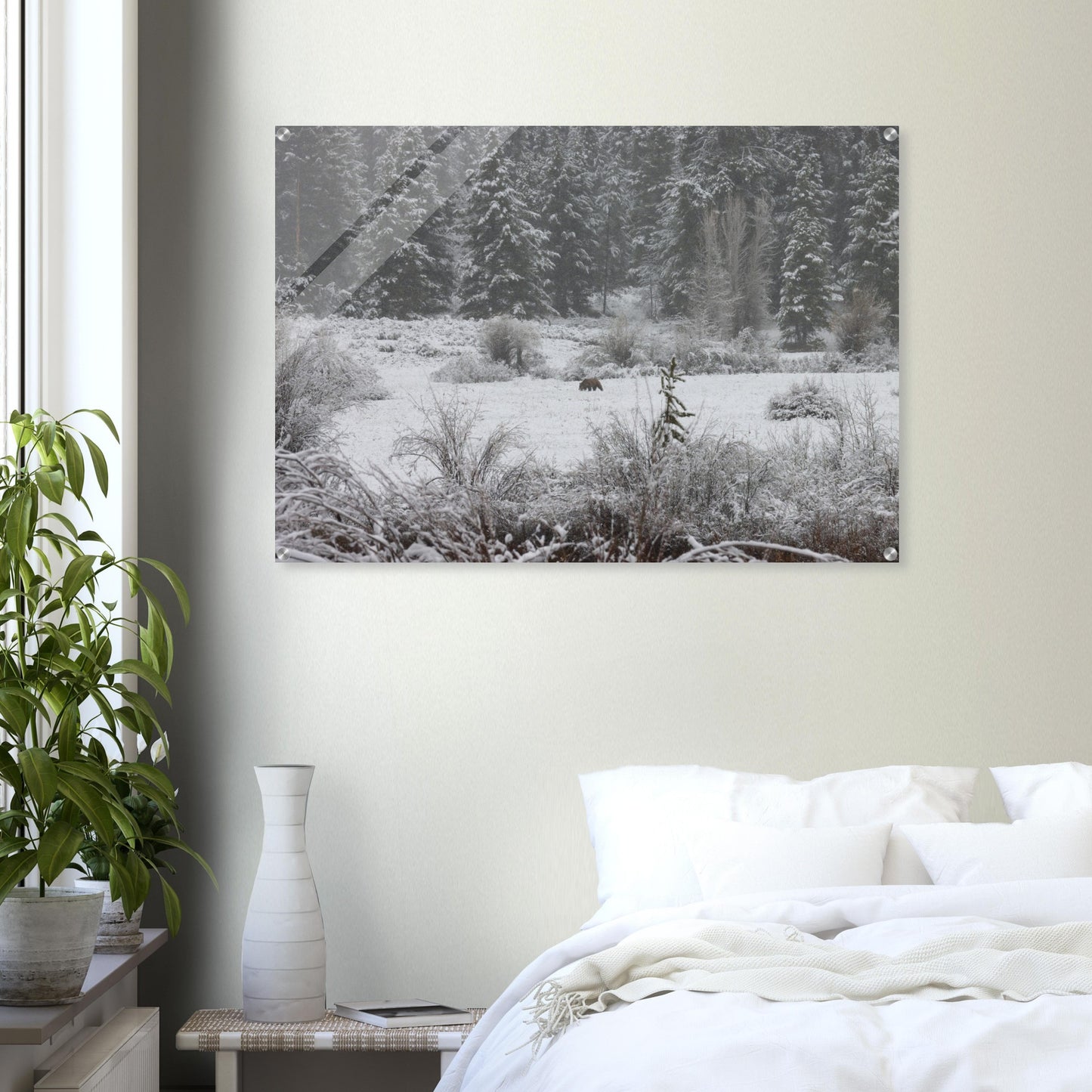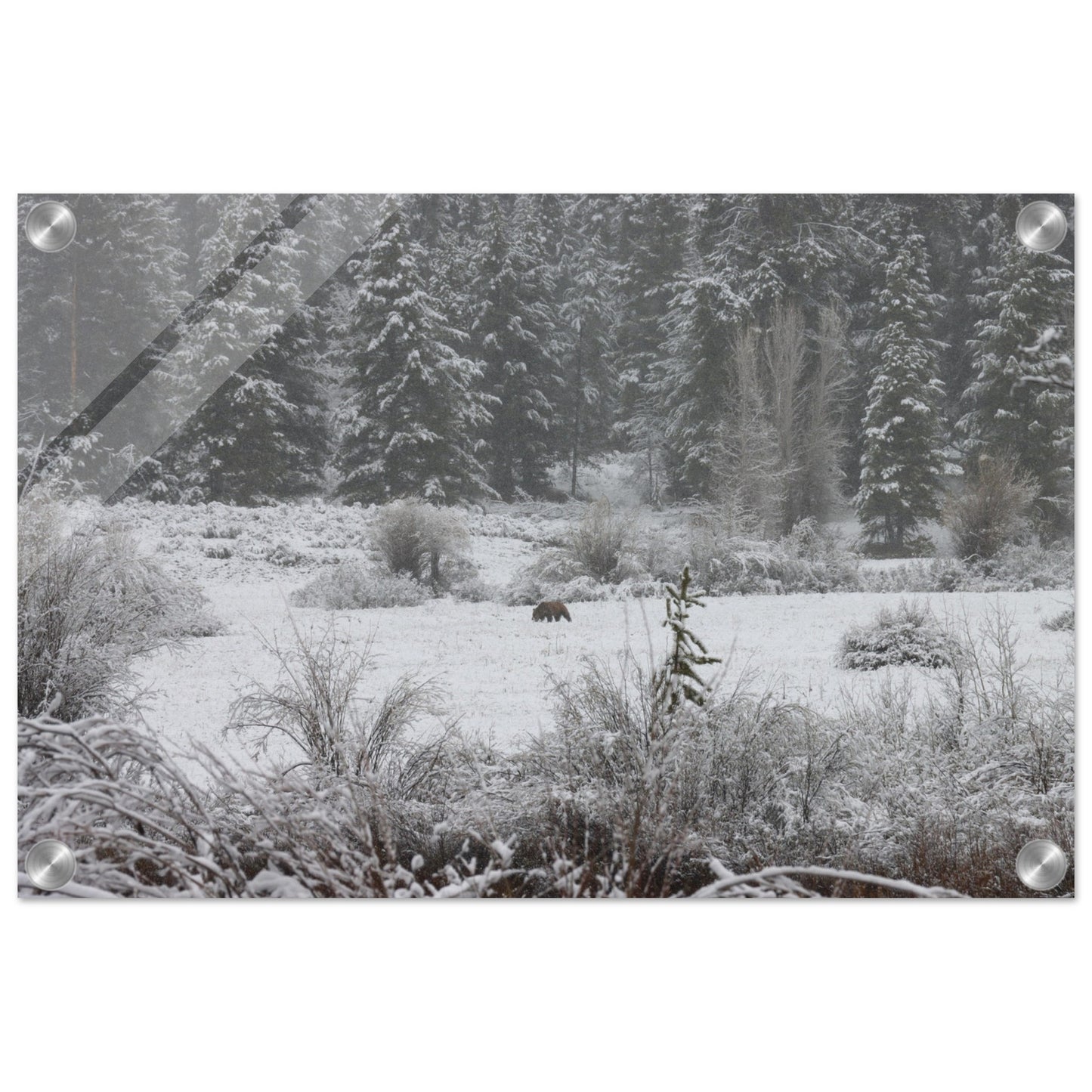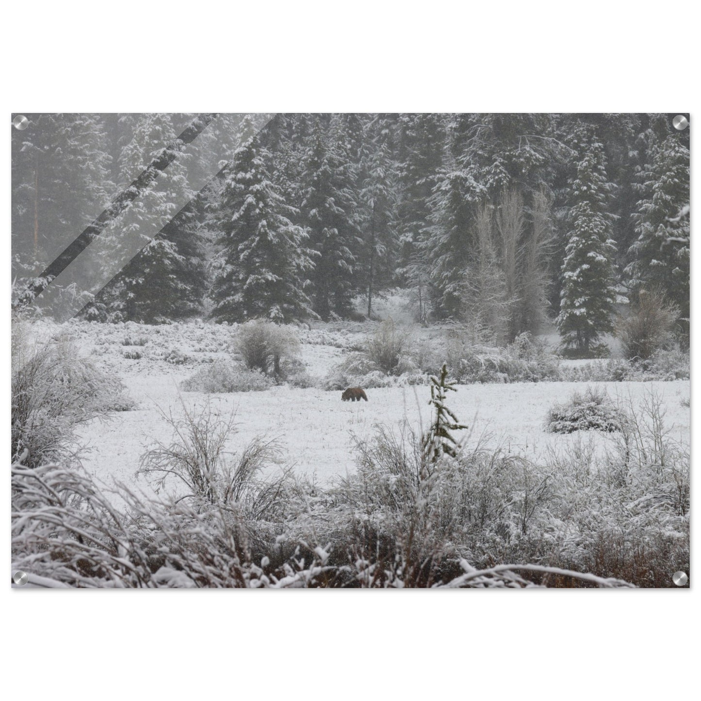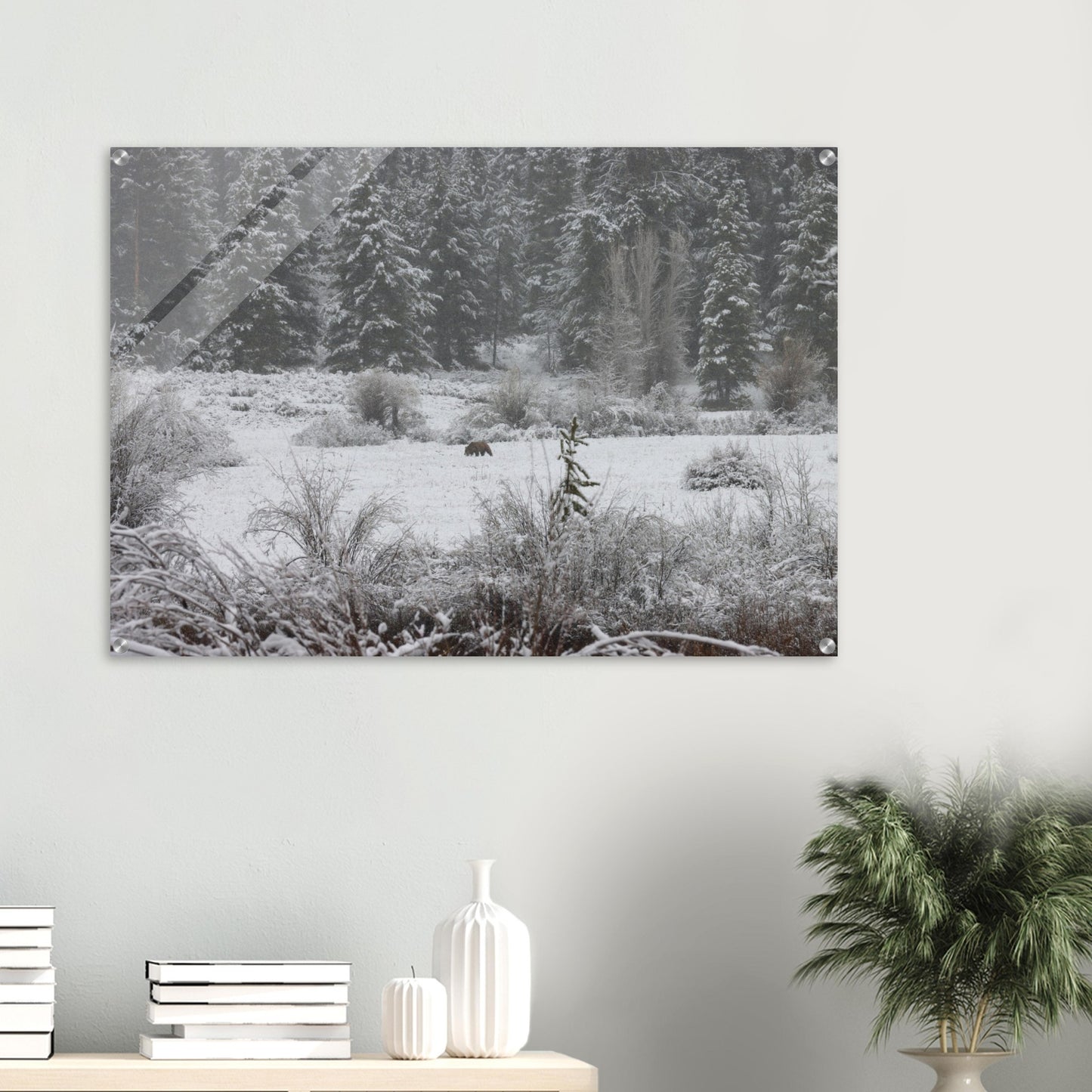 Grizzly bear on snowy day - Acrylic prints (lightweight, shatterproof, and temperature-resistant, making them easy to mount on your walls.)