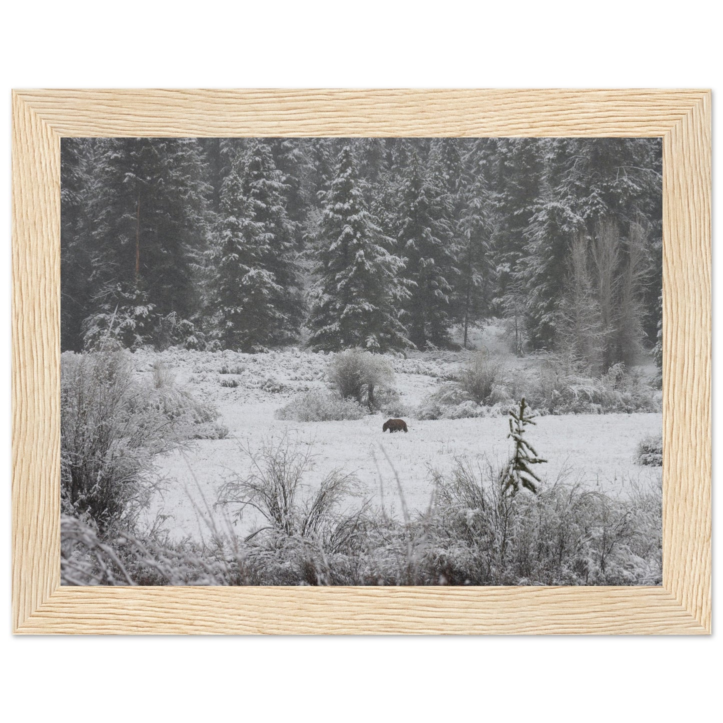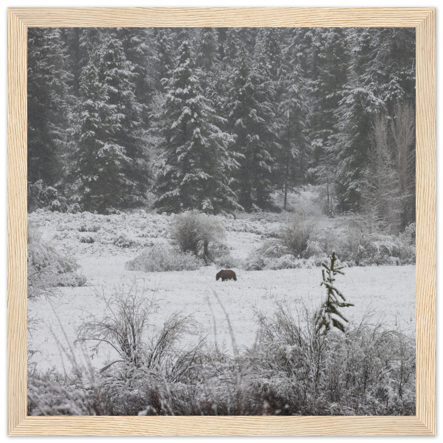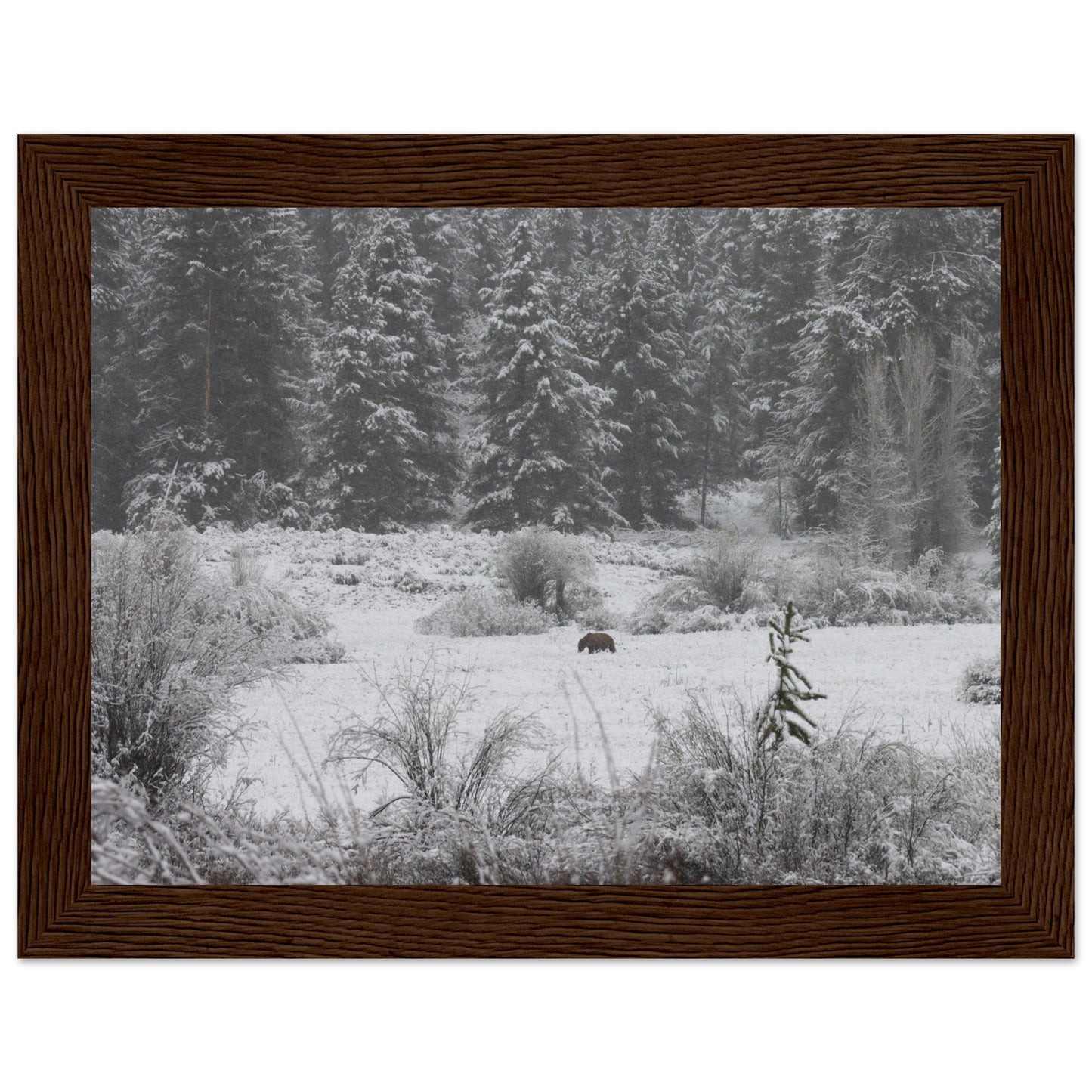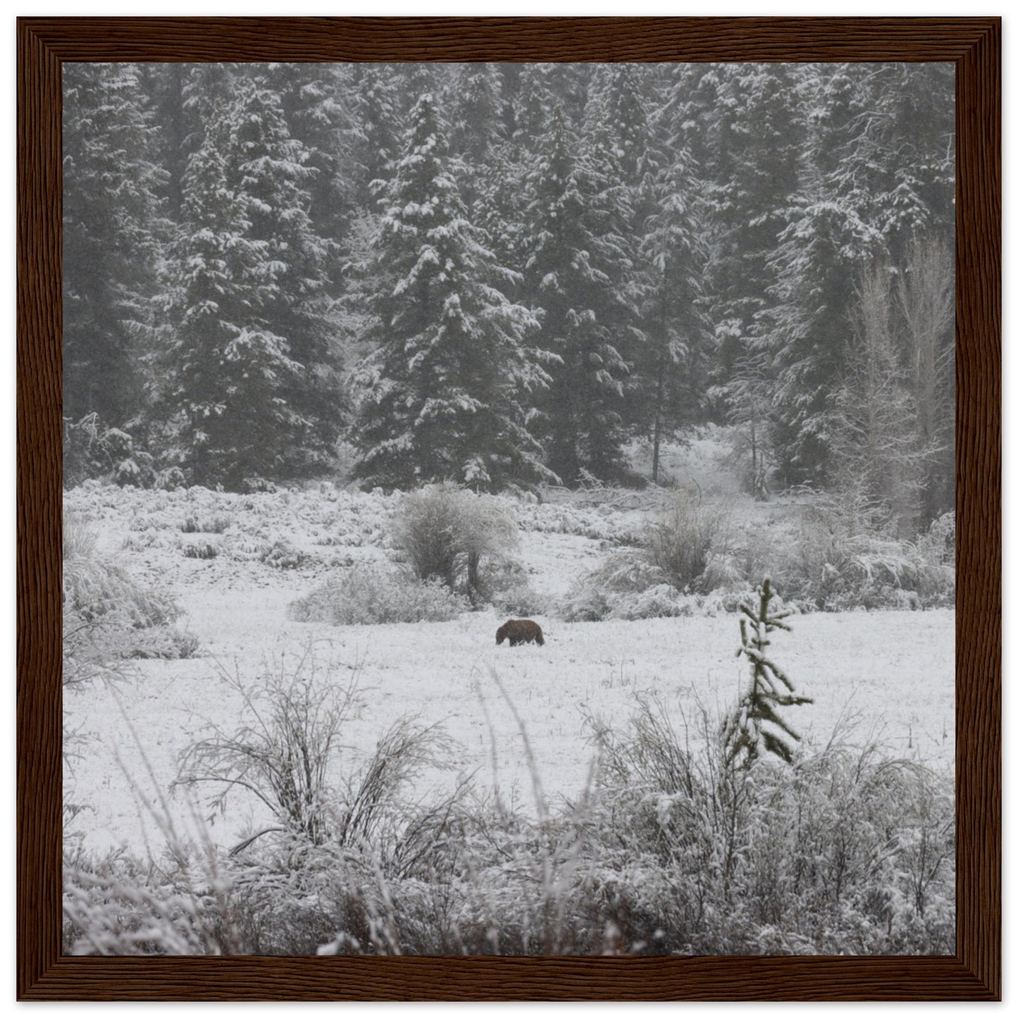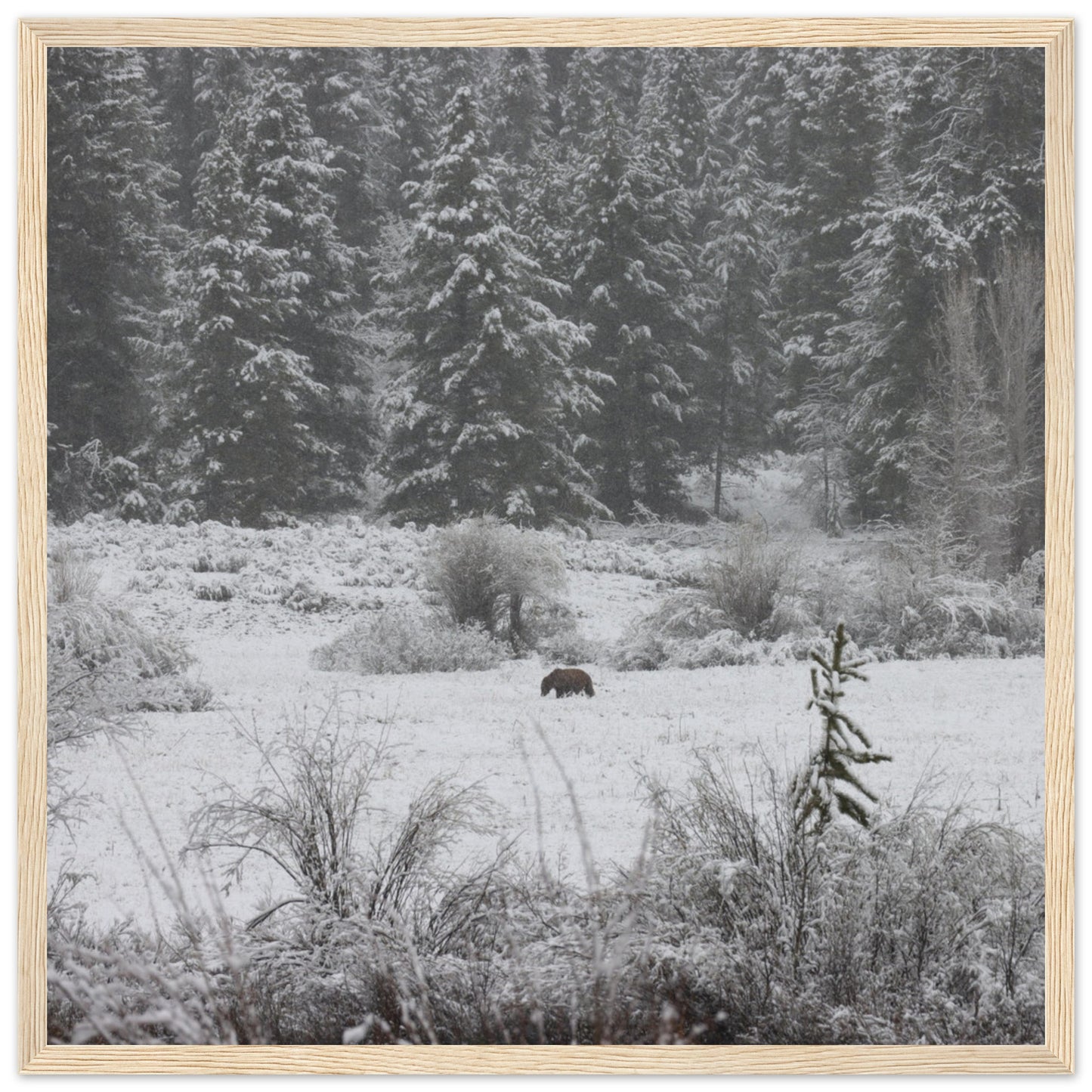 Grizzly bear in the snow - Premium Matte Paper Wooden Framed Poster