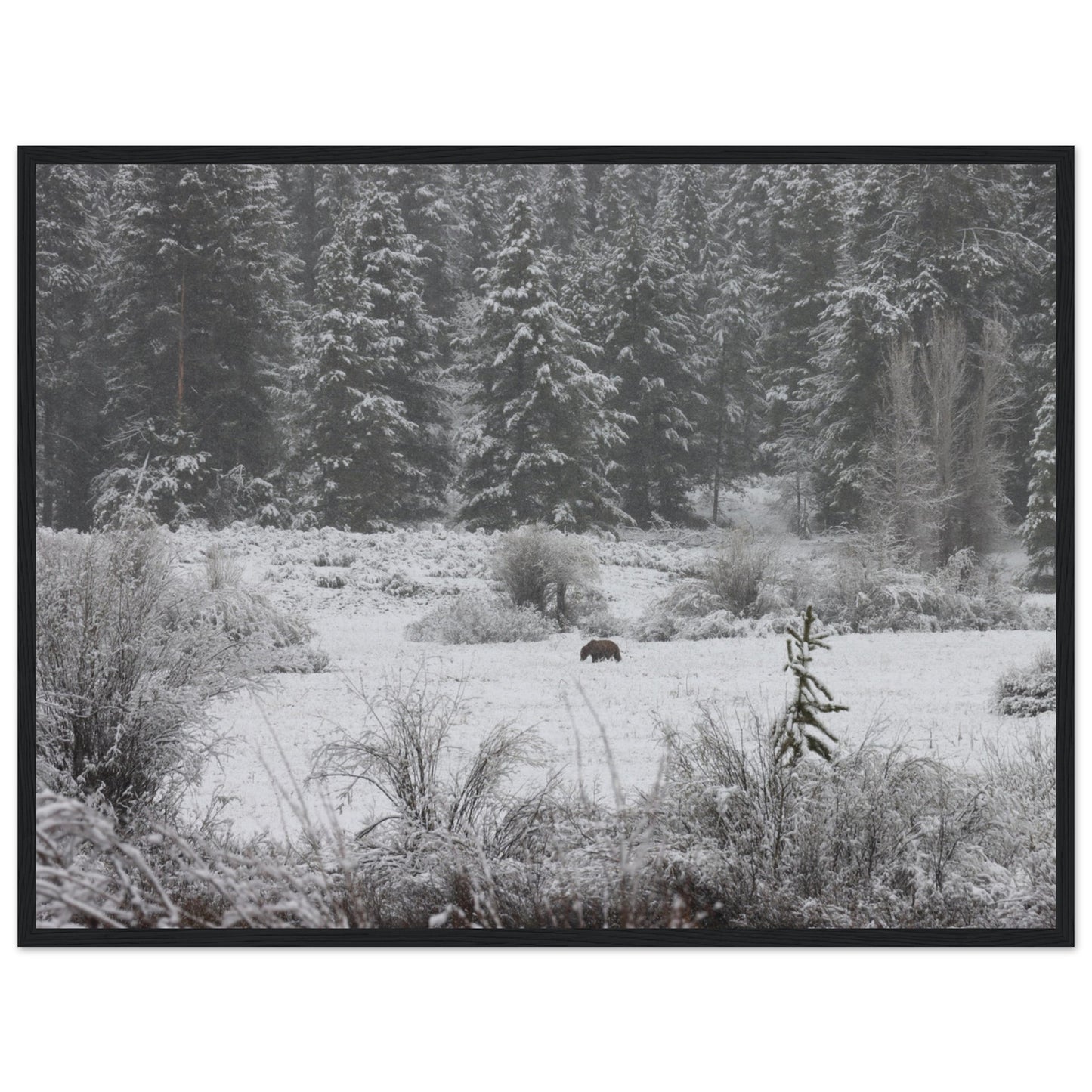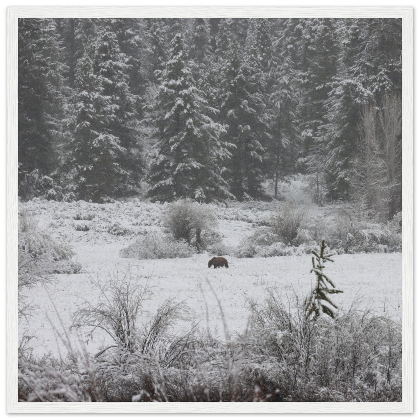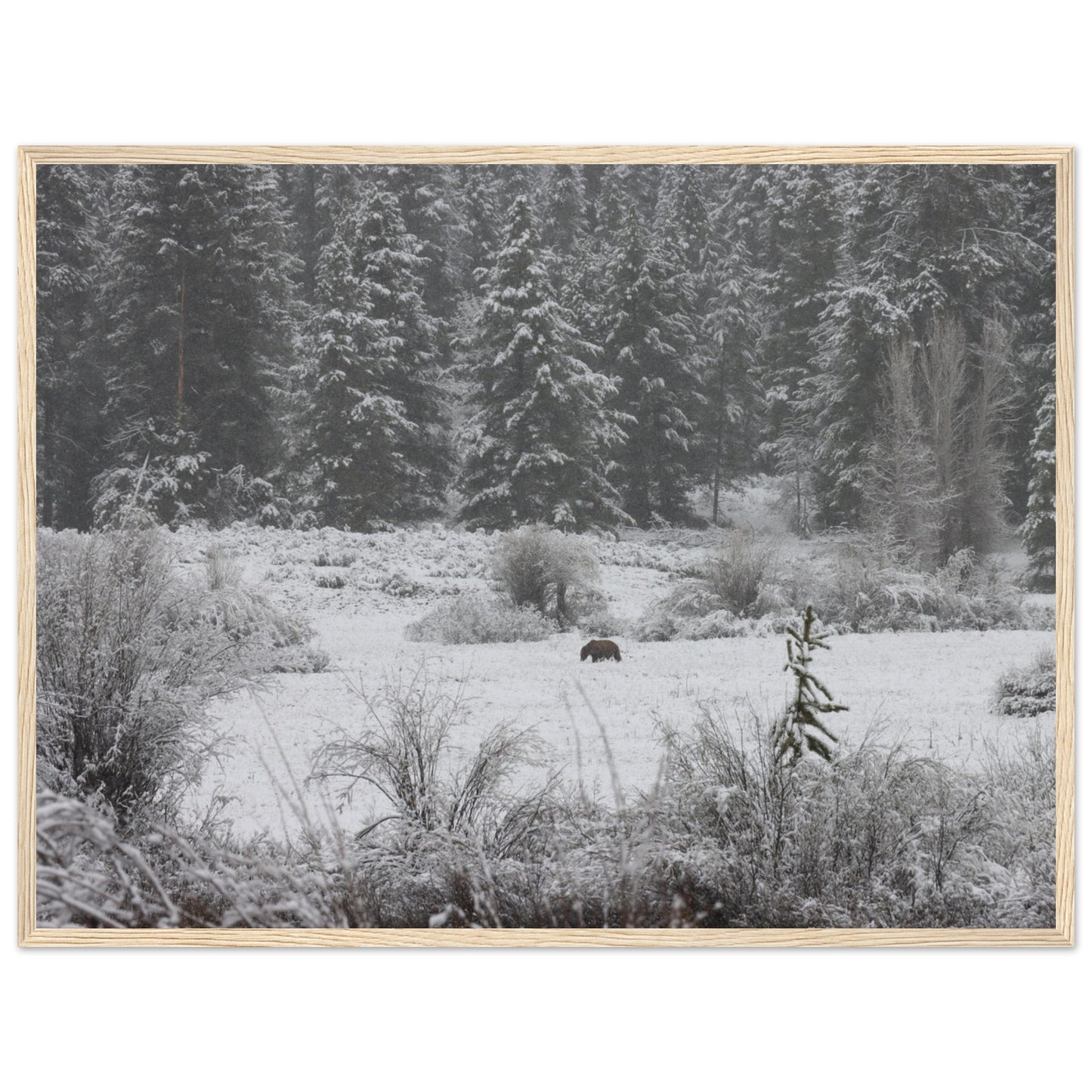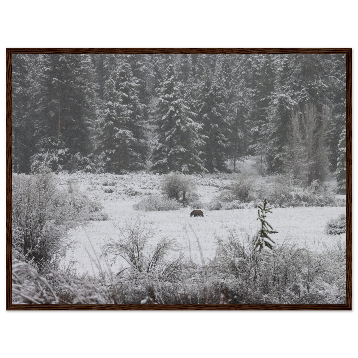 Grizzly bear in the snow - Premium matte paper poster with wooden frame