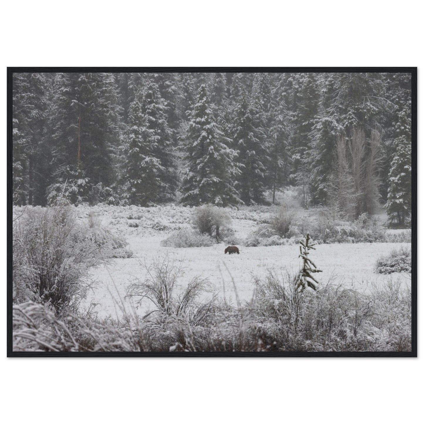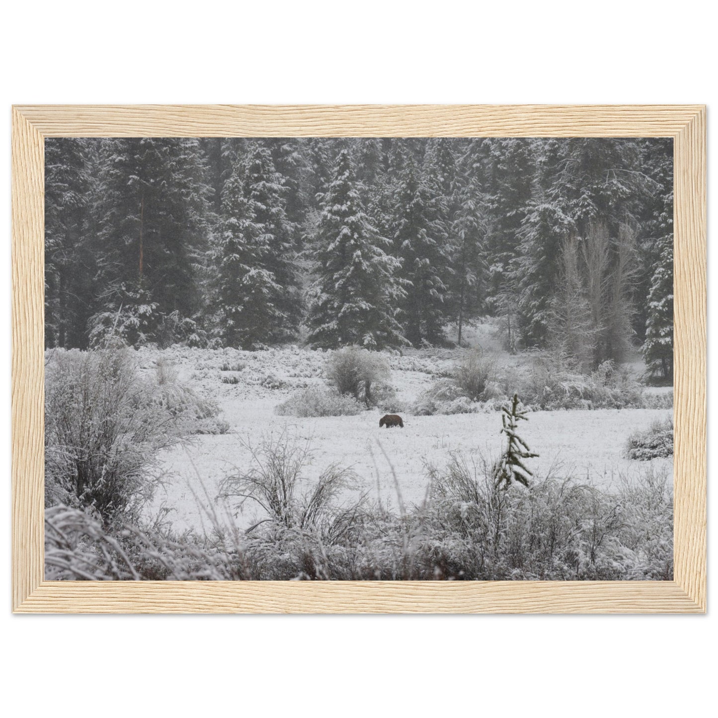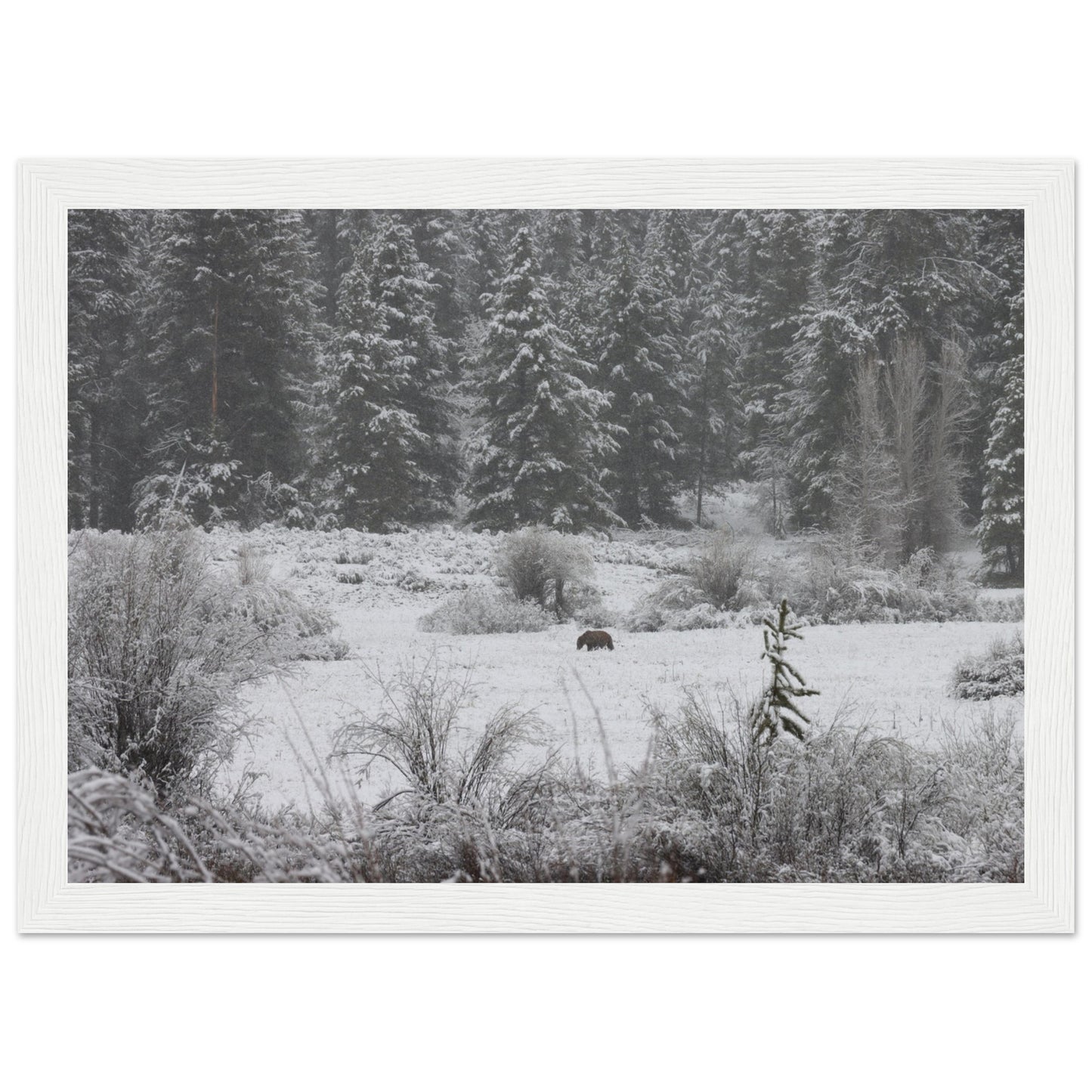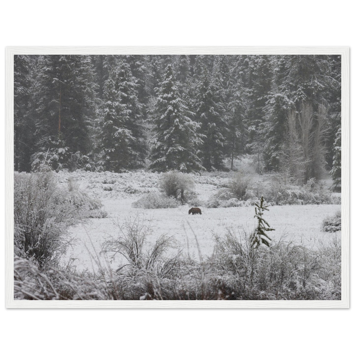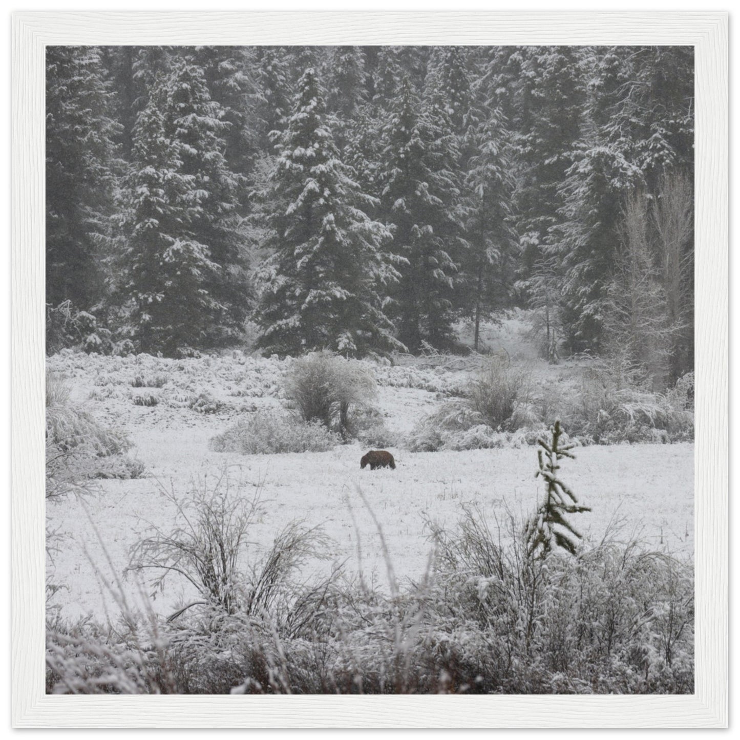 Grizzly bear in the snow - Premium matte paper poster with wooden frame