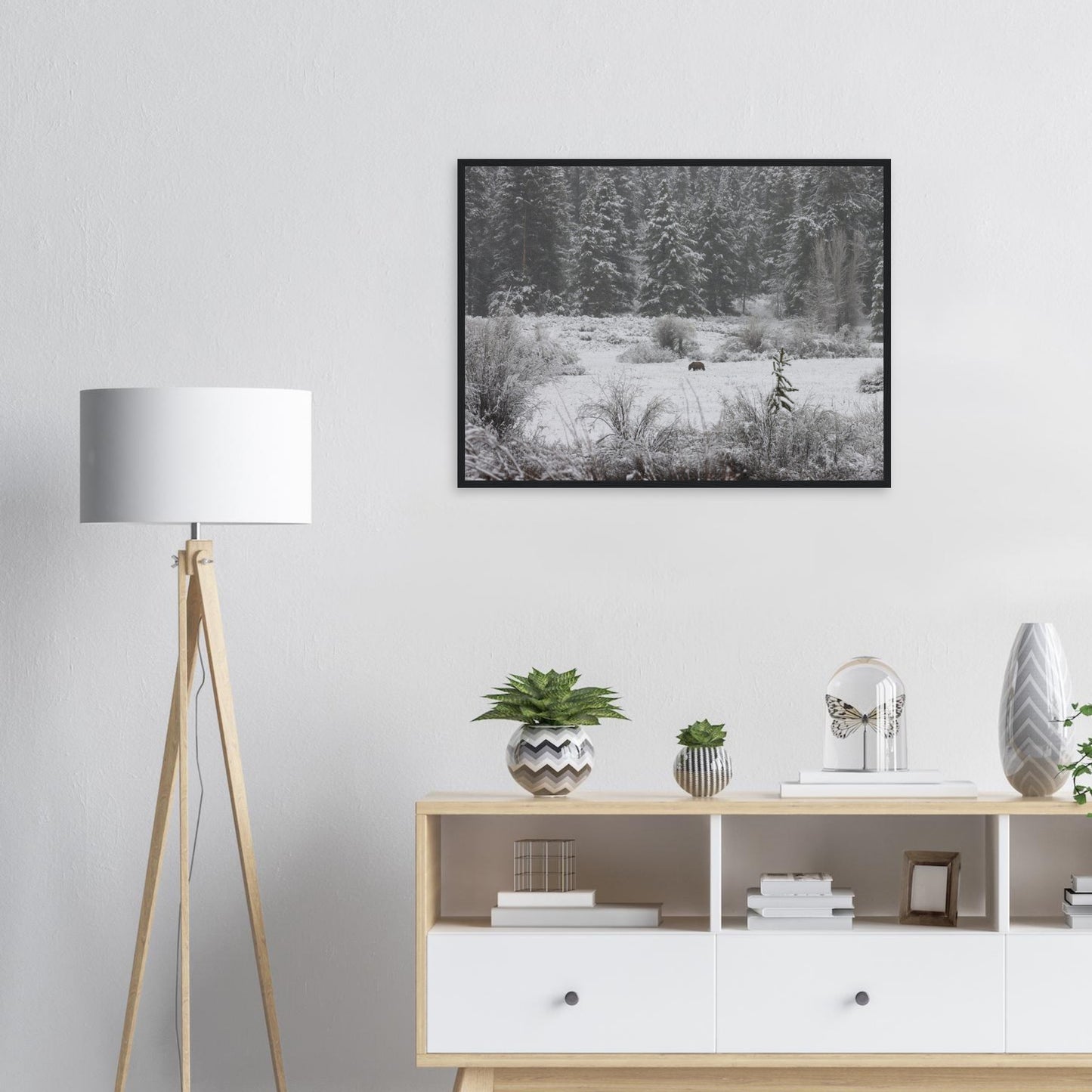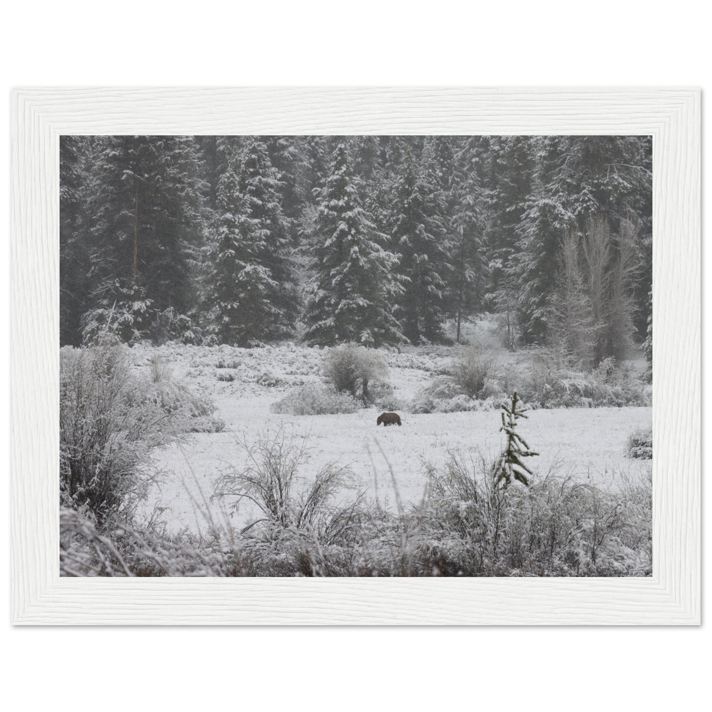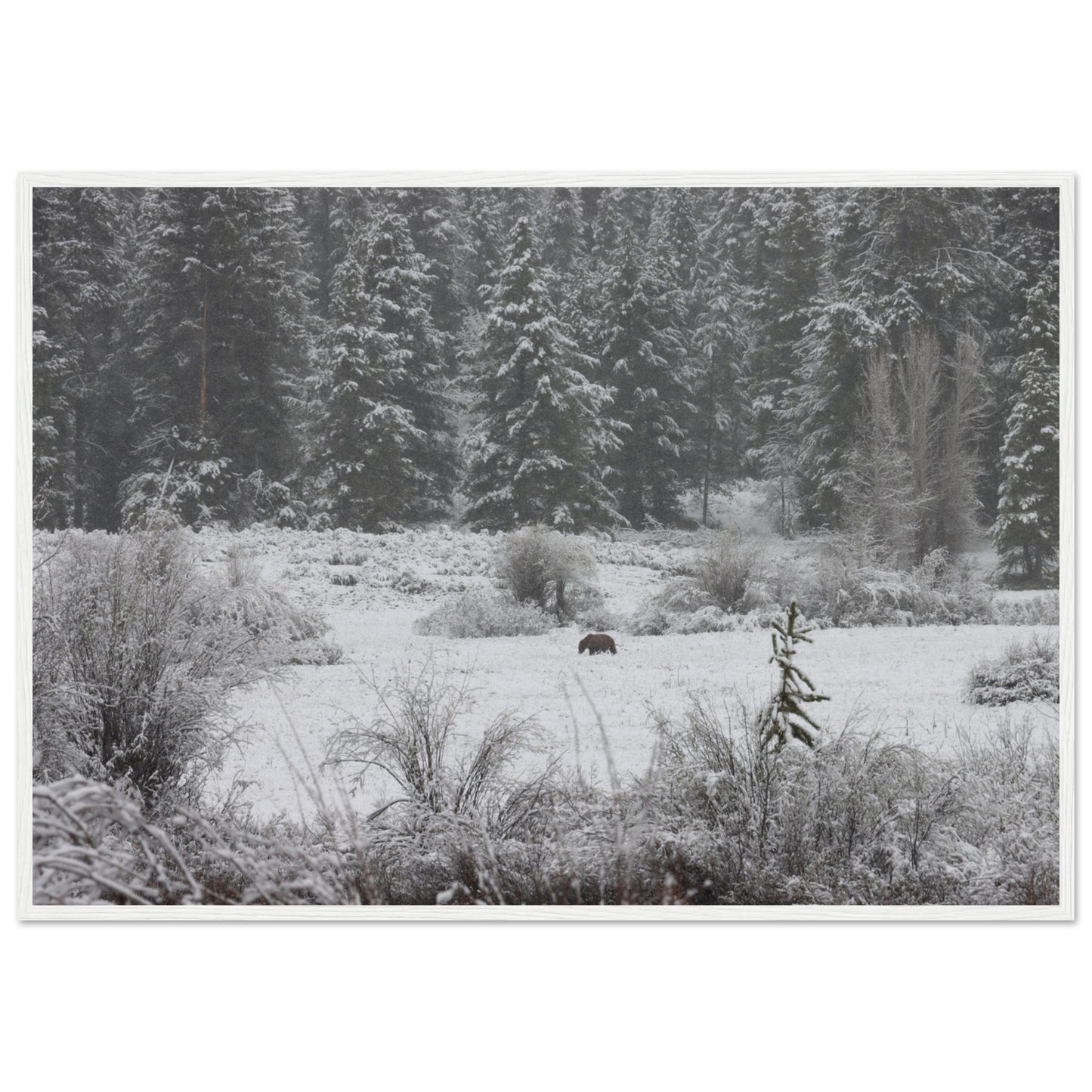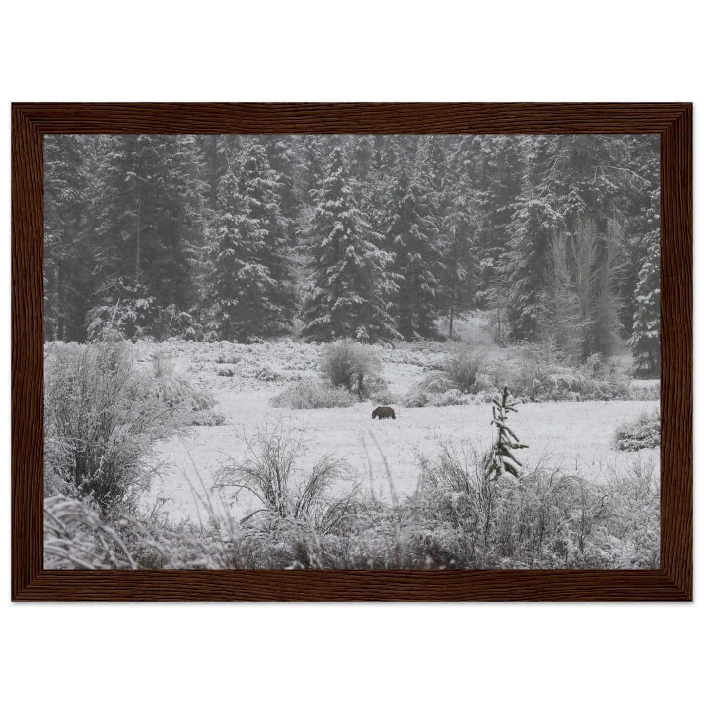 Grizzly bear in the snow - Premium matte paper poster with wooden frame