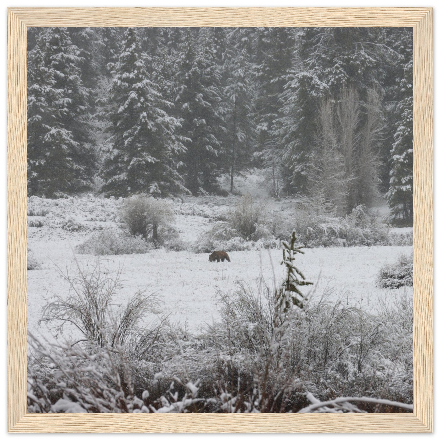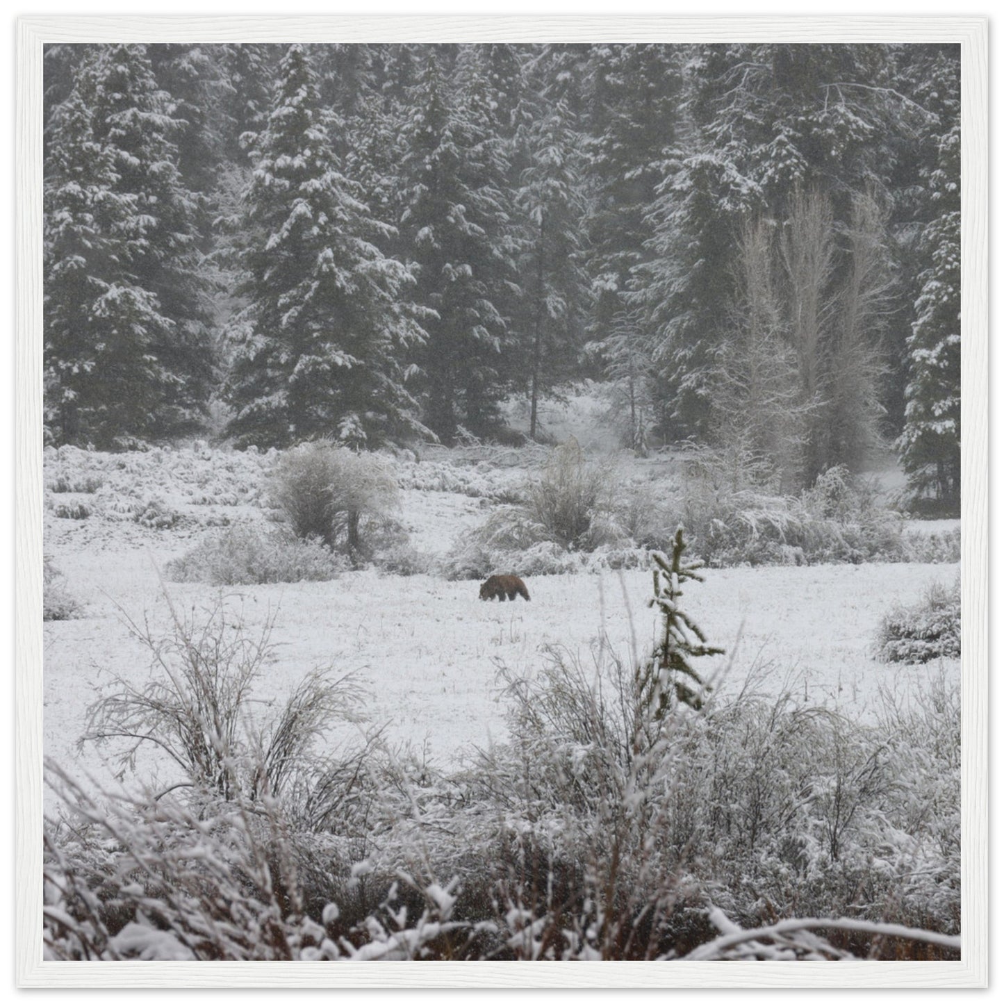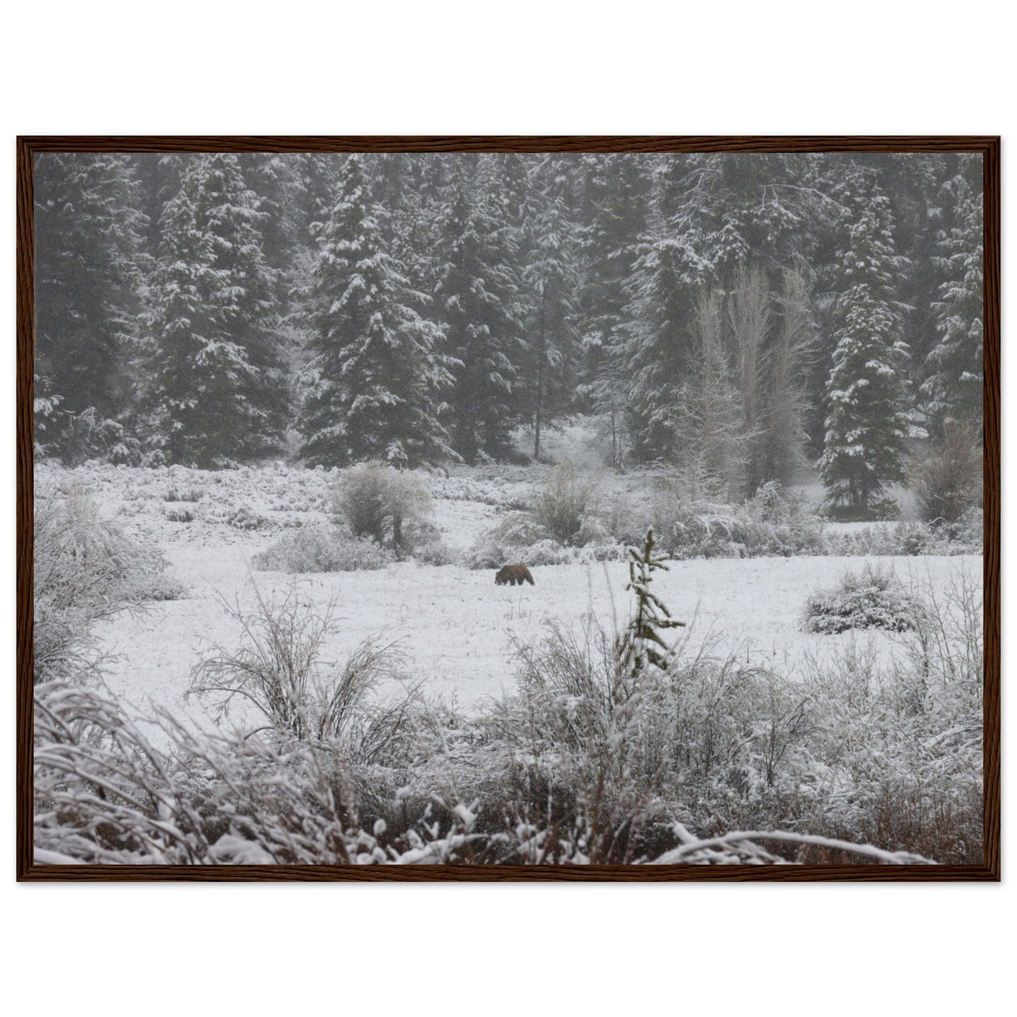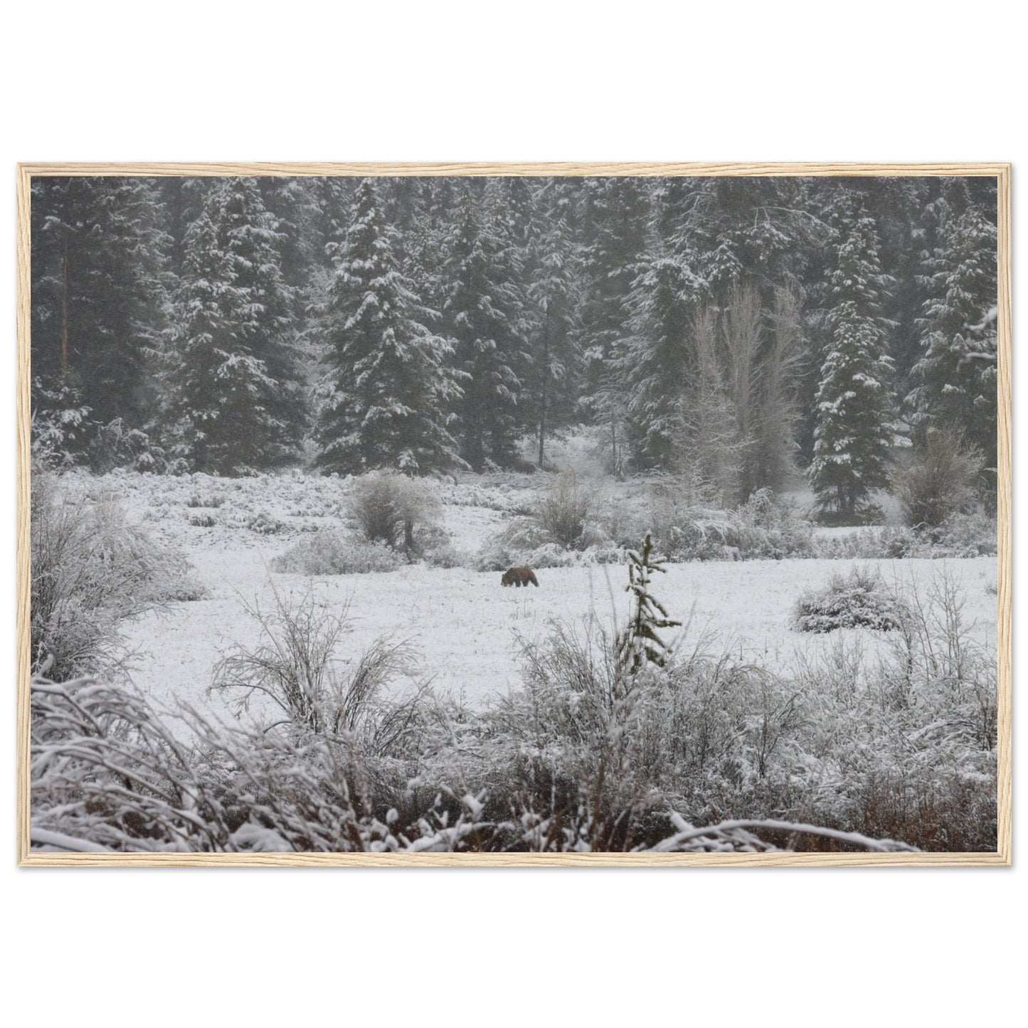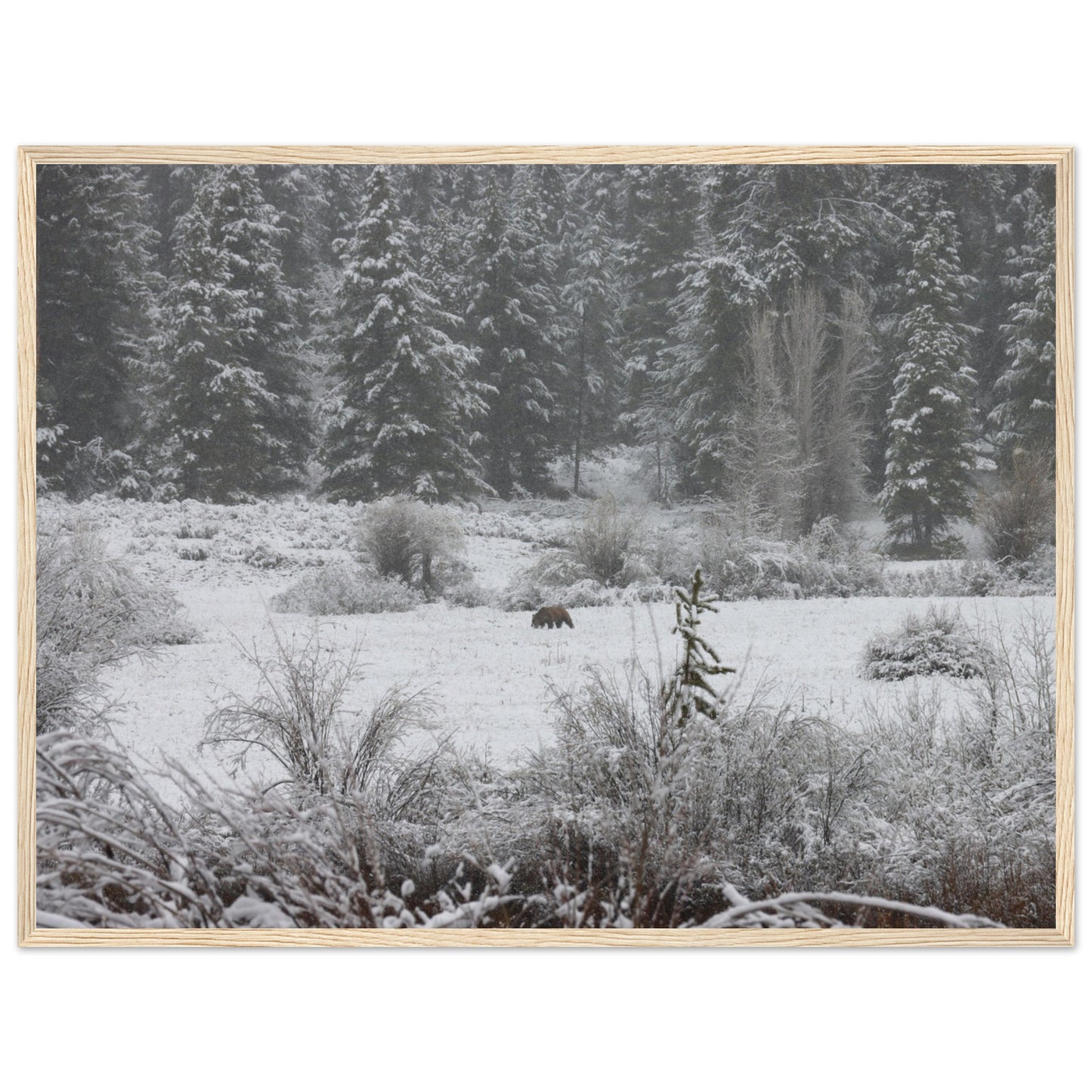 Grizzly bear on snowy day - Premium matte paper poster with wooden frame