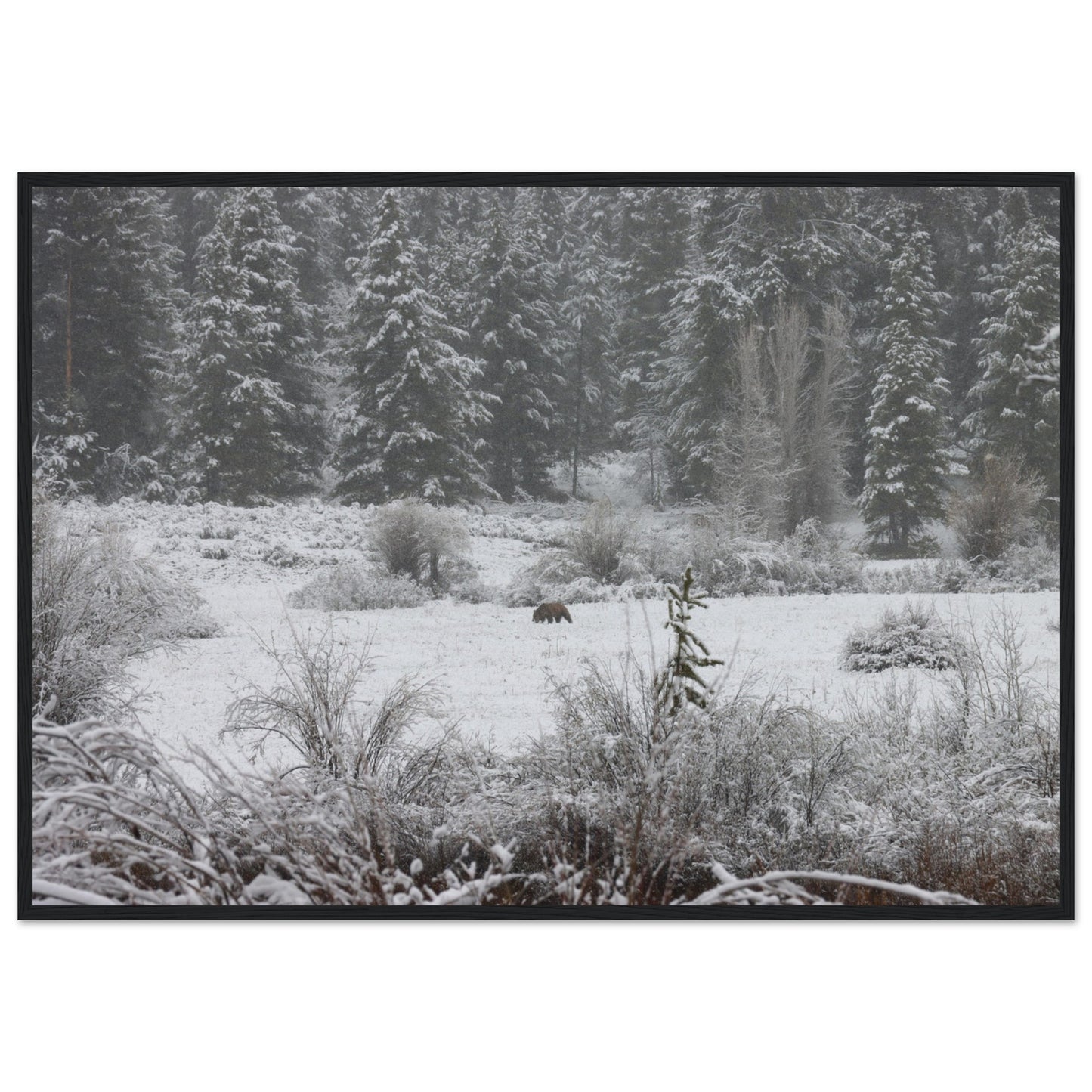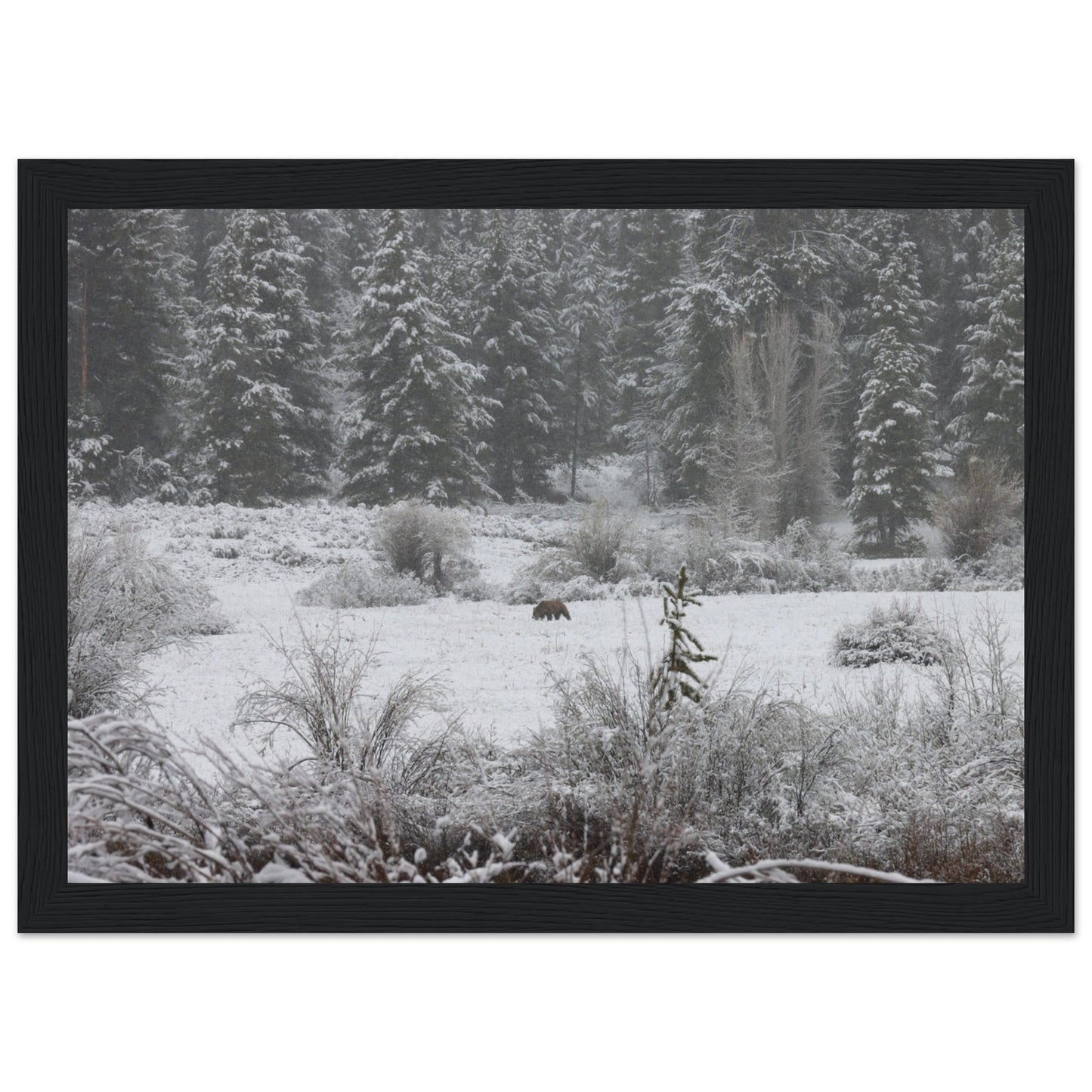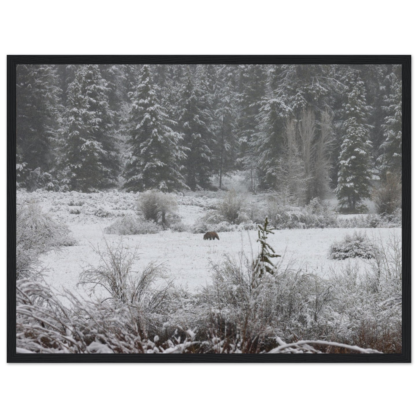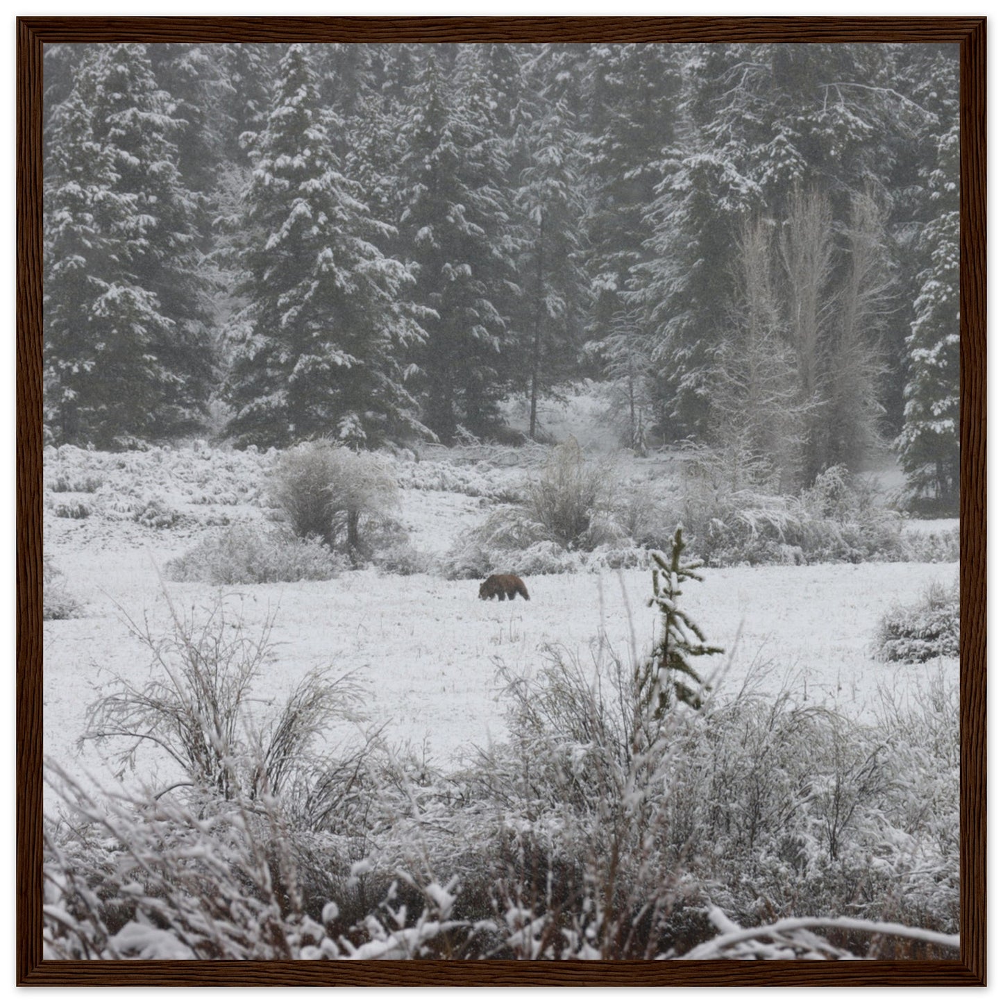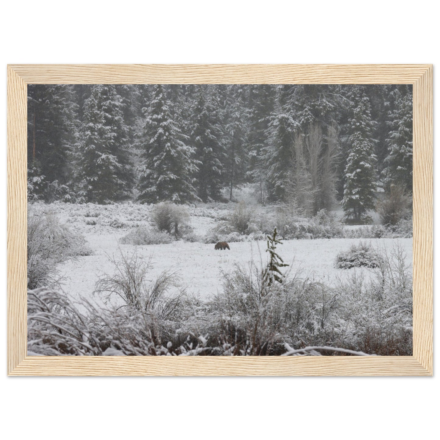 Grizzly bear on snowy day - Premium matte paper poster with wooden frame