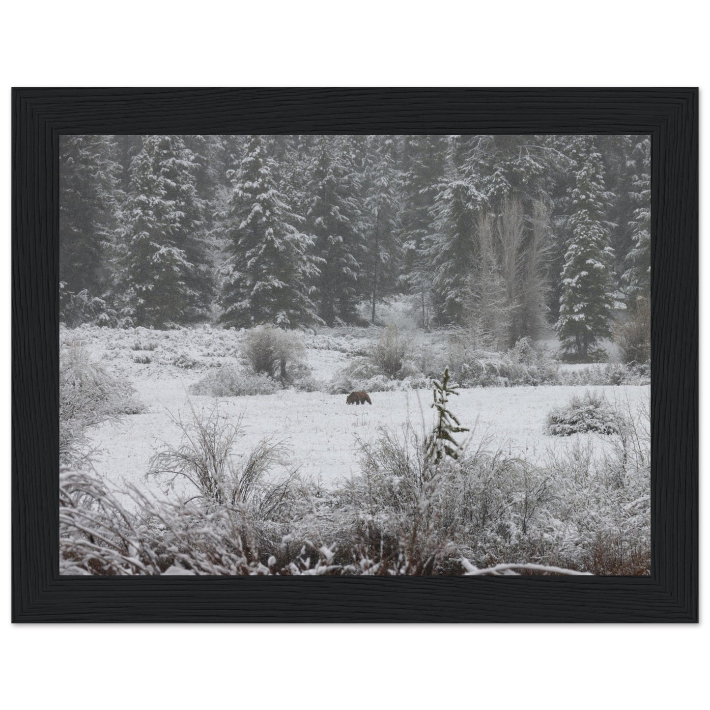 Grizzly bear on snowy day - Premium Matte Paper Wooden Framed Poster
