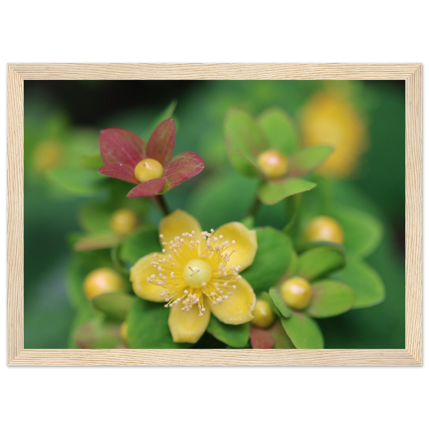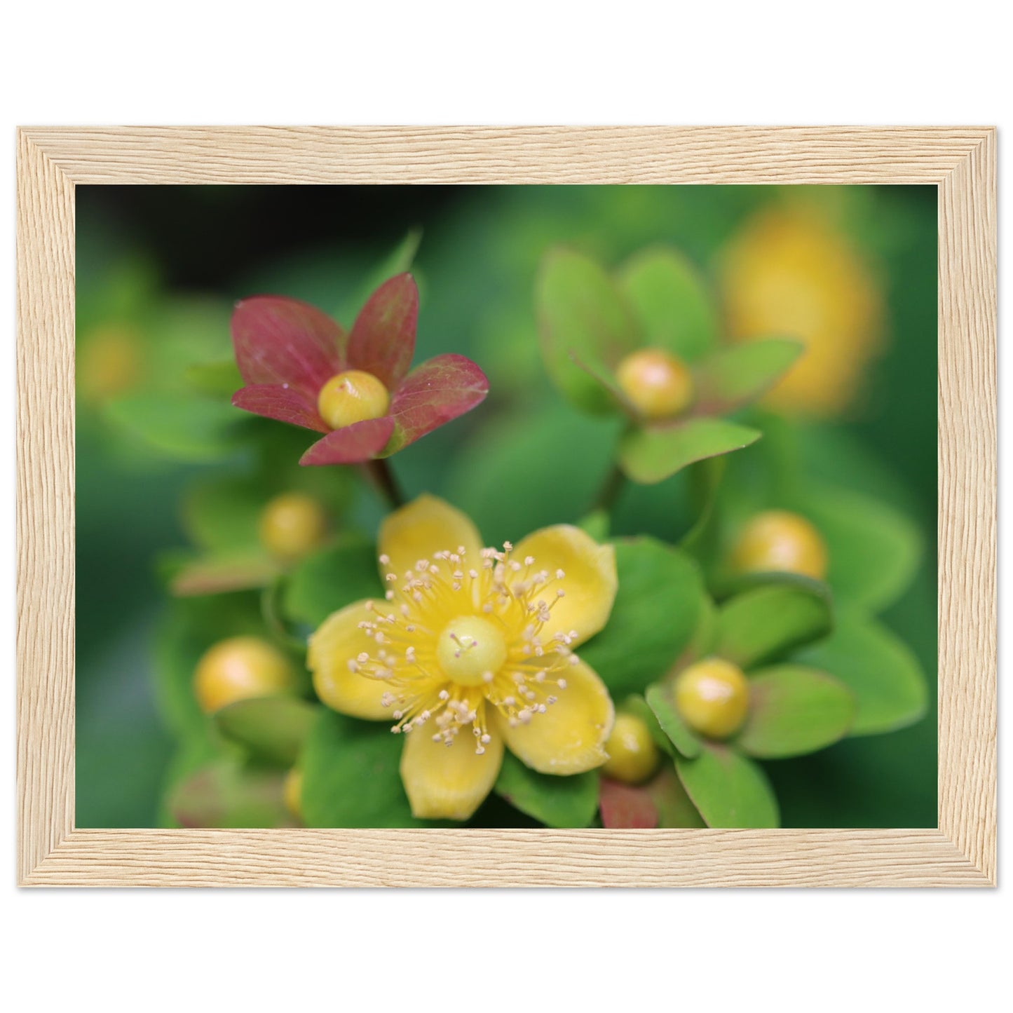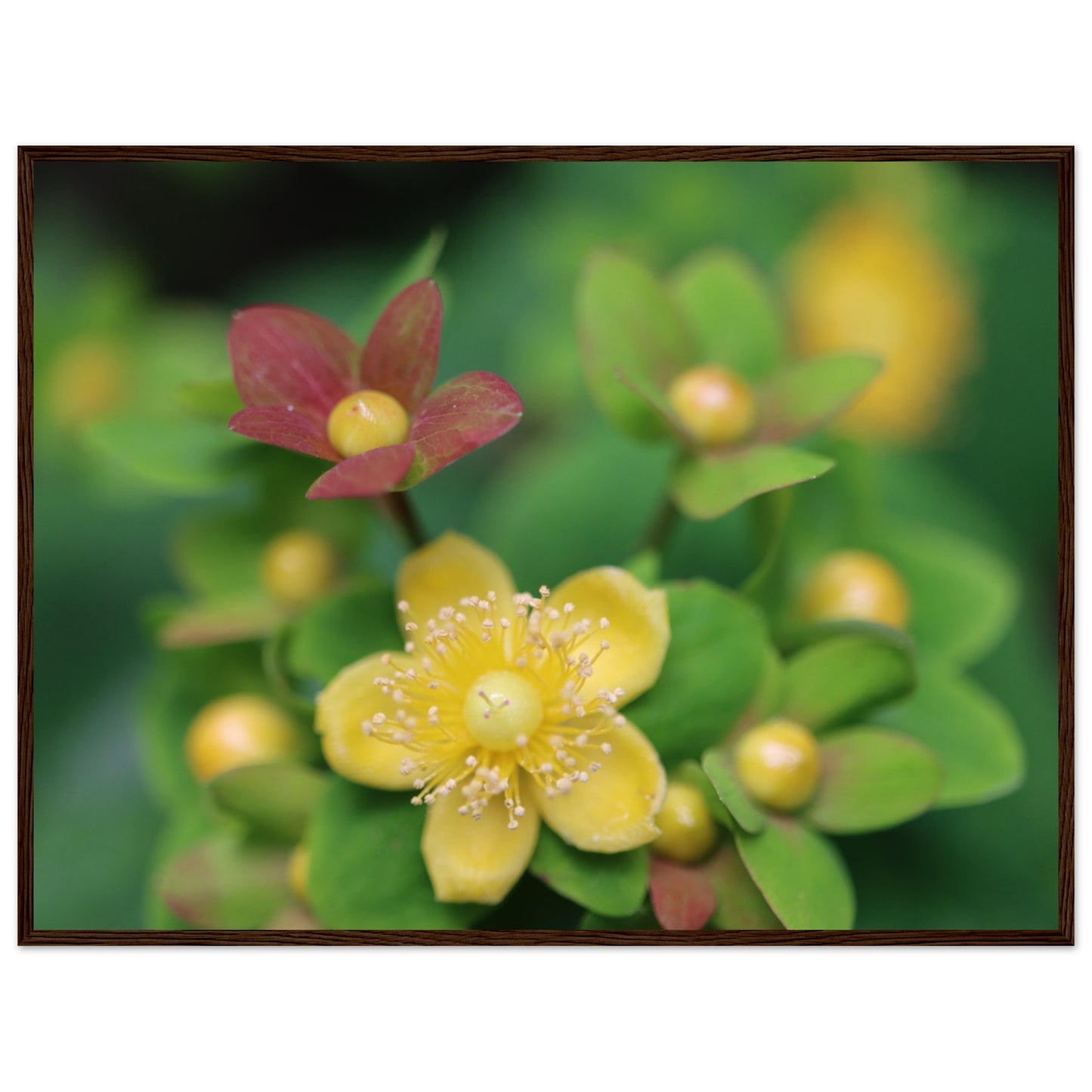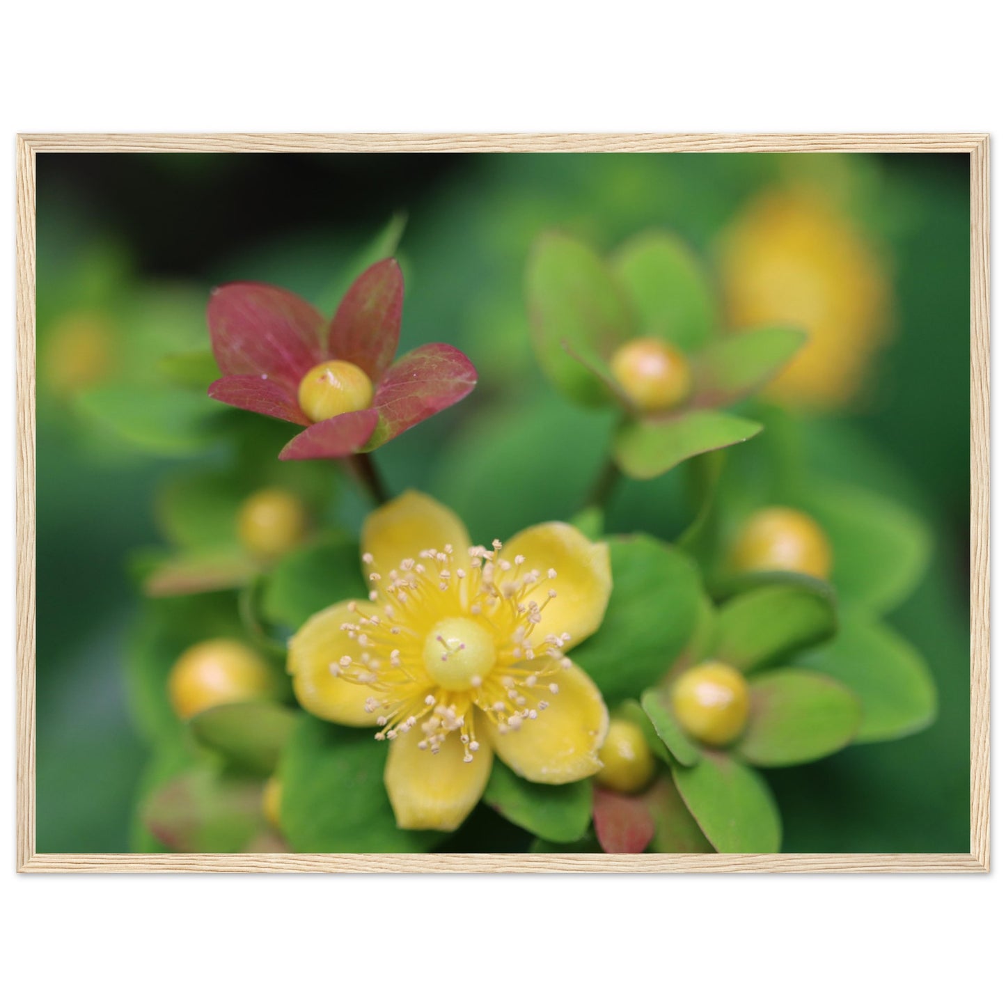 Hypericum androsaemum in bloom - Premium Matte Paper Wooden Framed Poster