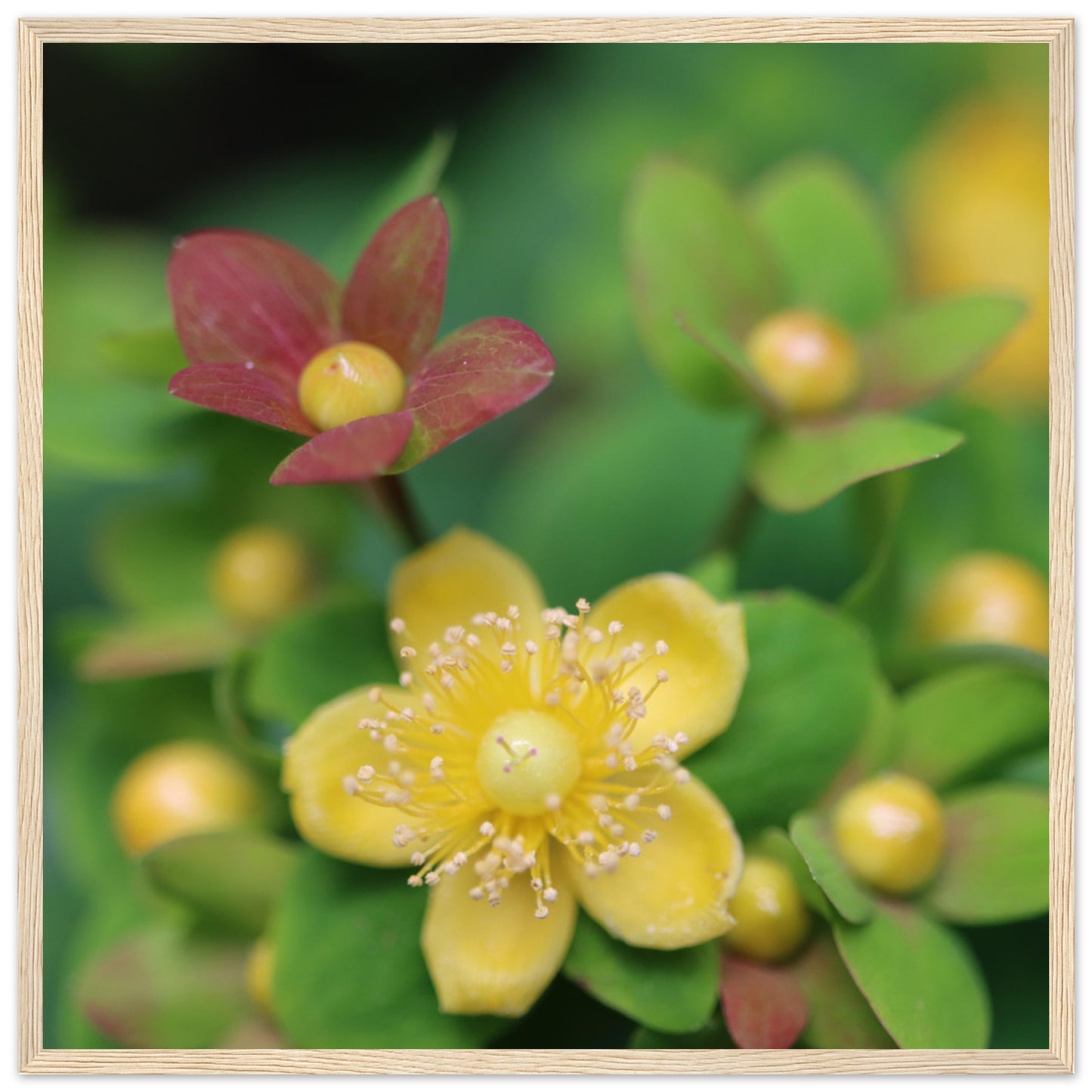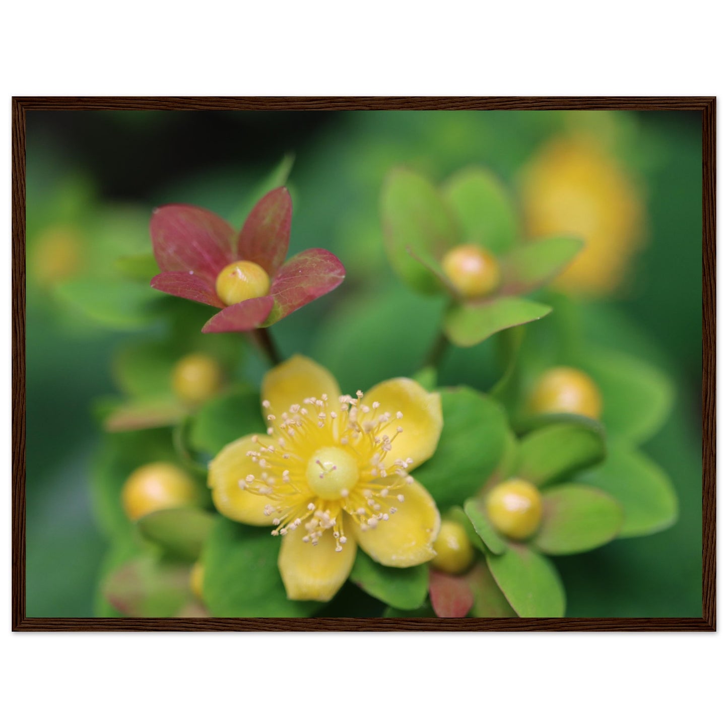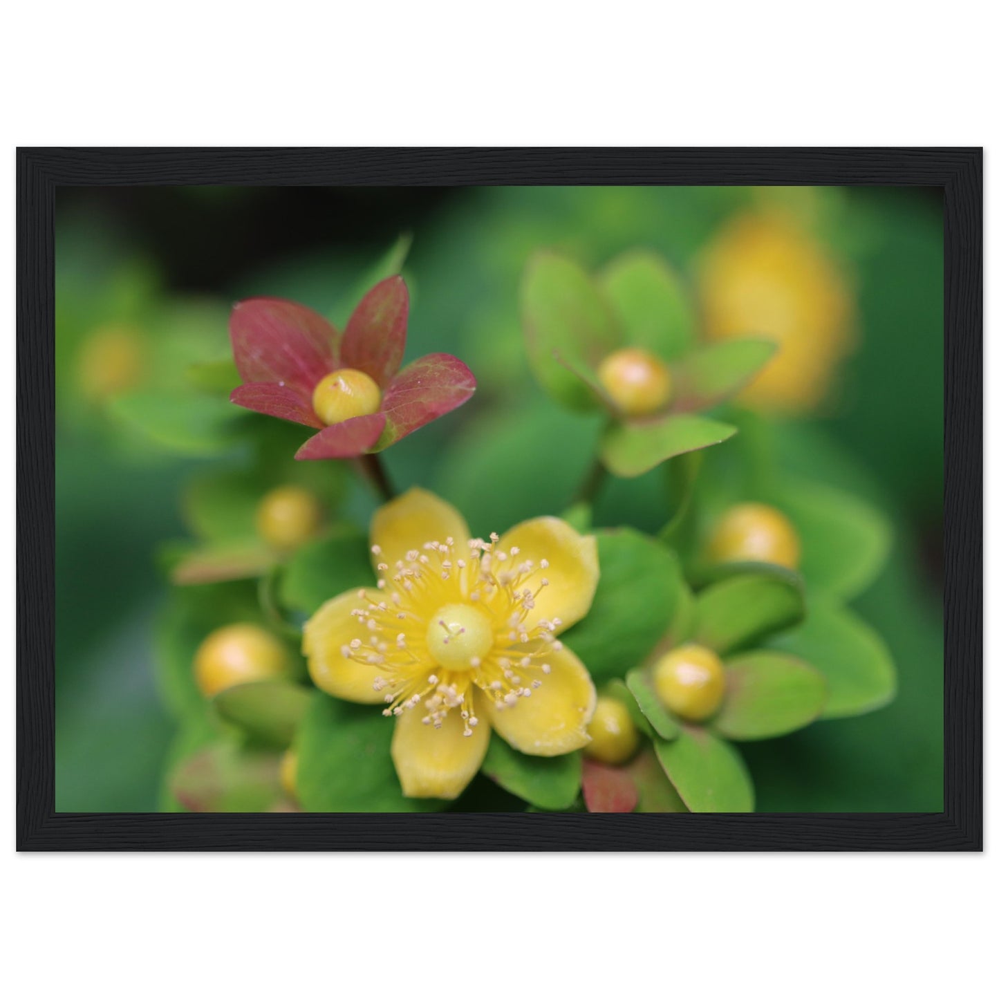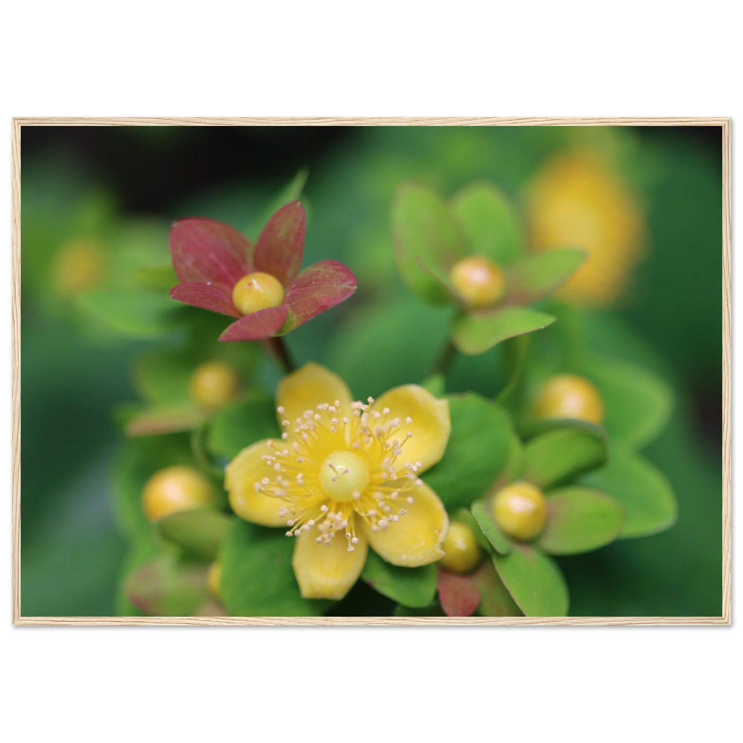 Hypericum androsaemum in bloom - Premium Matte Paper Wooden Framed Poster