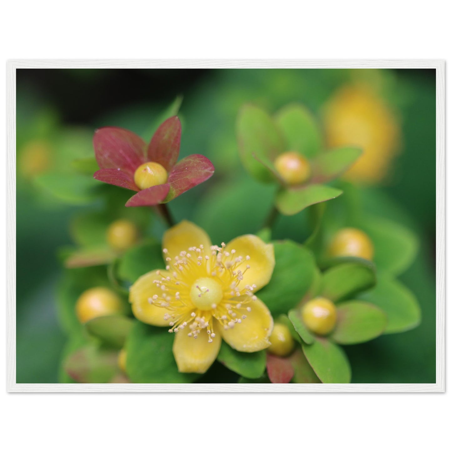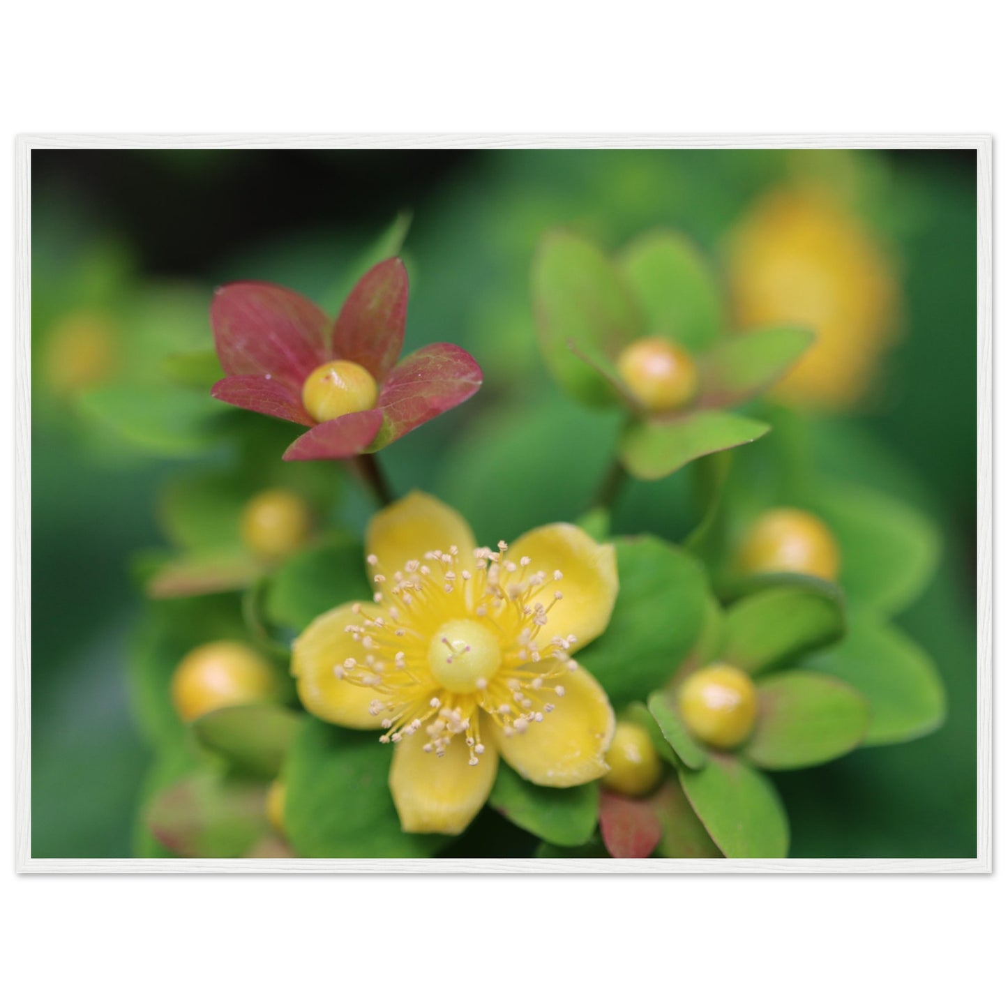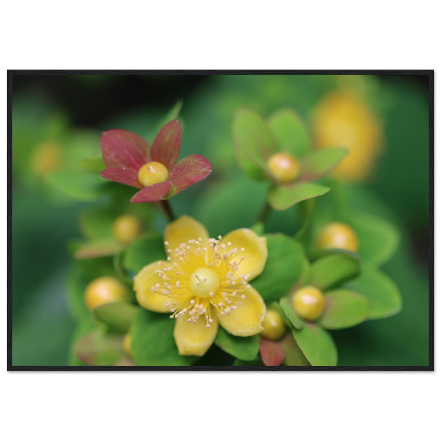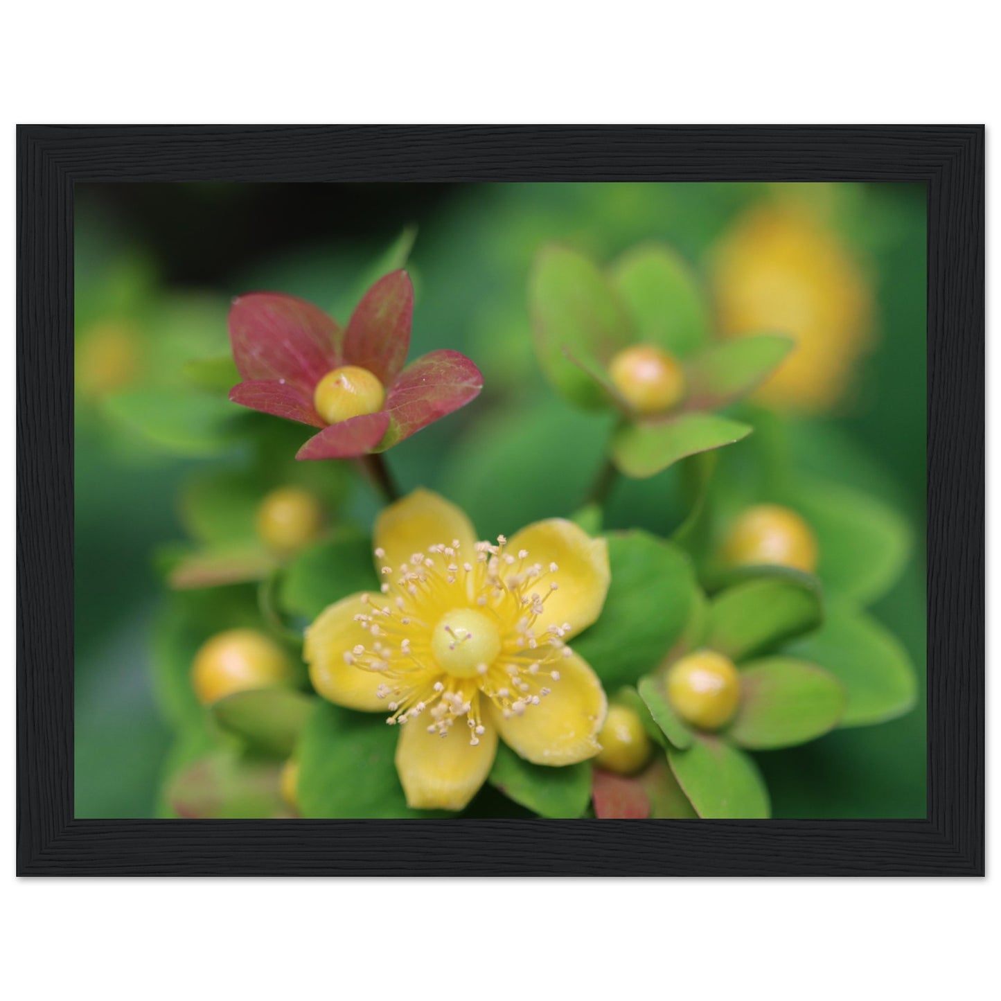 Hypericum androsaemum in bloom - Premium Matte Paper Wooden Framed Poster