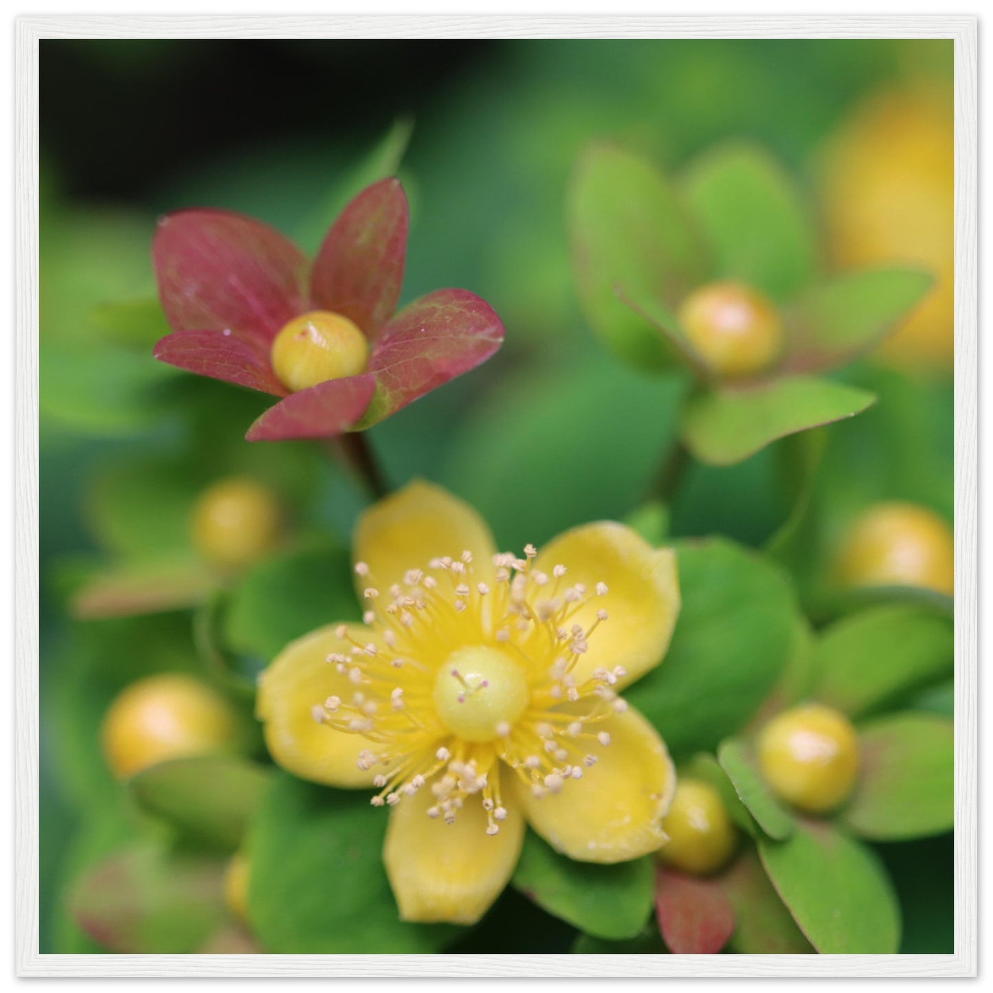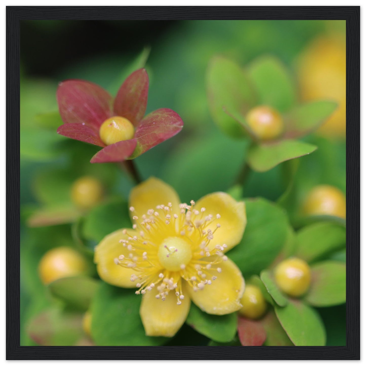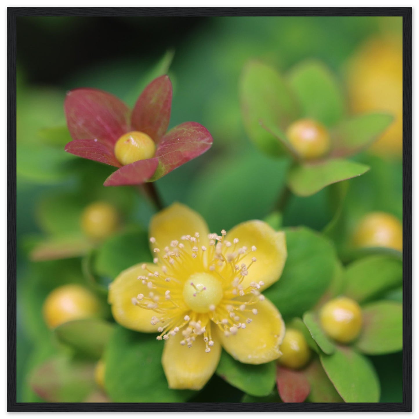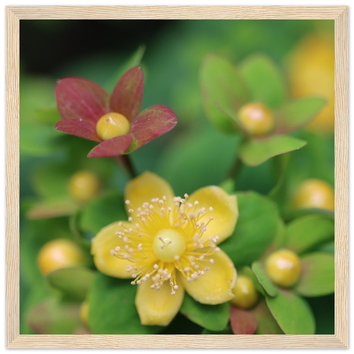 Hypericum androsaemum in bloom - Premium Matte Paper Wooden Framed Poster