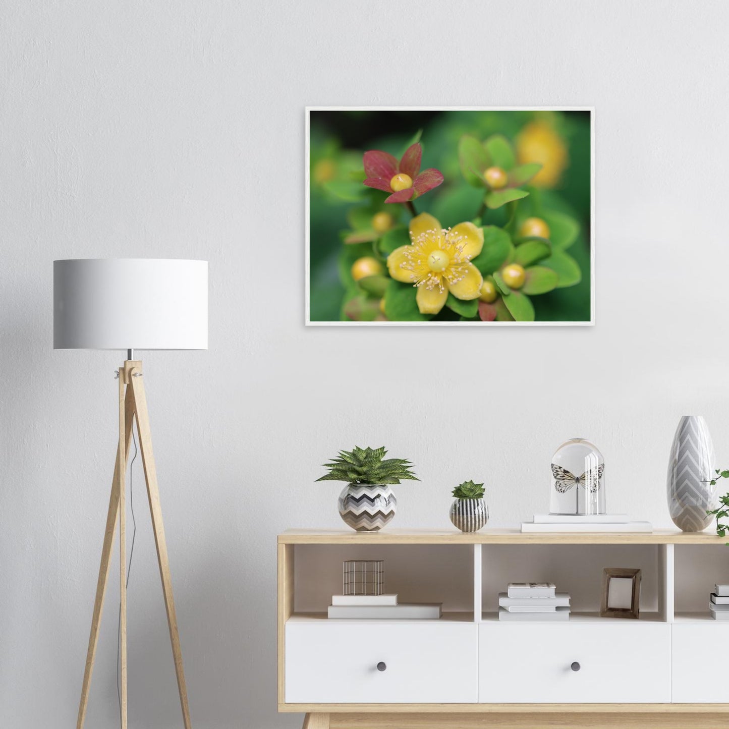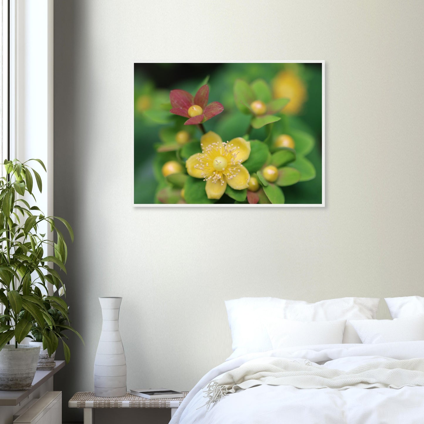 Hypericum androsaemum in bloom - Premium matte paper poster with wooden frame