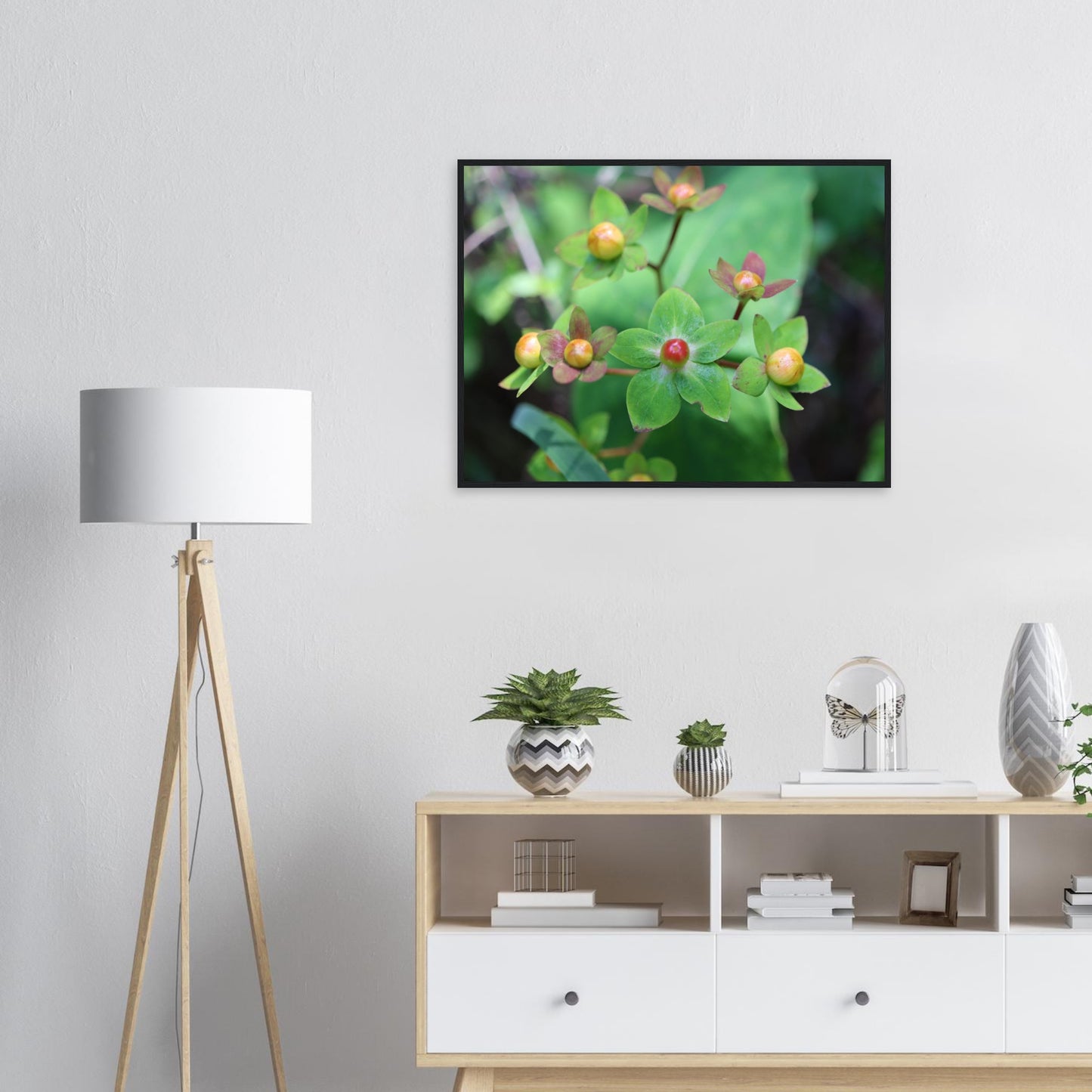Hypericum androsaemum in spring - Premium matte paper poster with wooden frame