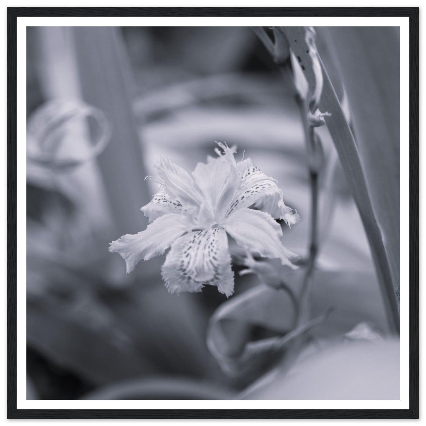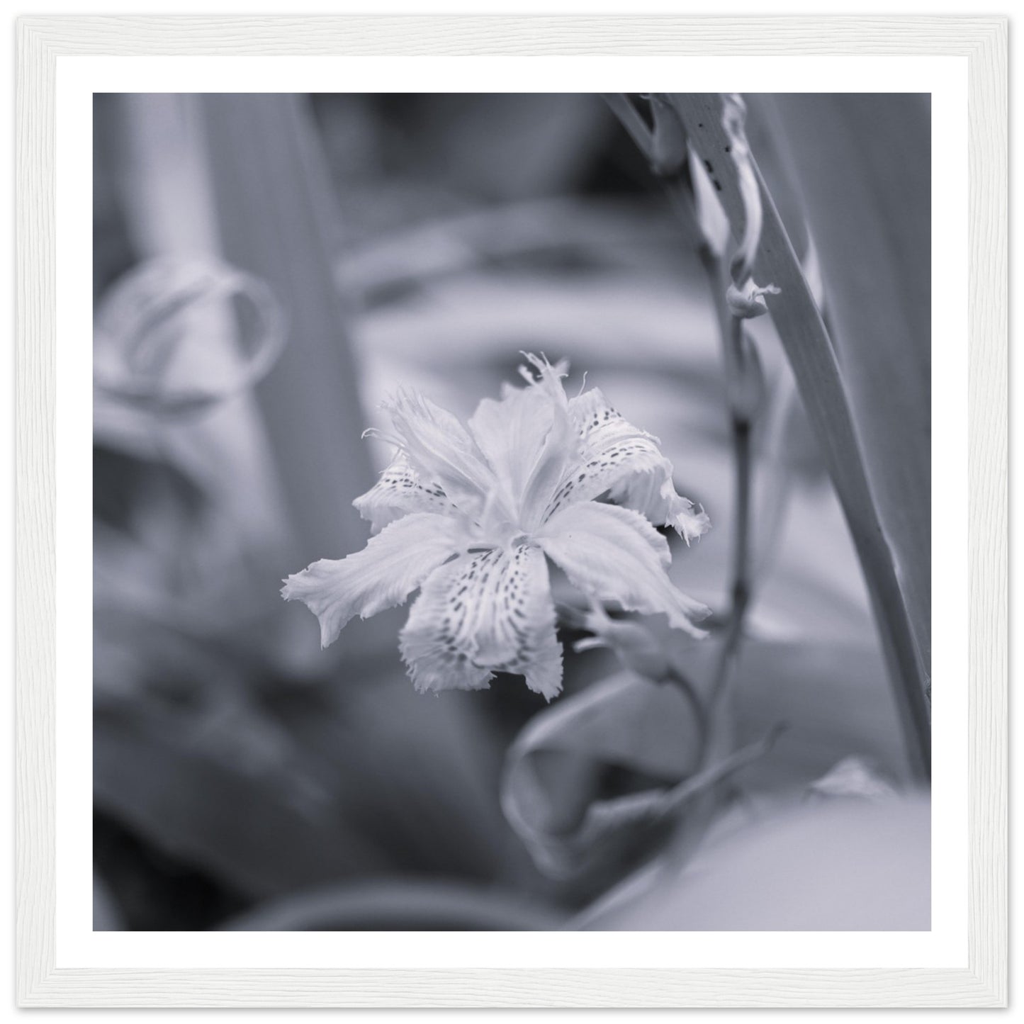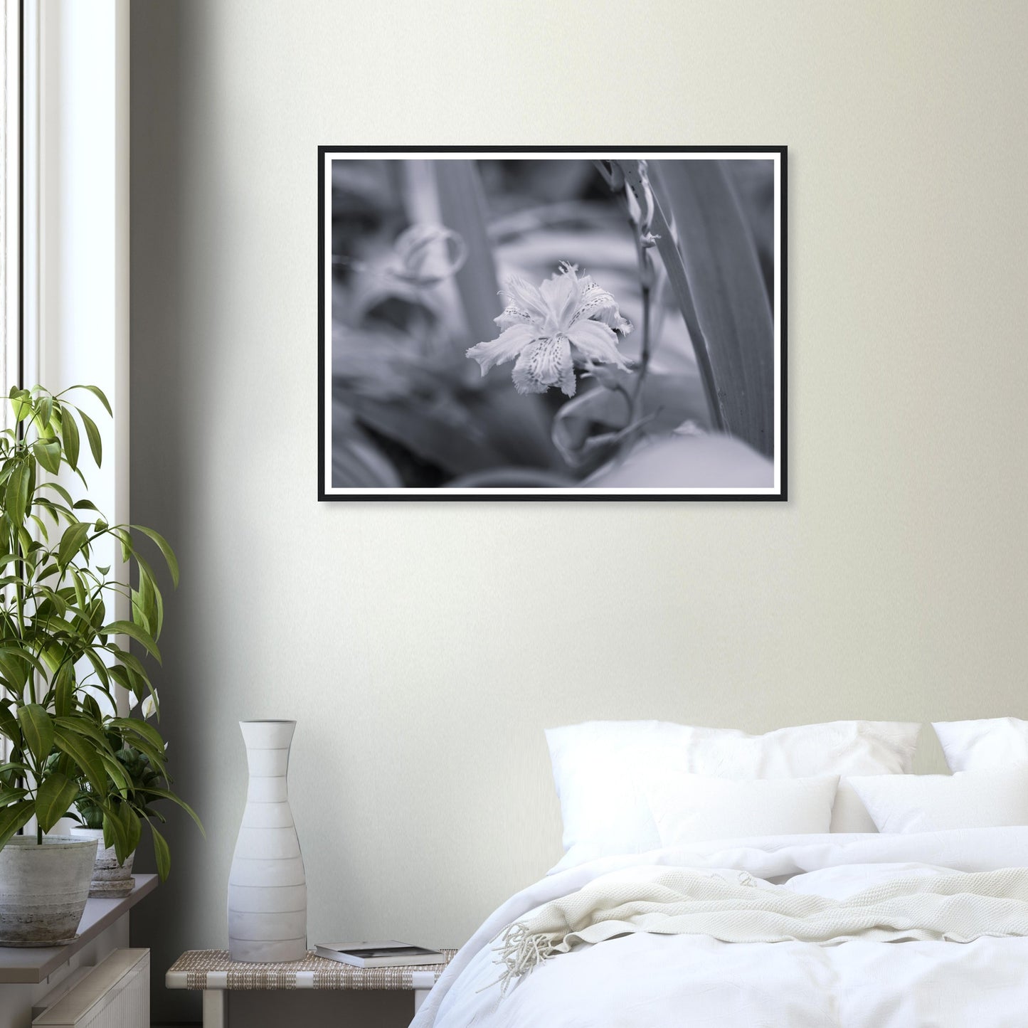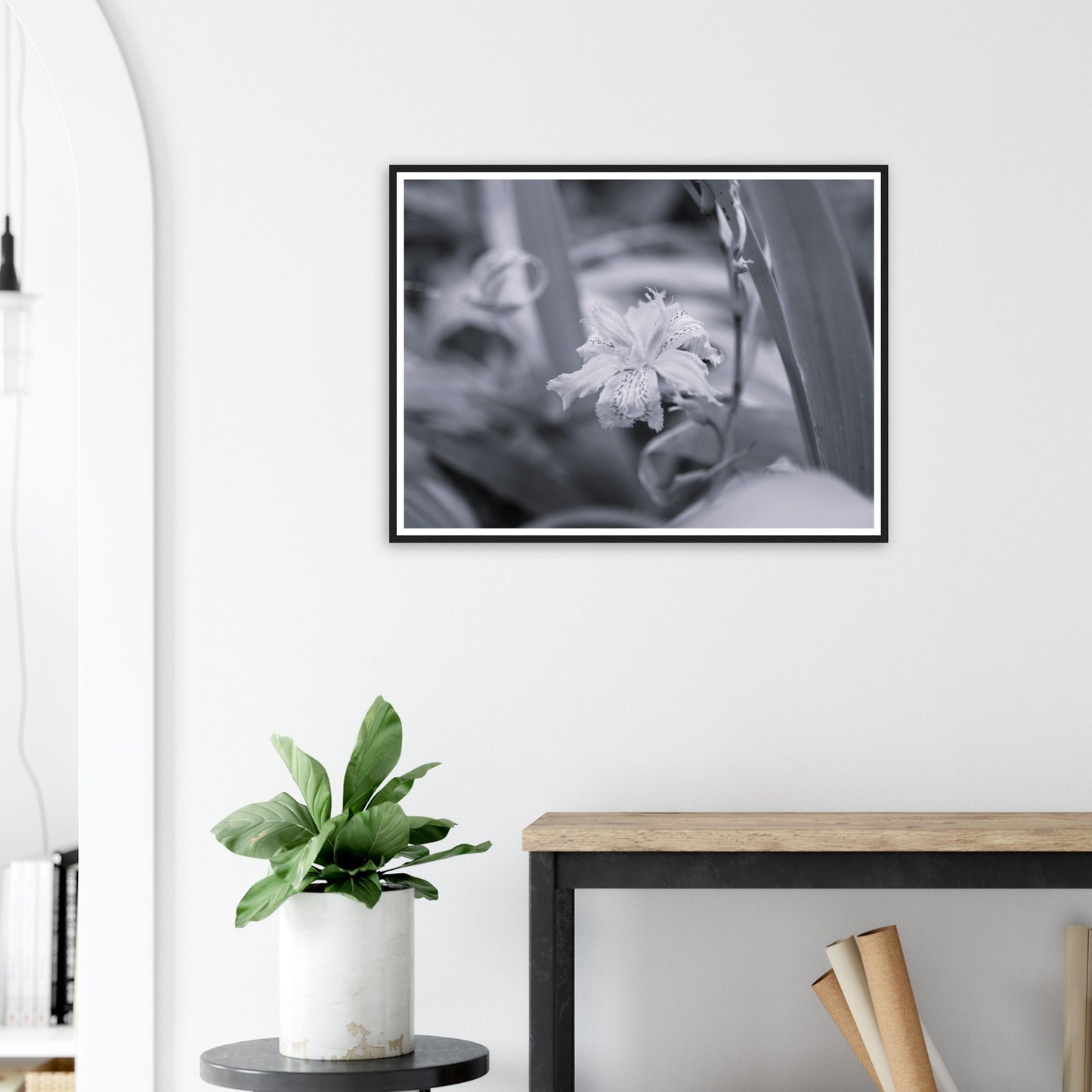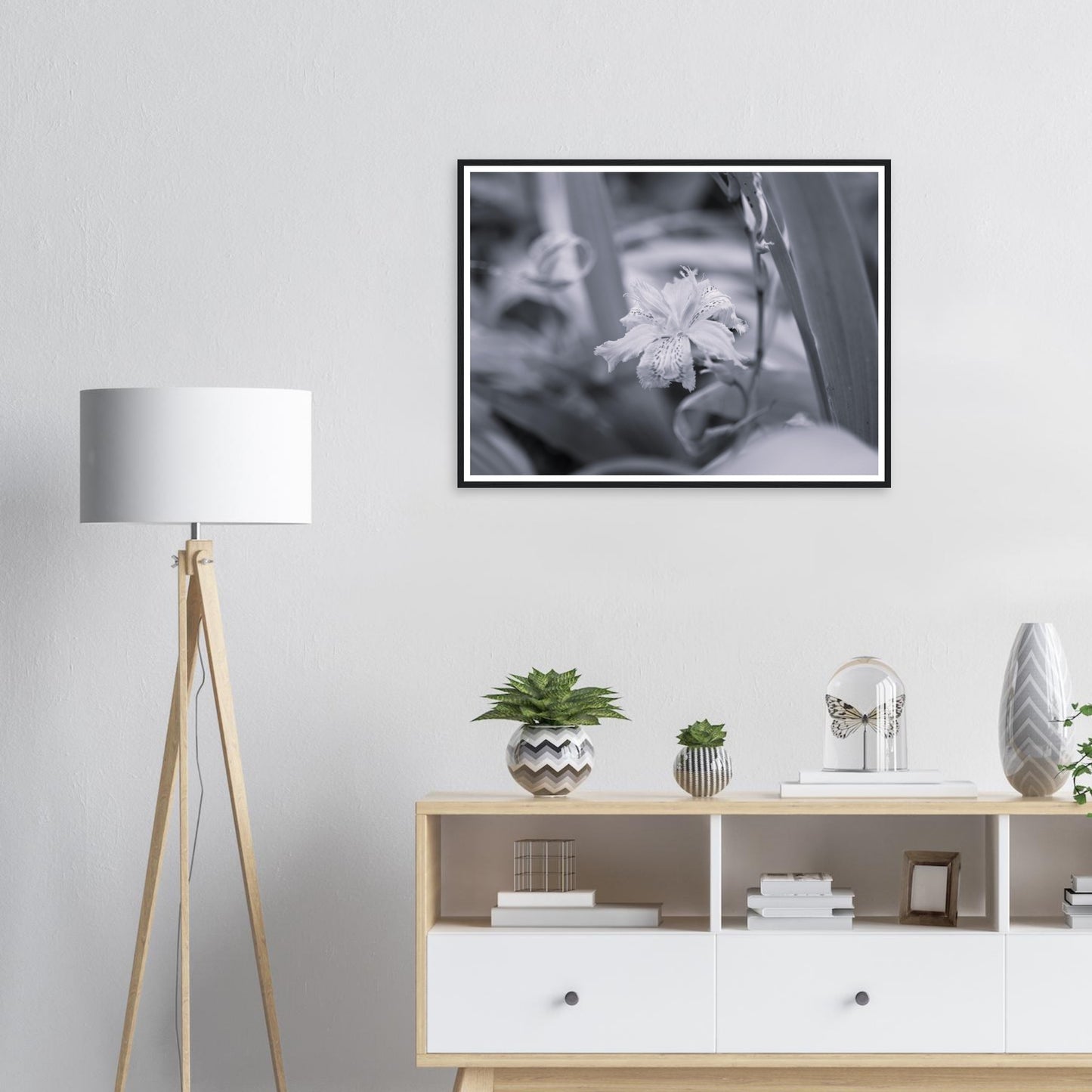 Japanese iris - Black & White - Premium matte paper poster with wooden frame