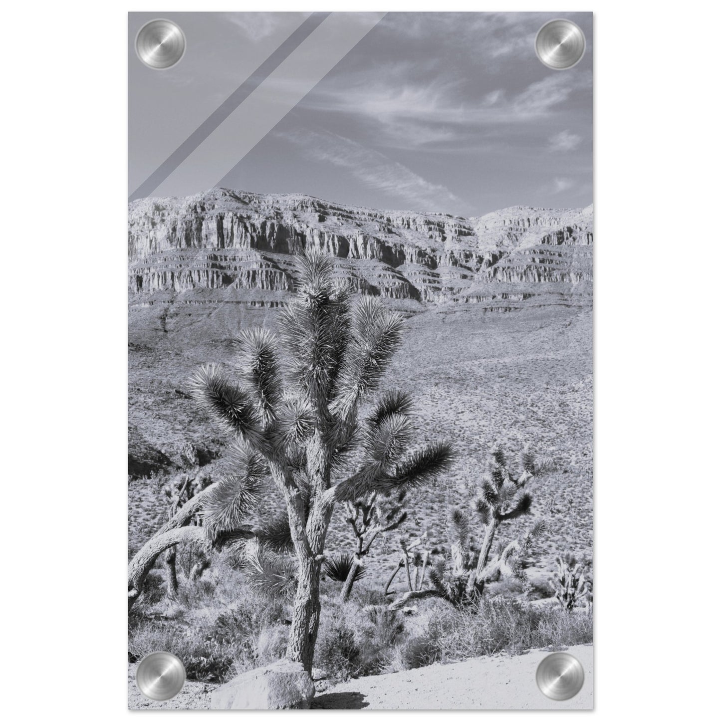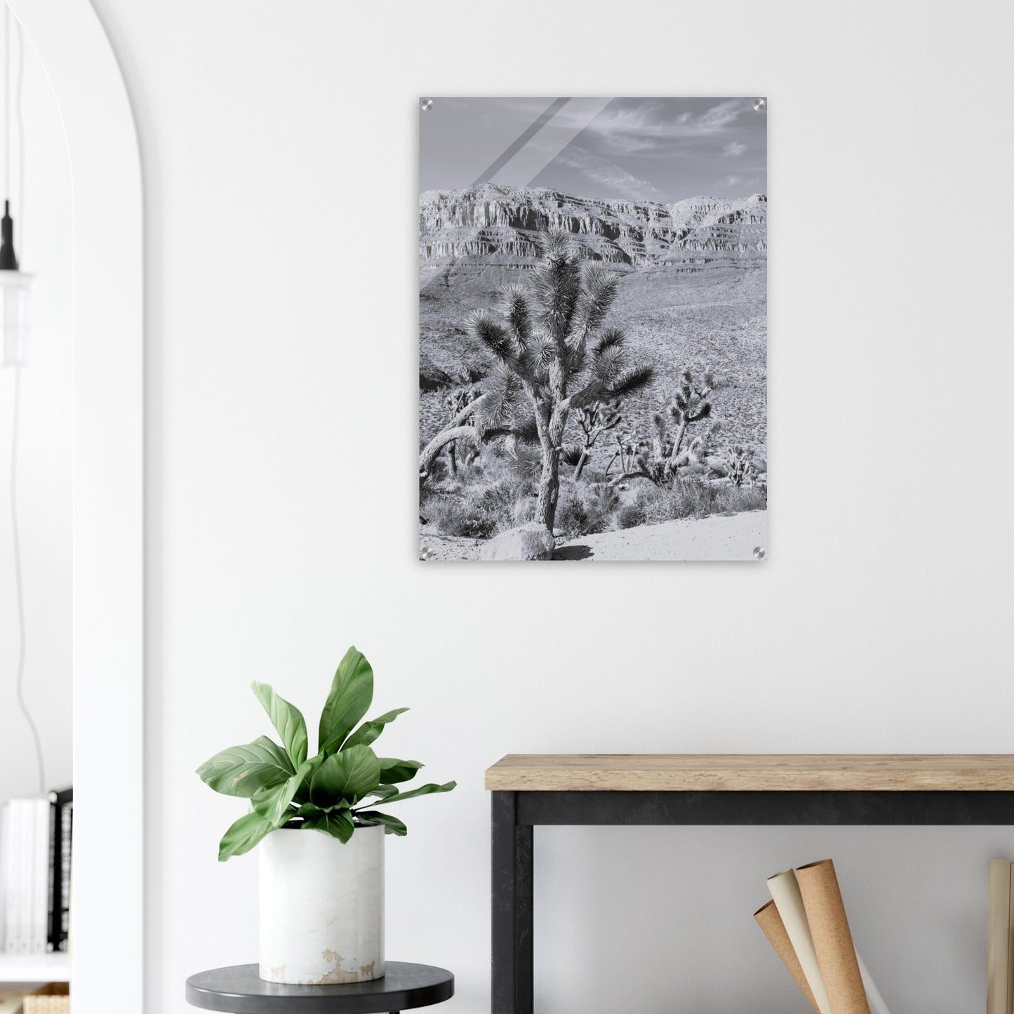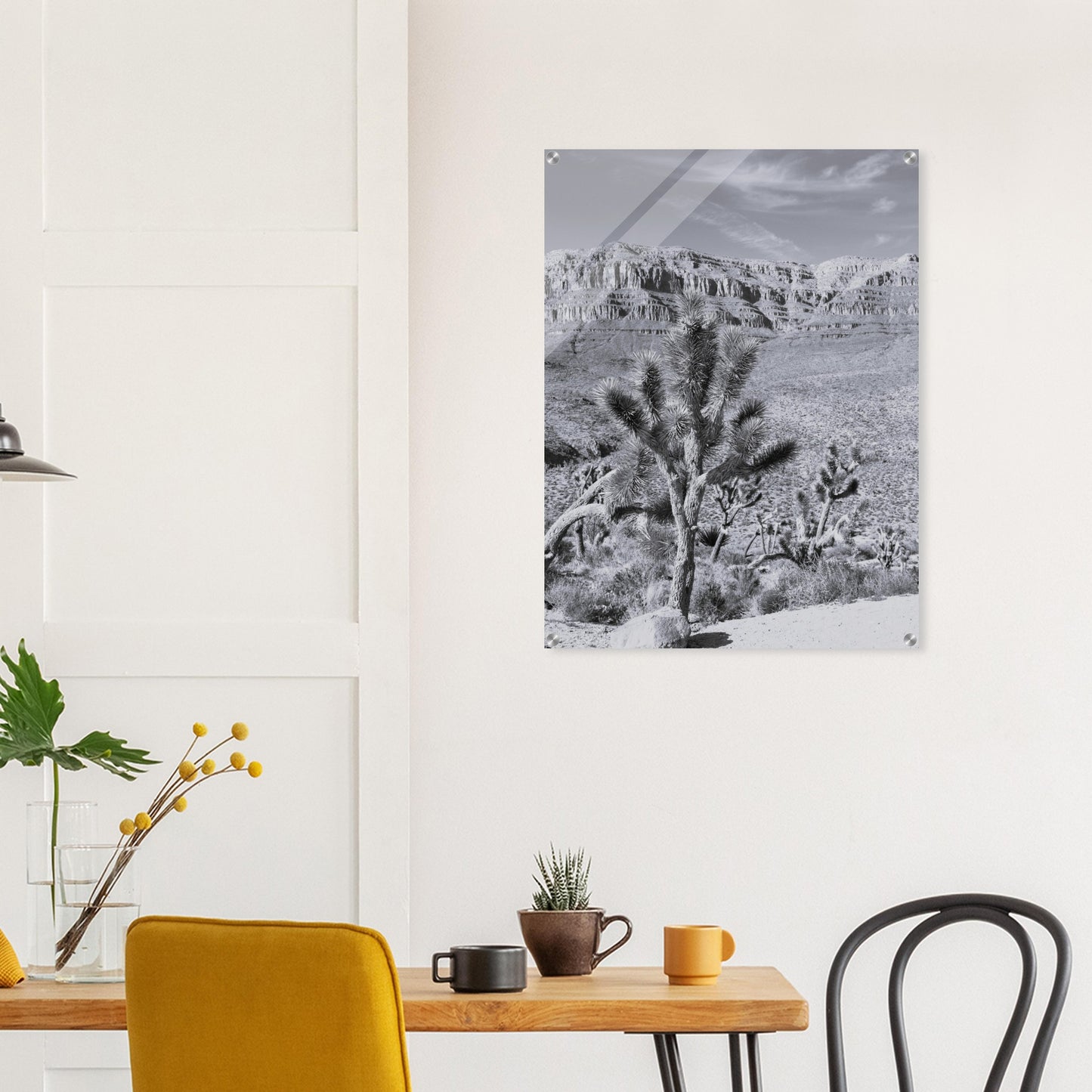 Joshua tree in the canyon - Black & White - Acrylic print (lightweight, shatterproof, and temperature-resistant, making them easy to mount on your walls.)