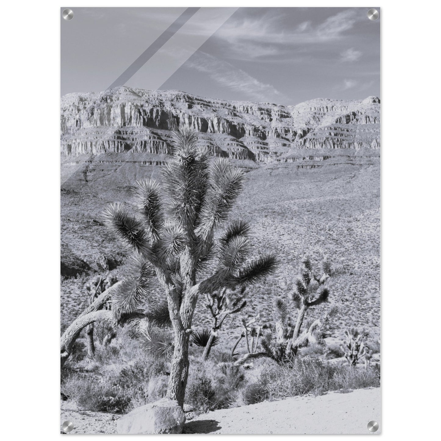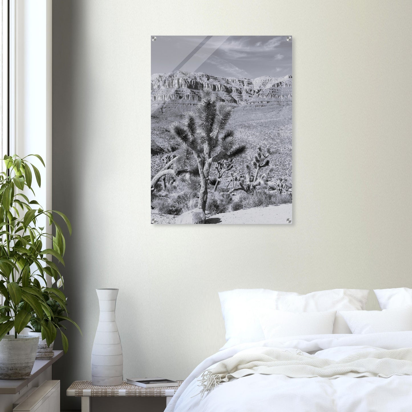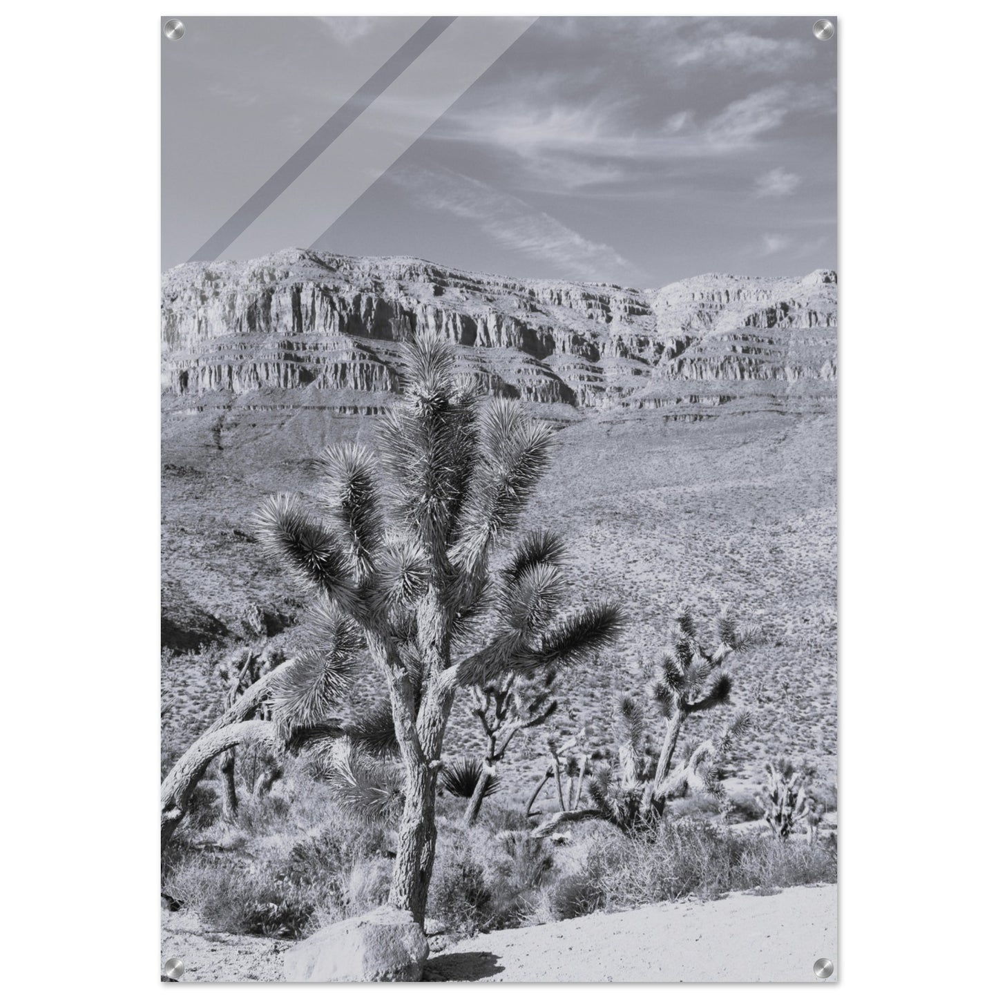 Joshua tree in the canyon - Black & White - Acrylic print (lightweight, shatterproof, and temperature-resistant, making them easy to mount on your walls.)