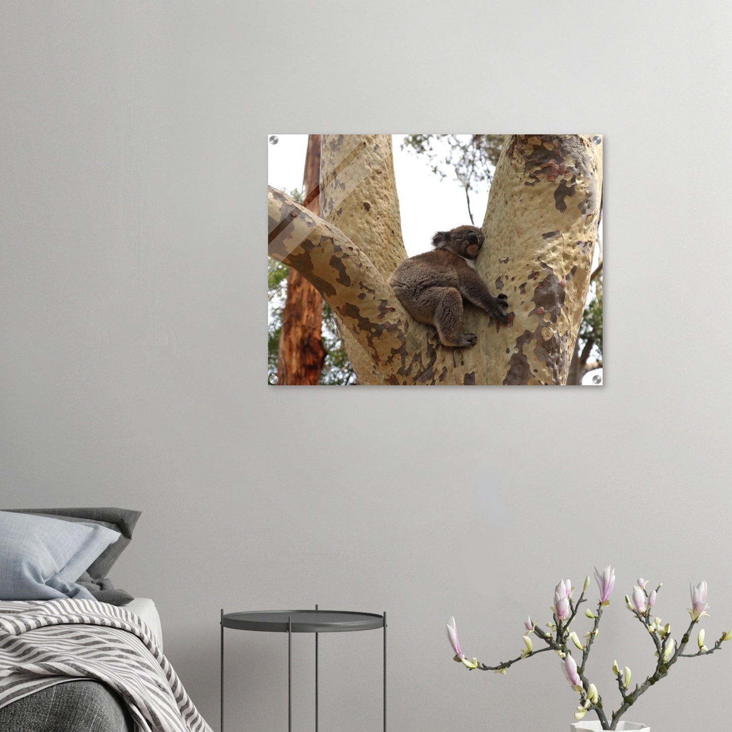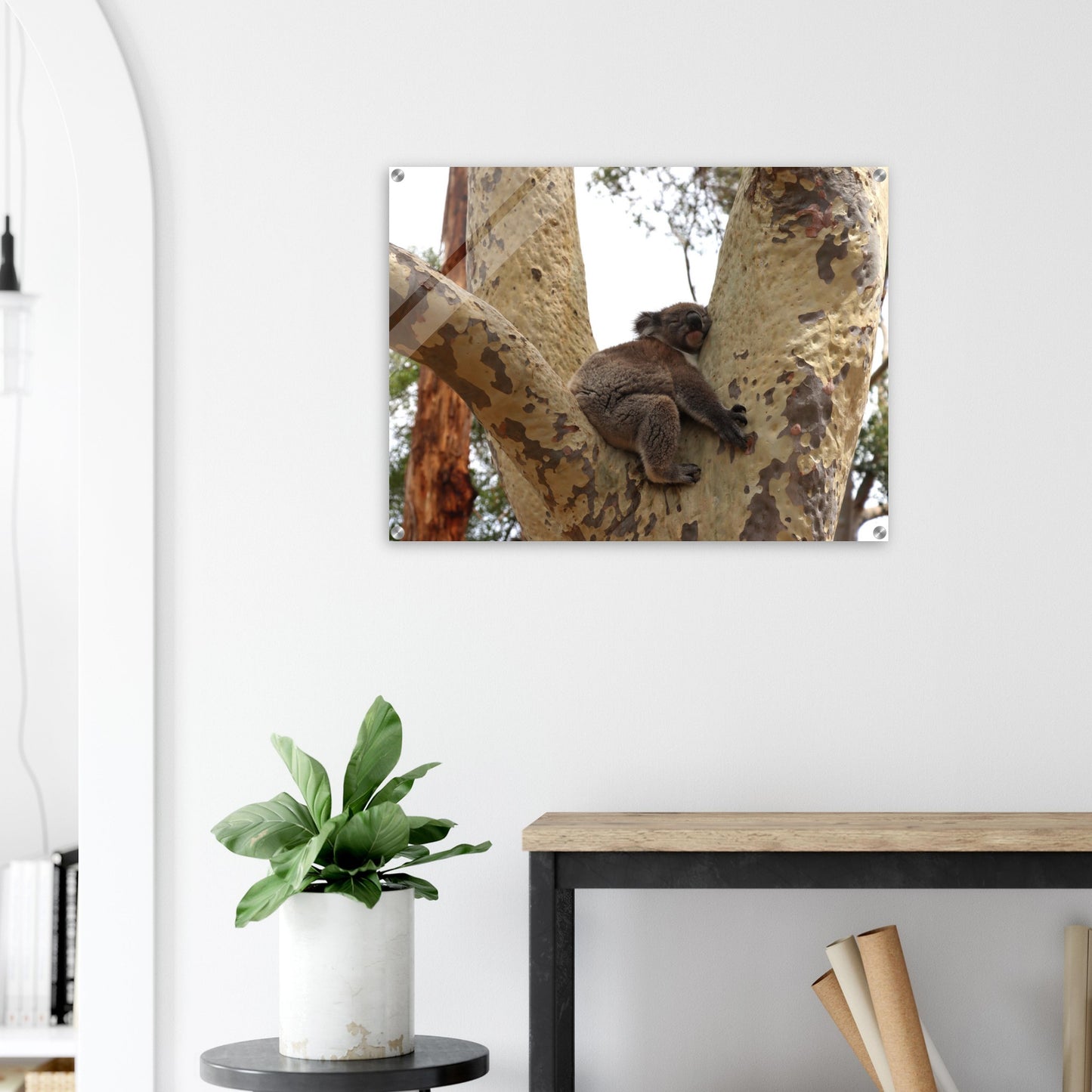 Koala asleep in a tree - Acrylic prints (lightweight, shatterproof, and temperature-resistant, making them easy to mount on your walls.)
