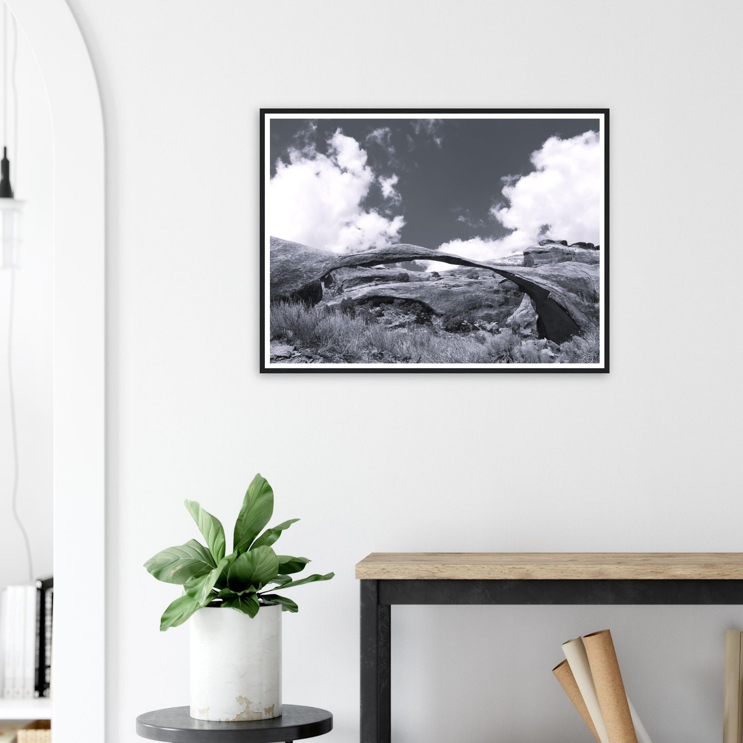 Landscape Arch, Utah - Black & White - Premium matte paper poster with wooden frame
