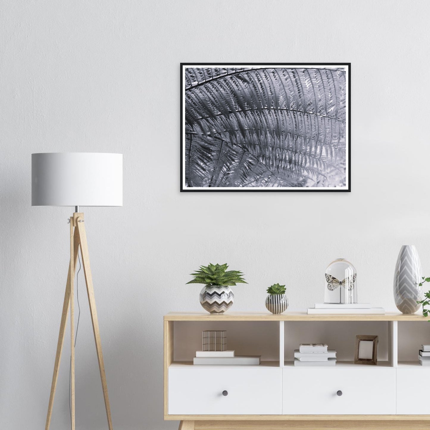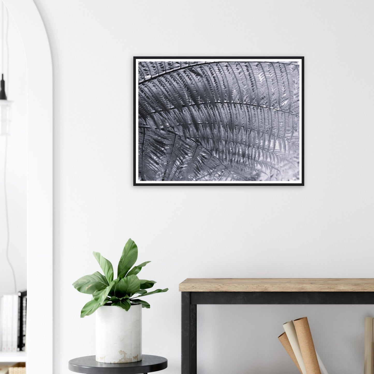 Leaf canopy - Black & White - Premium matte paper poster with wooden frame