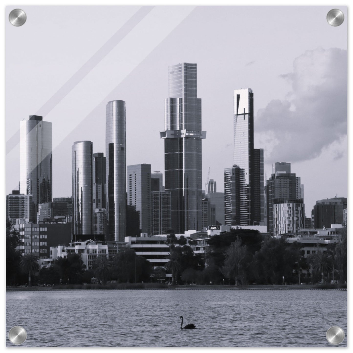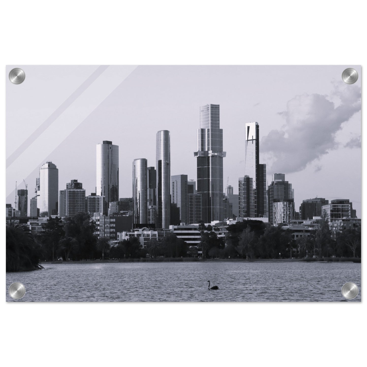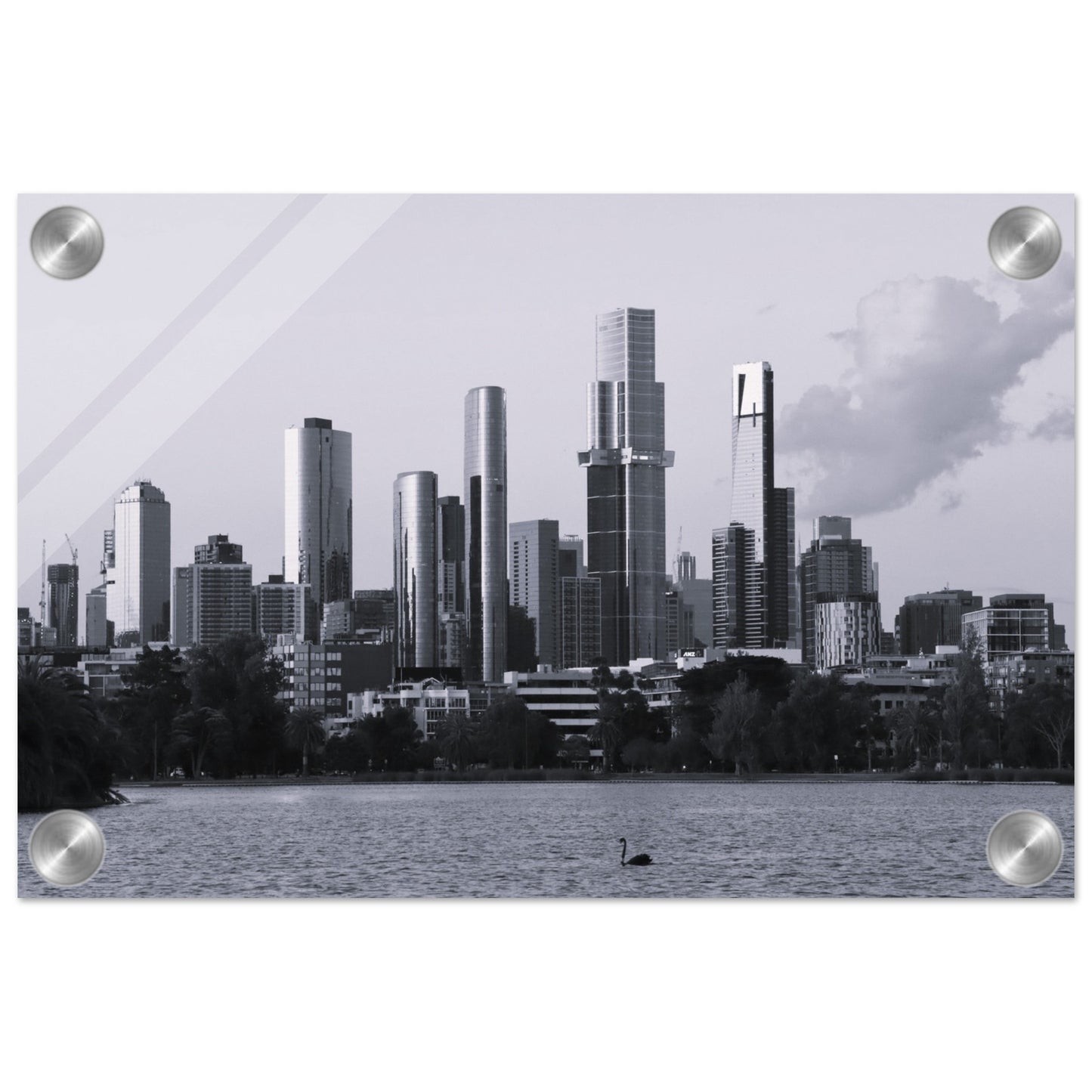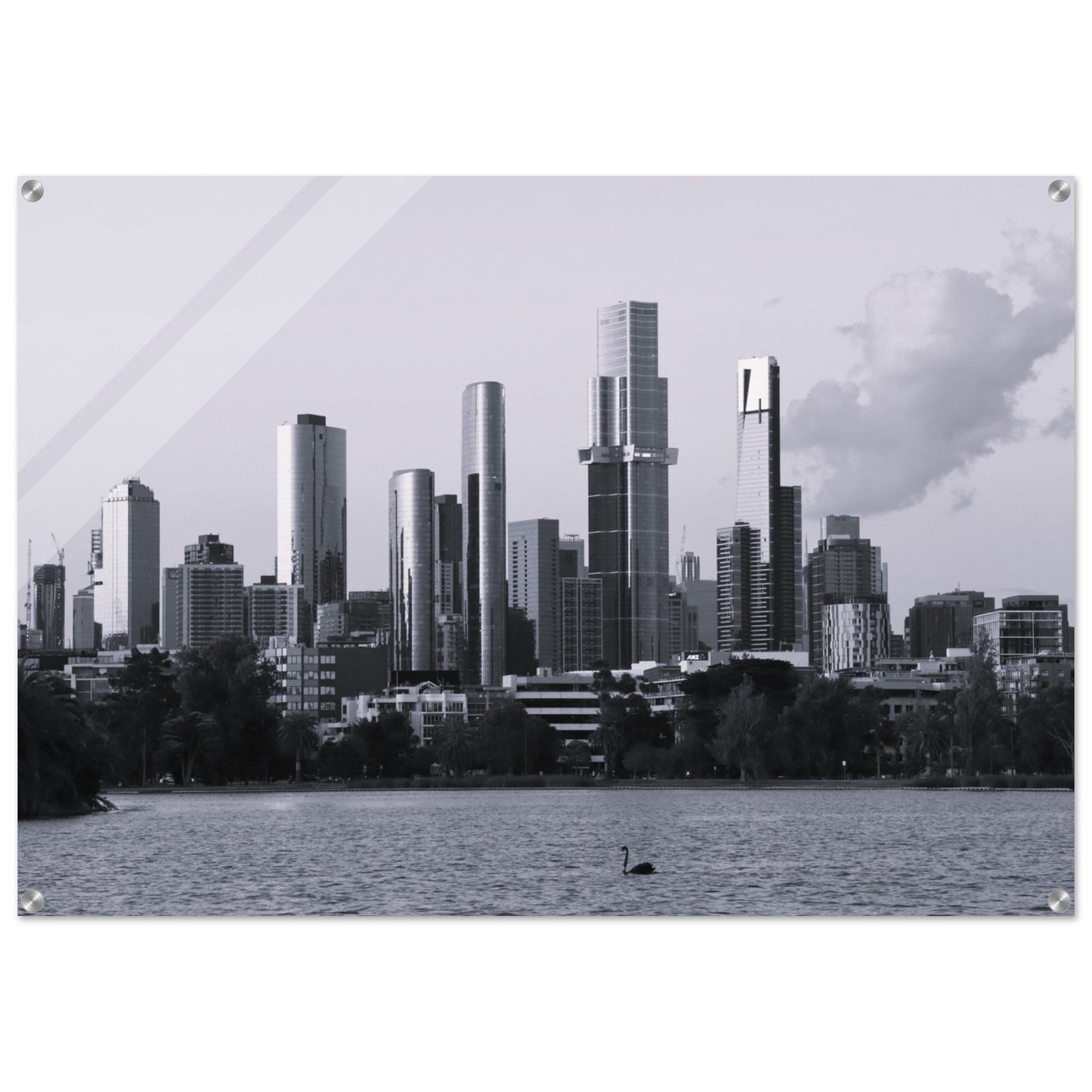 Melbourne skyscrapers by the water - Black & White - Acrylic prints (lightweight, shatterproof, and temperature-resistant, making them easy to mount on your walls.)
