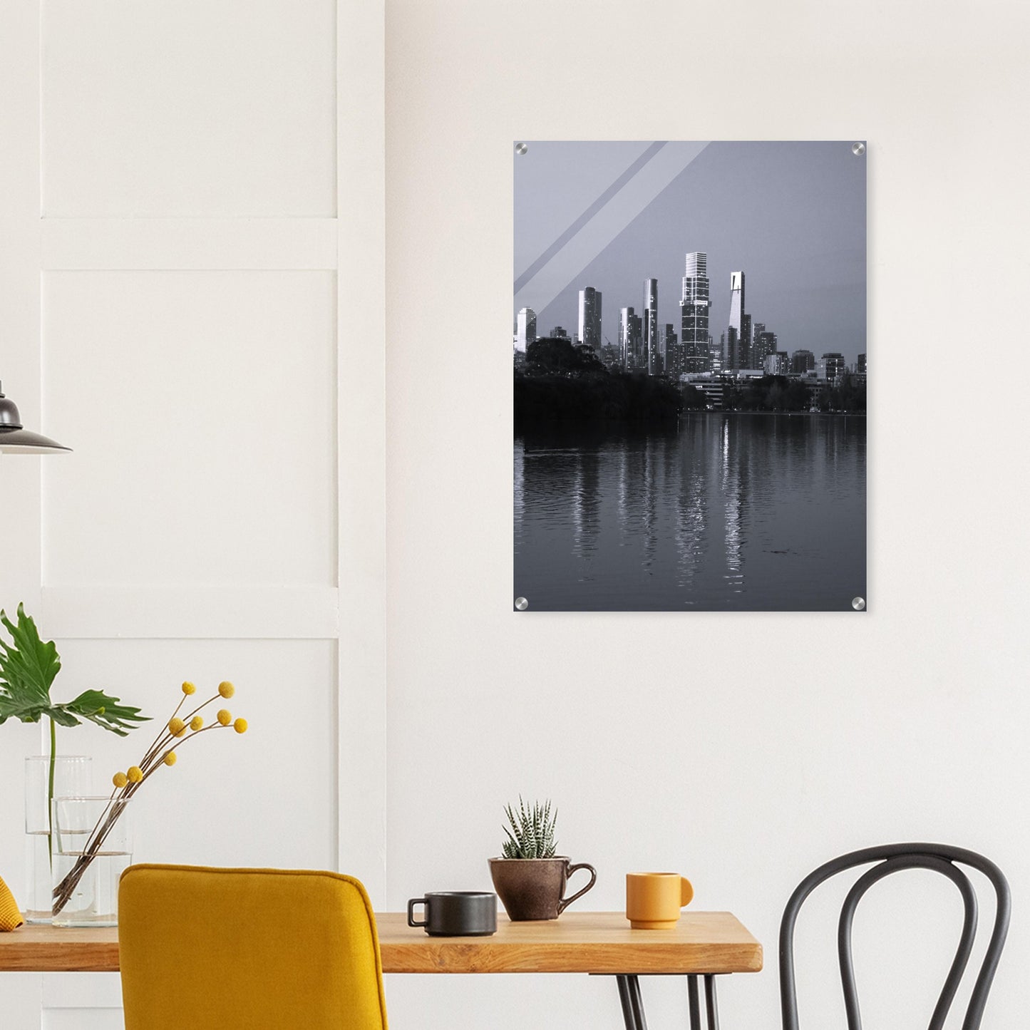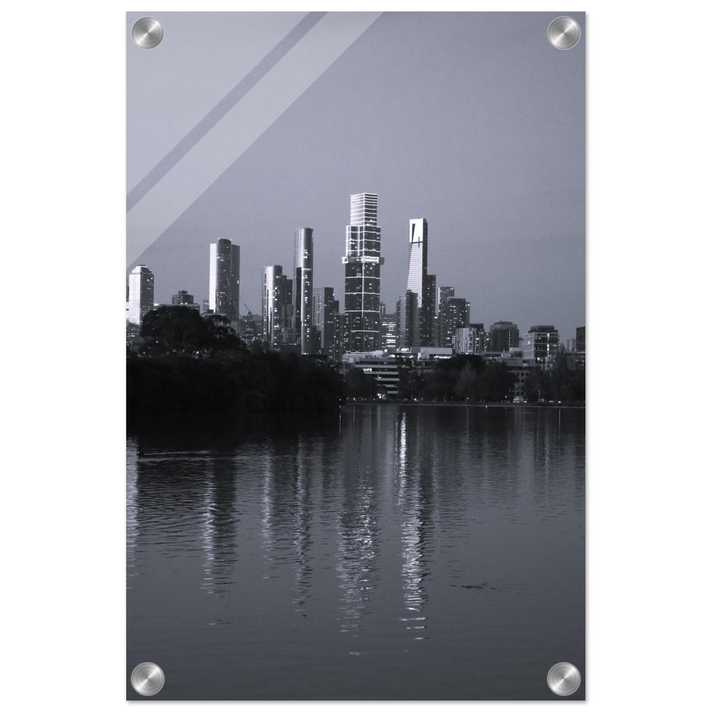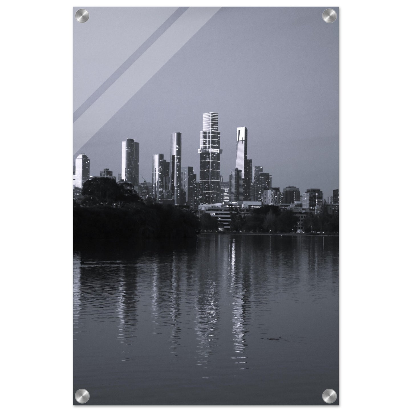 Melbourne skyscrapers at dusk - Black & White - Acrylic print (lightweight, shatterproof, and temperature-resistant, making them easy to mount on your walls.)