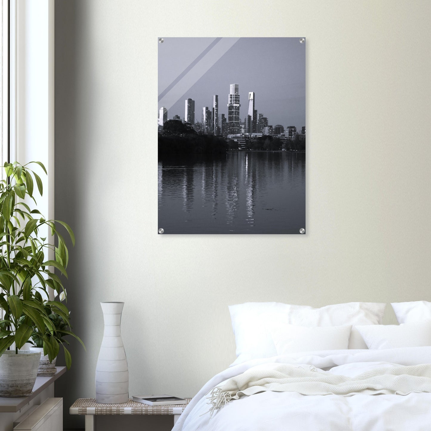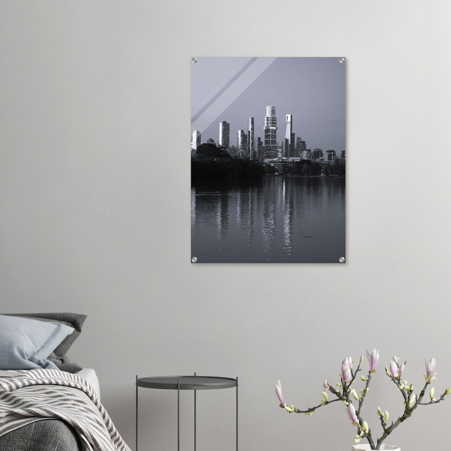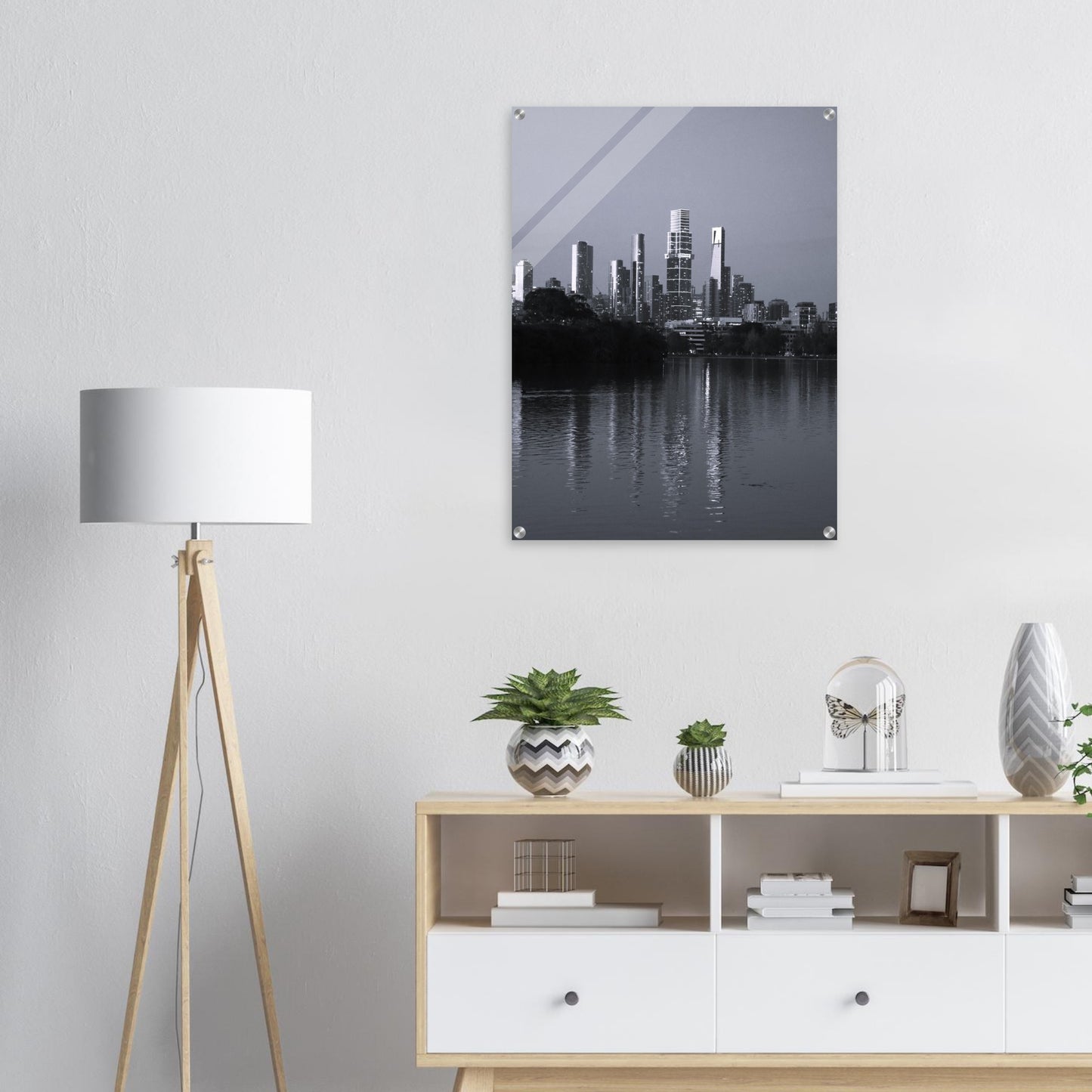 Melbourne skyscrapers at dusk - Black & White - Acrylic print (lightweight, shatterproof, and temperature-resistant, making them easy to mount on your walls.)