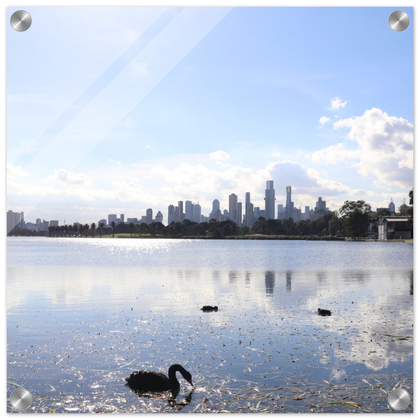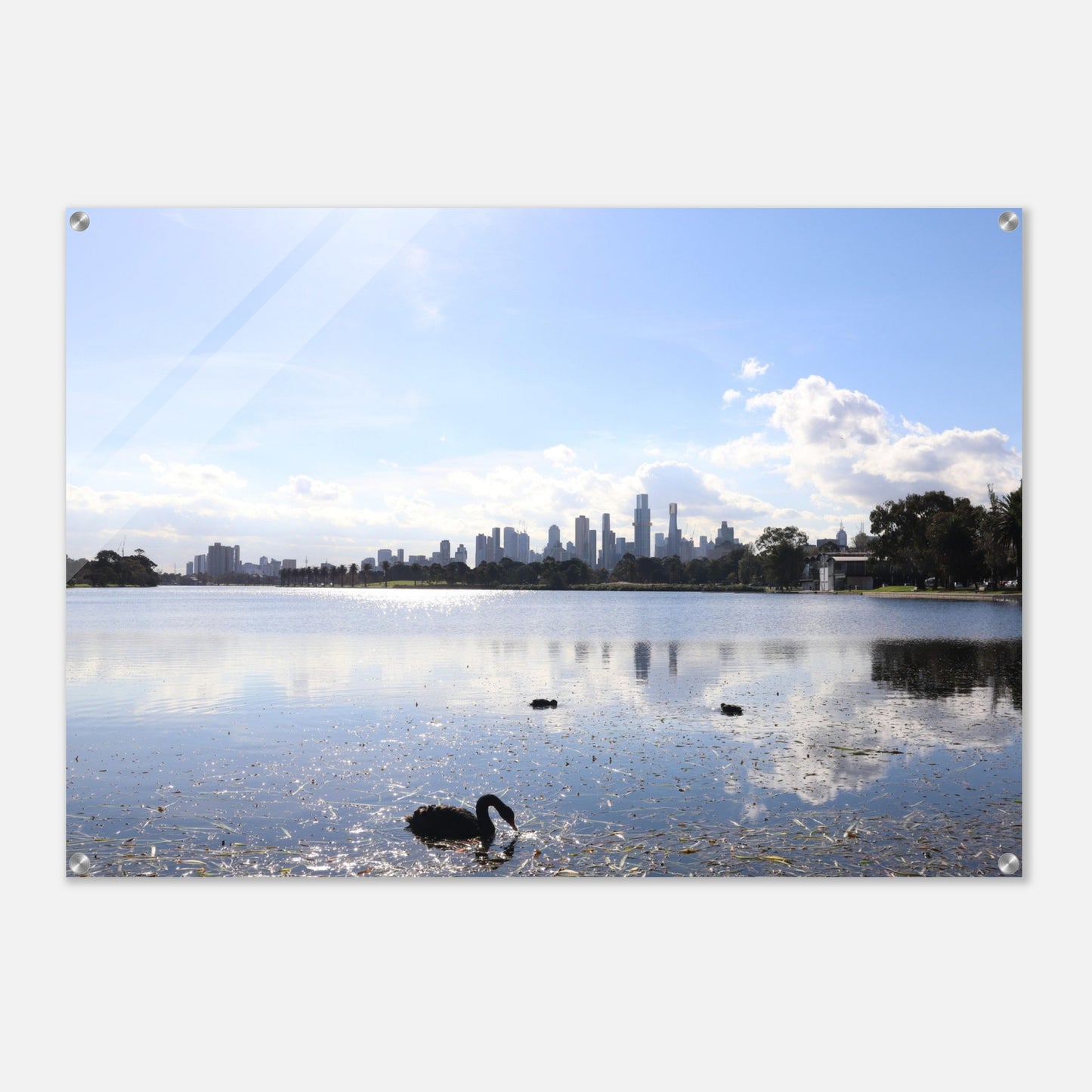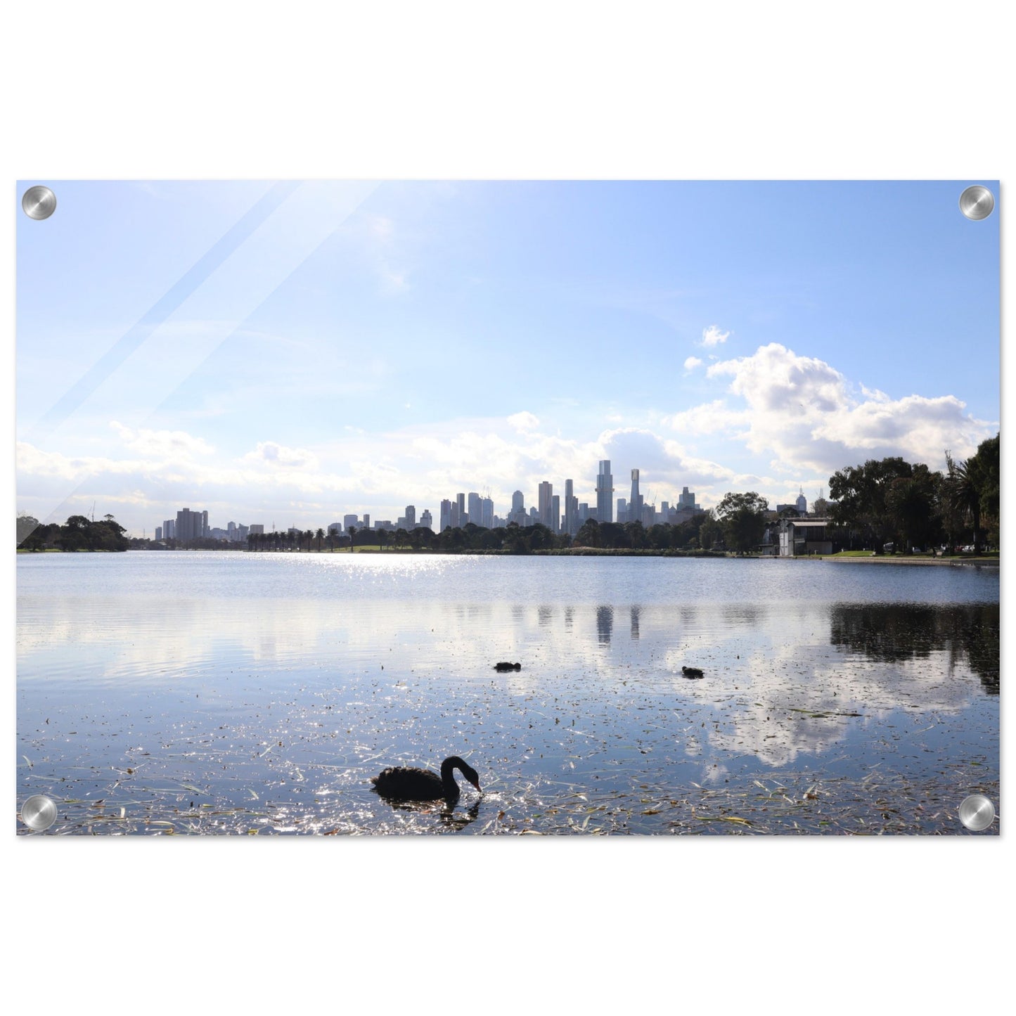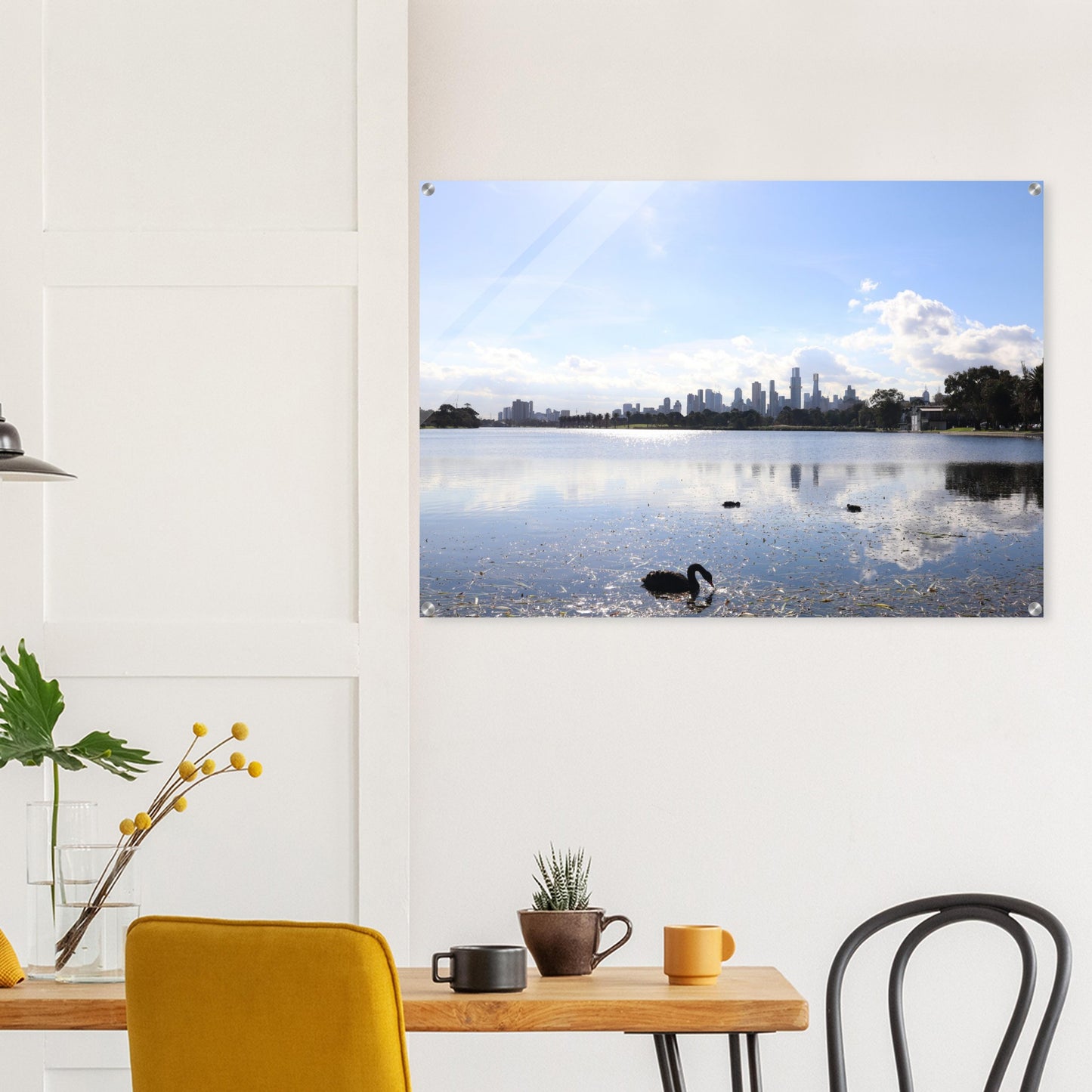 Melbourne skyline, Albert Park lake - Acrylic Print
