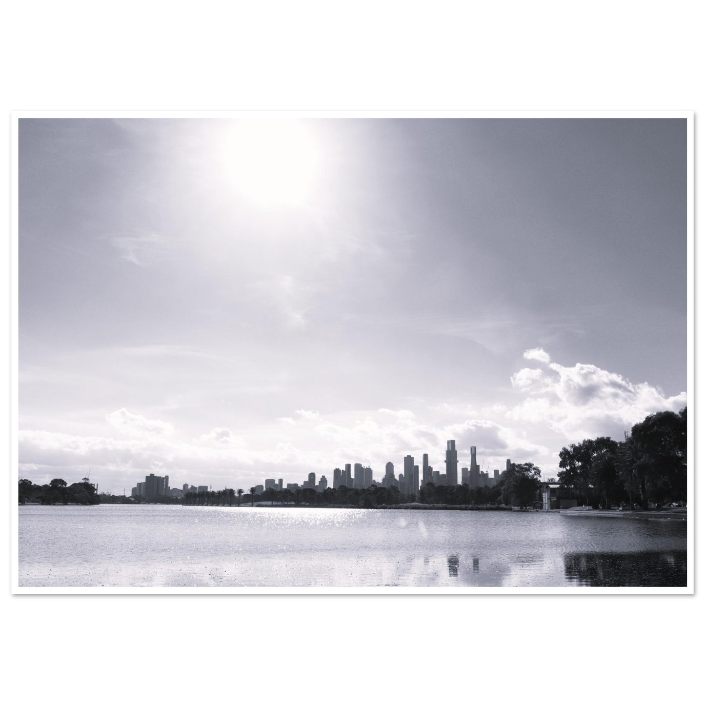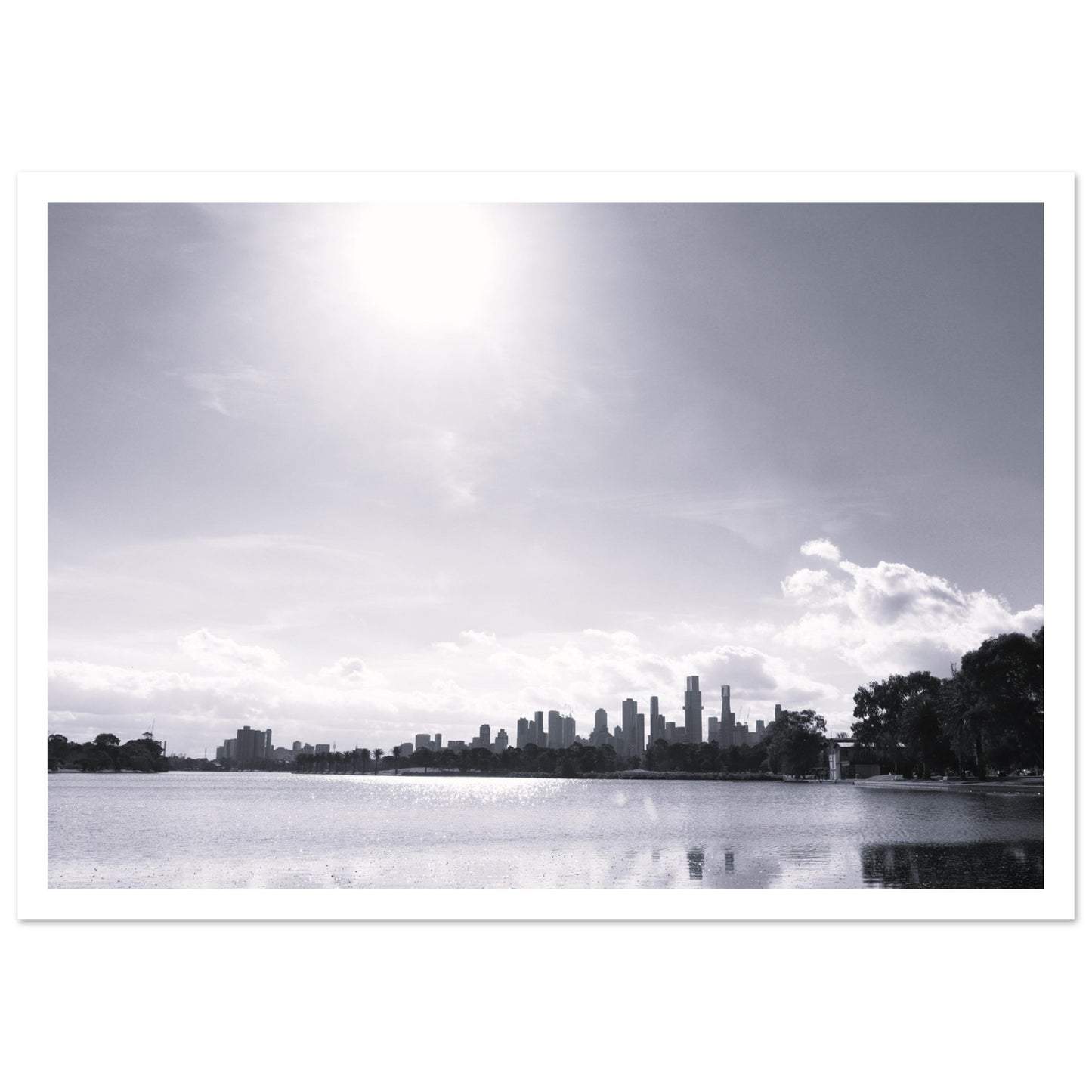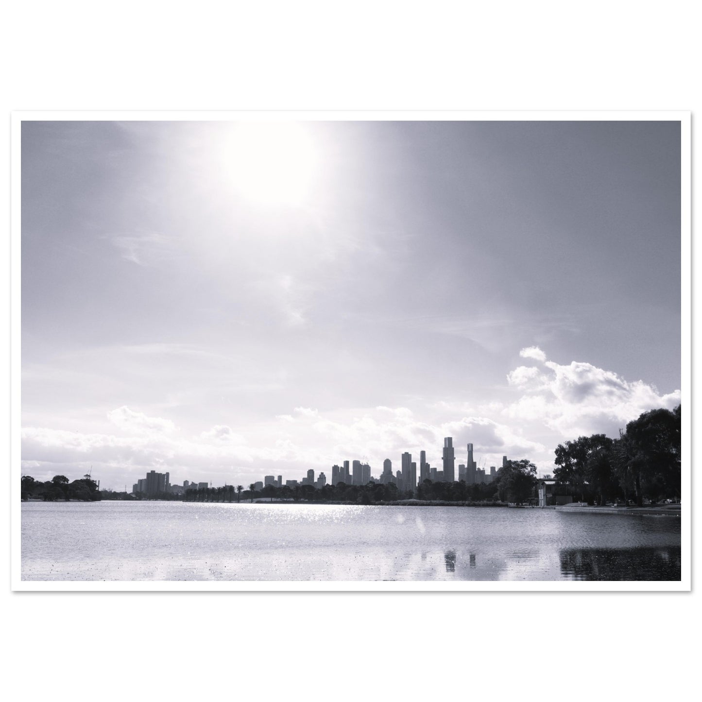 Melbourne skyline from Albert Park (B&W) - Premium Matte Paper Poster