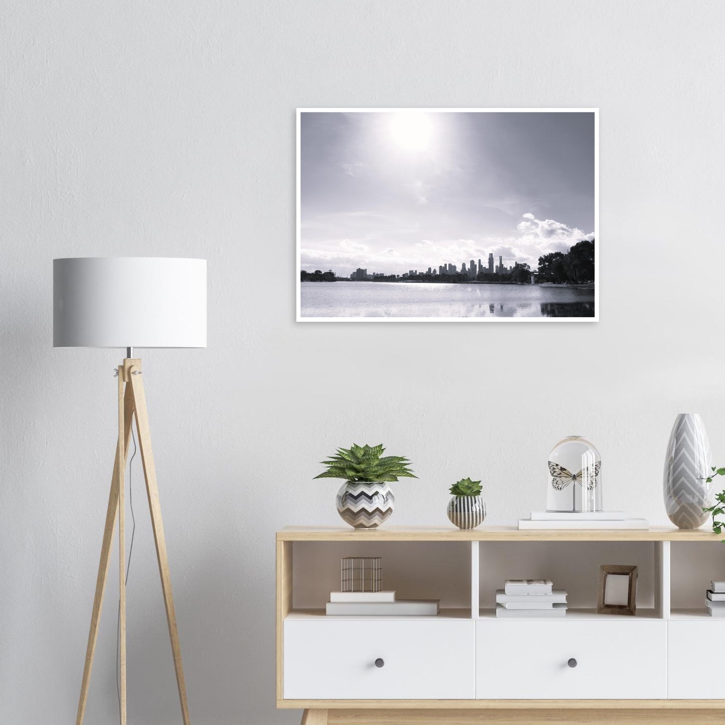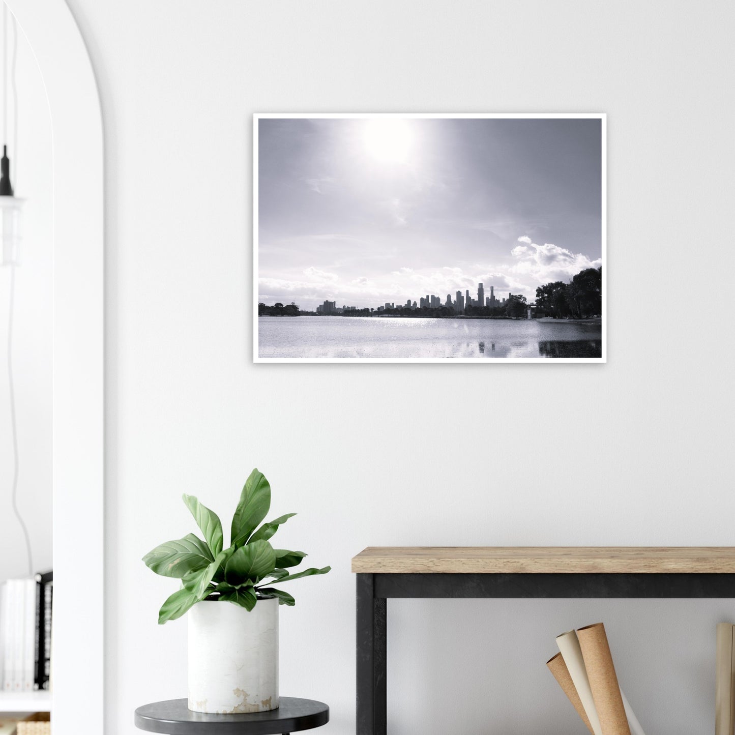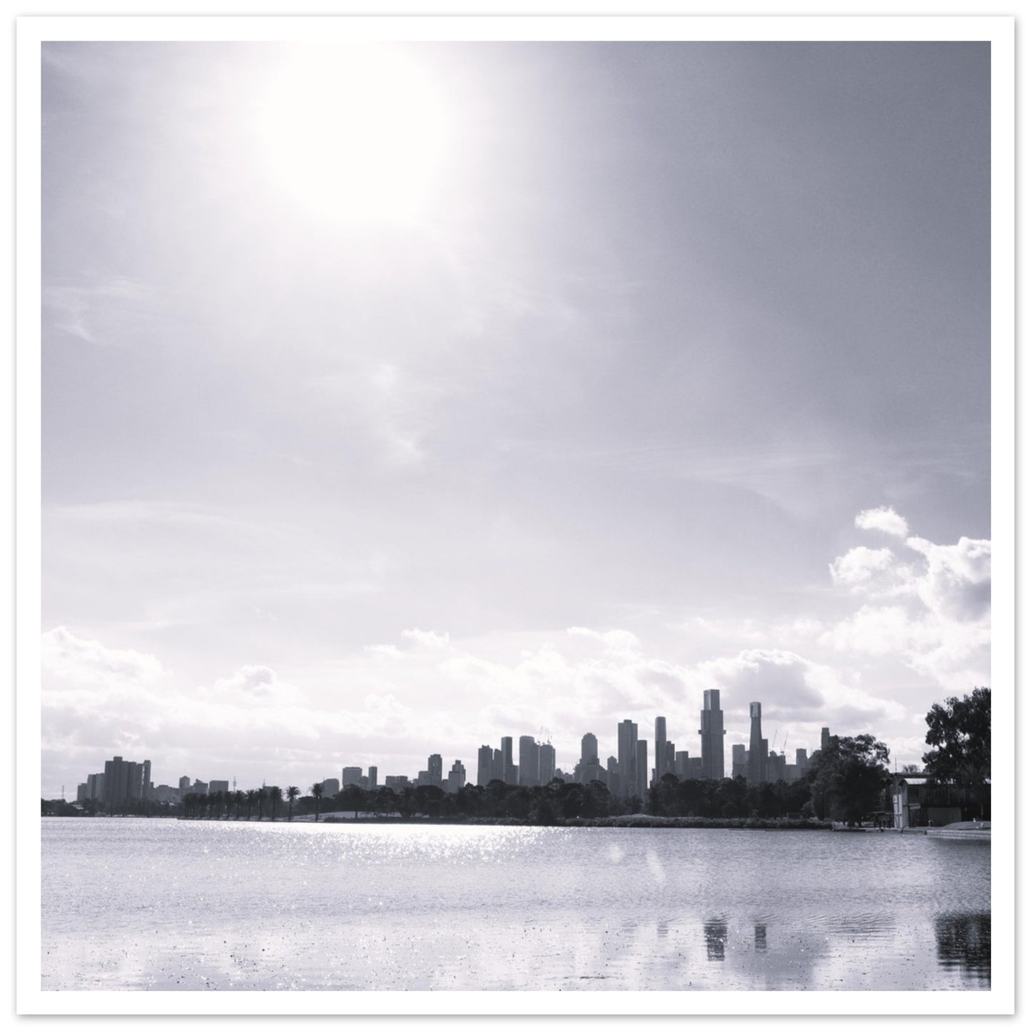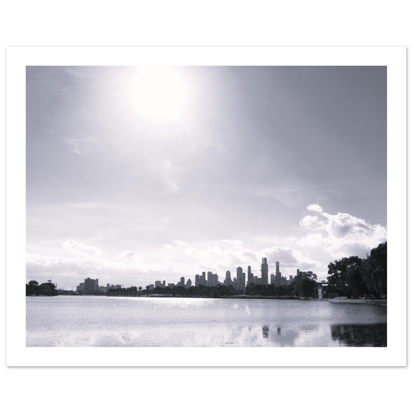 Melbourne skyline from Albert Park (B&W) - Premium Matte Paper Poster