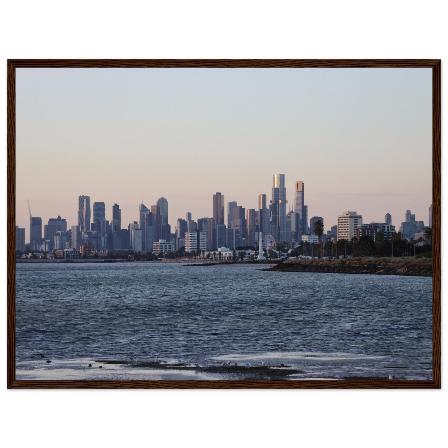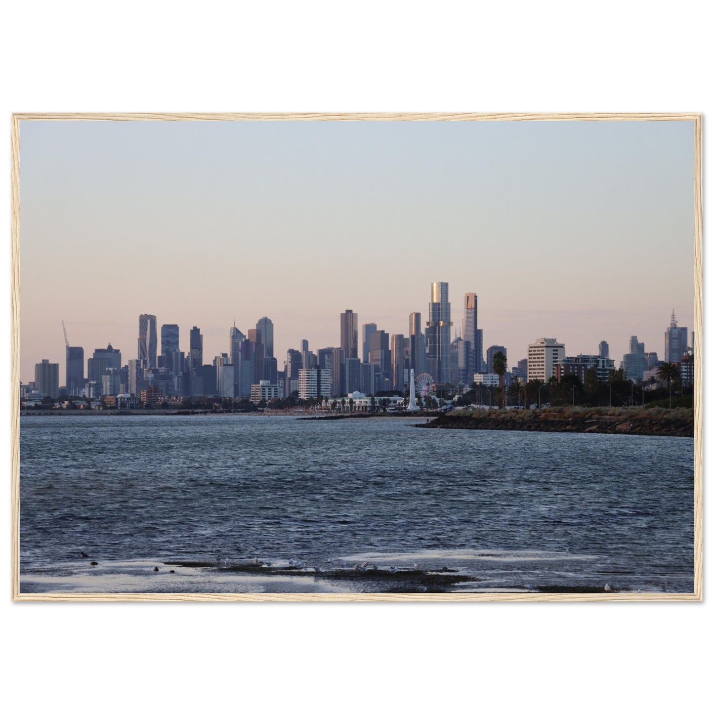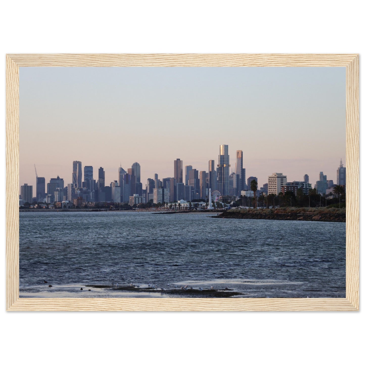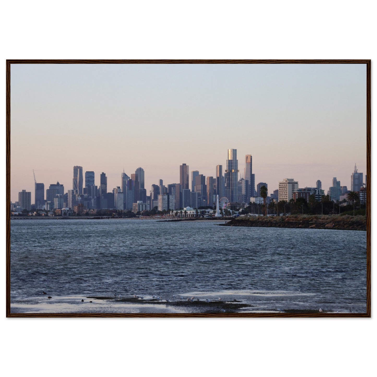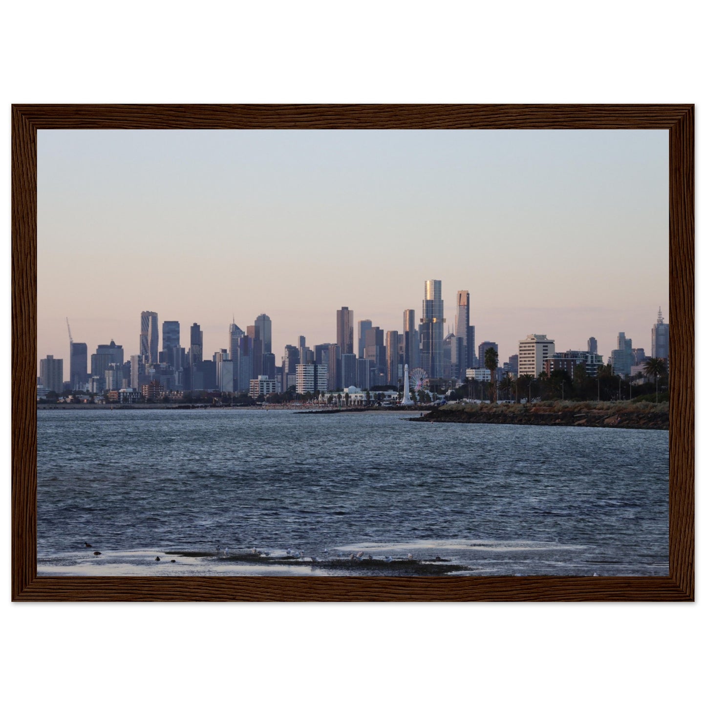 Melbourne skyline at dusk, Australia - Premium matte paper poster with wooden frame