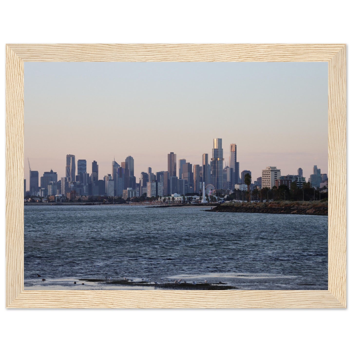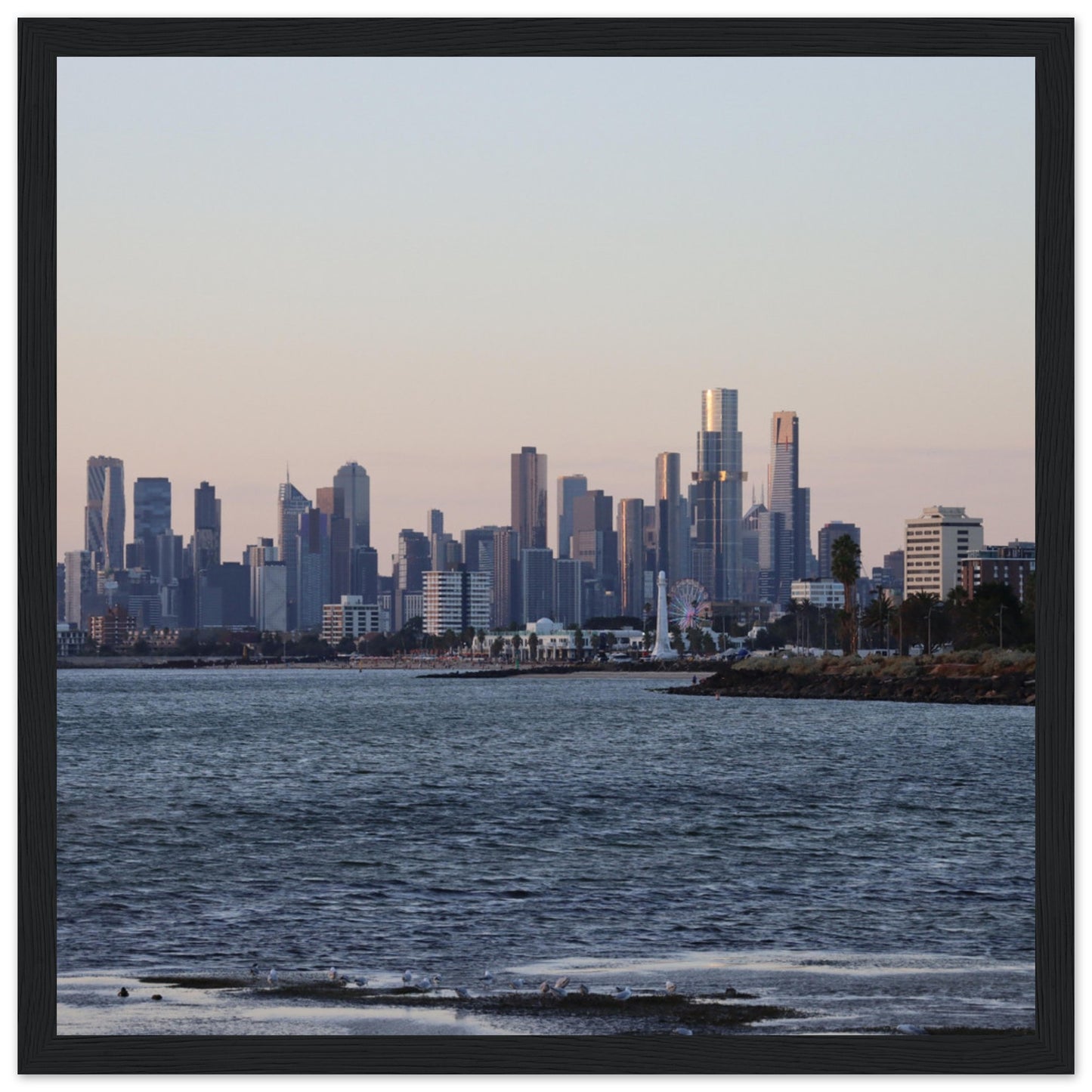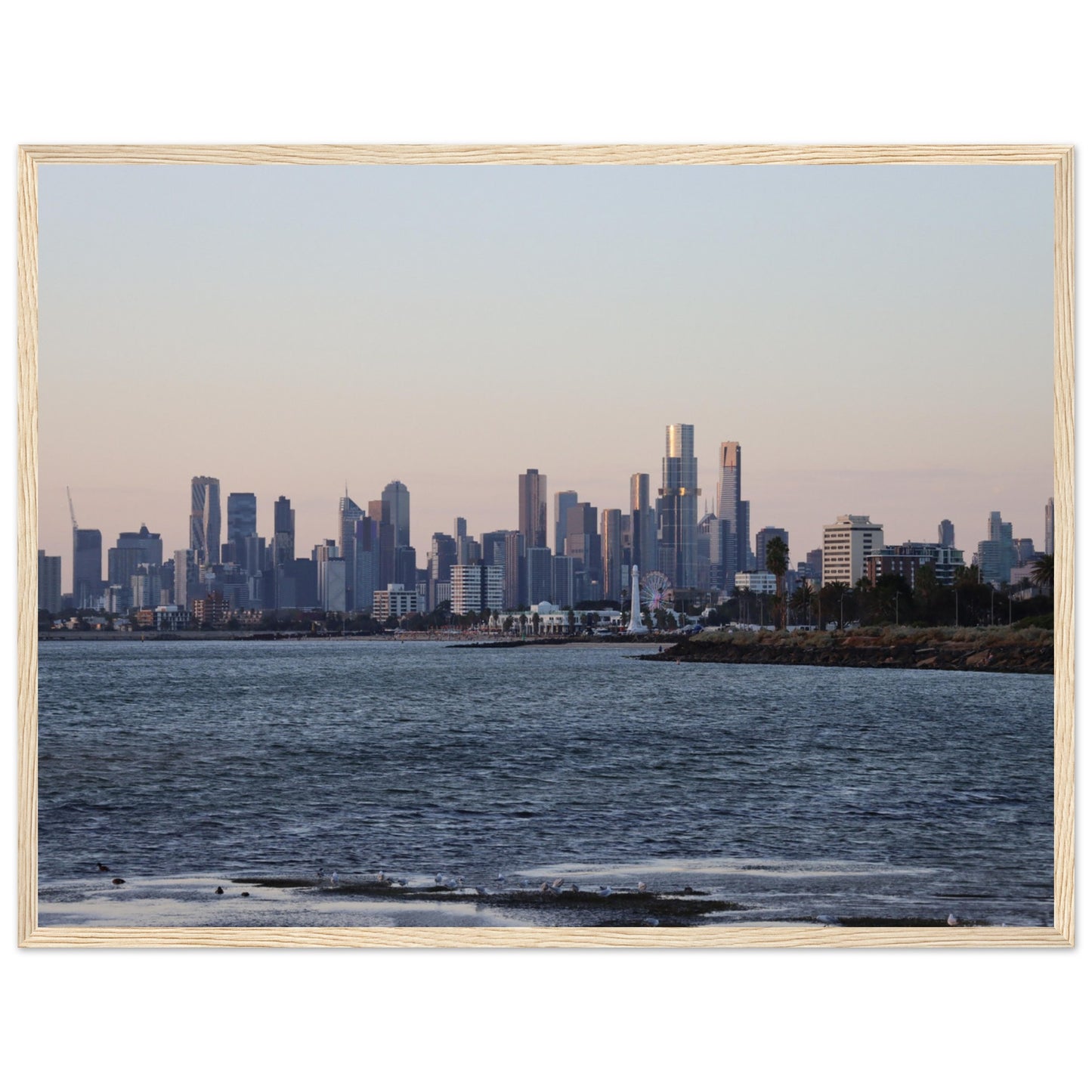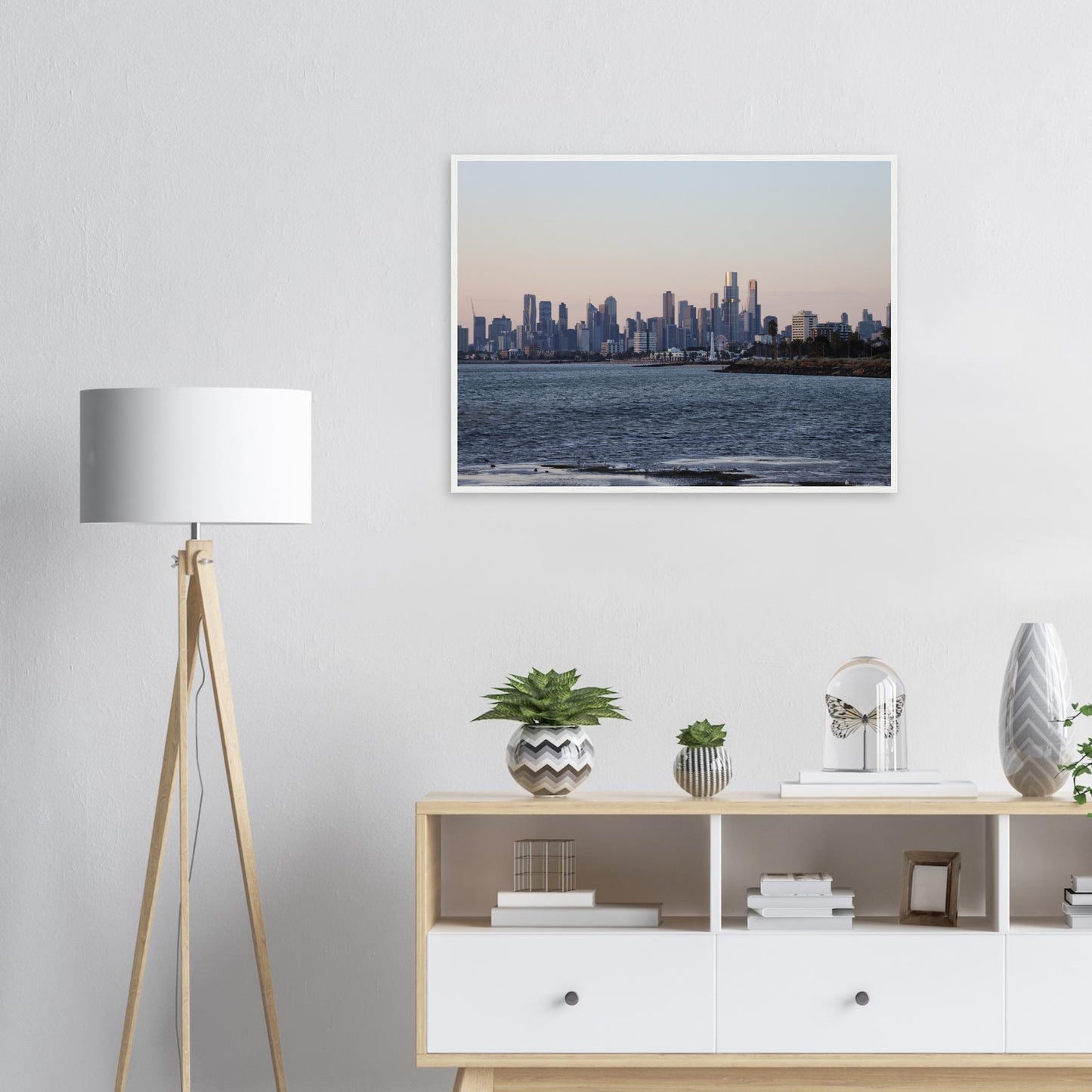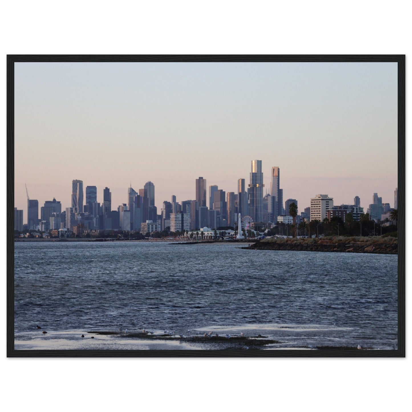 Melbourne skyline at dusk, Australia - Premium matte paper poster with wooden frame