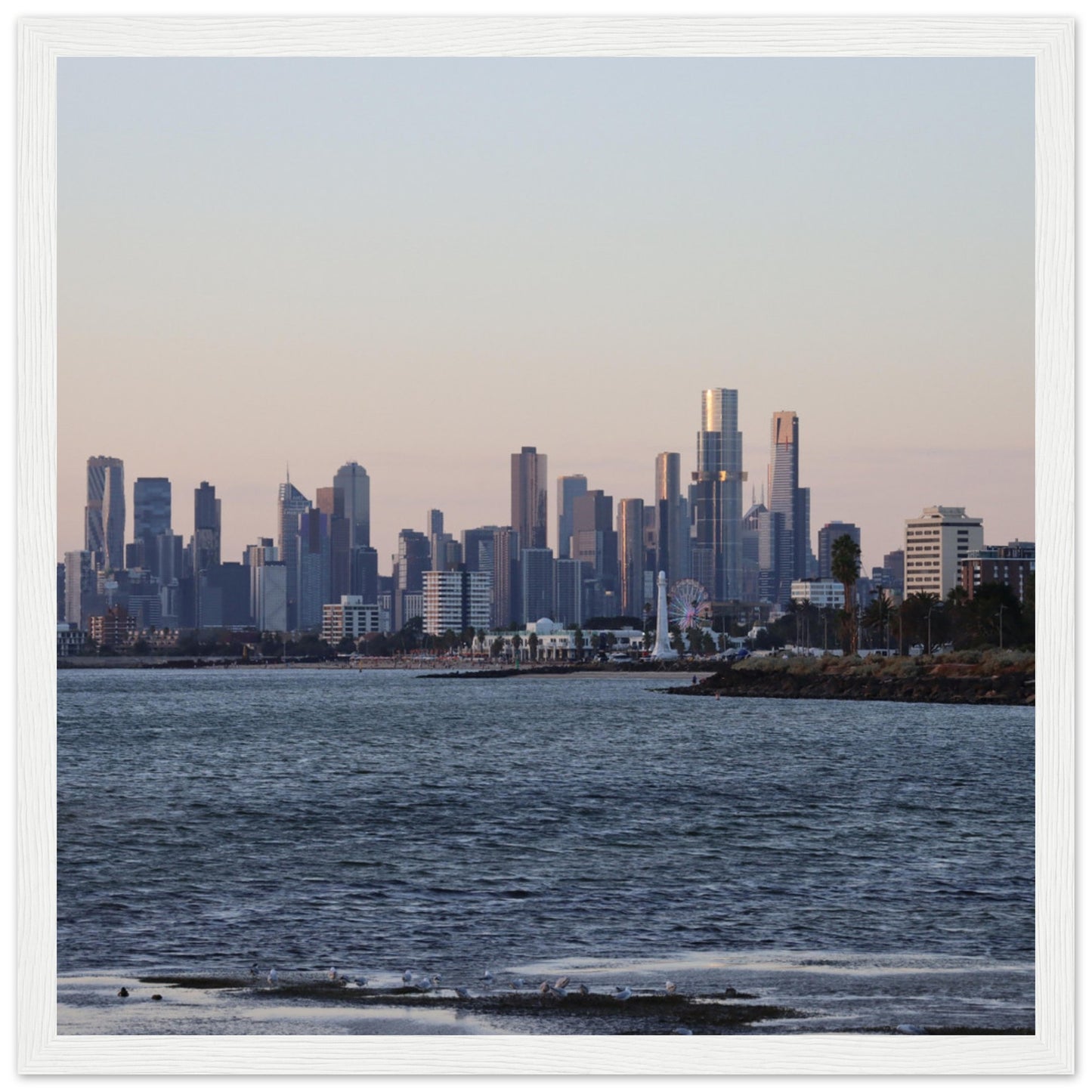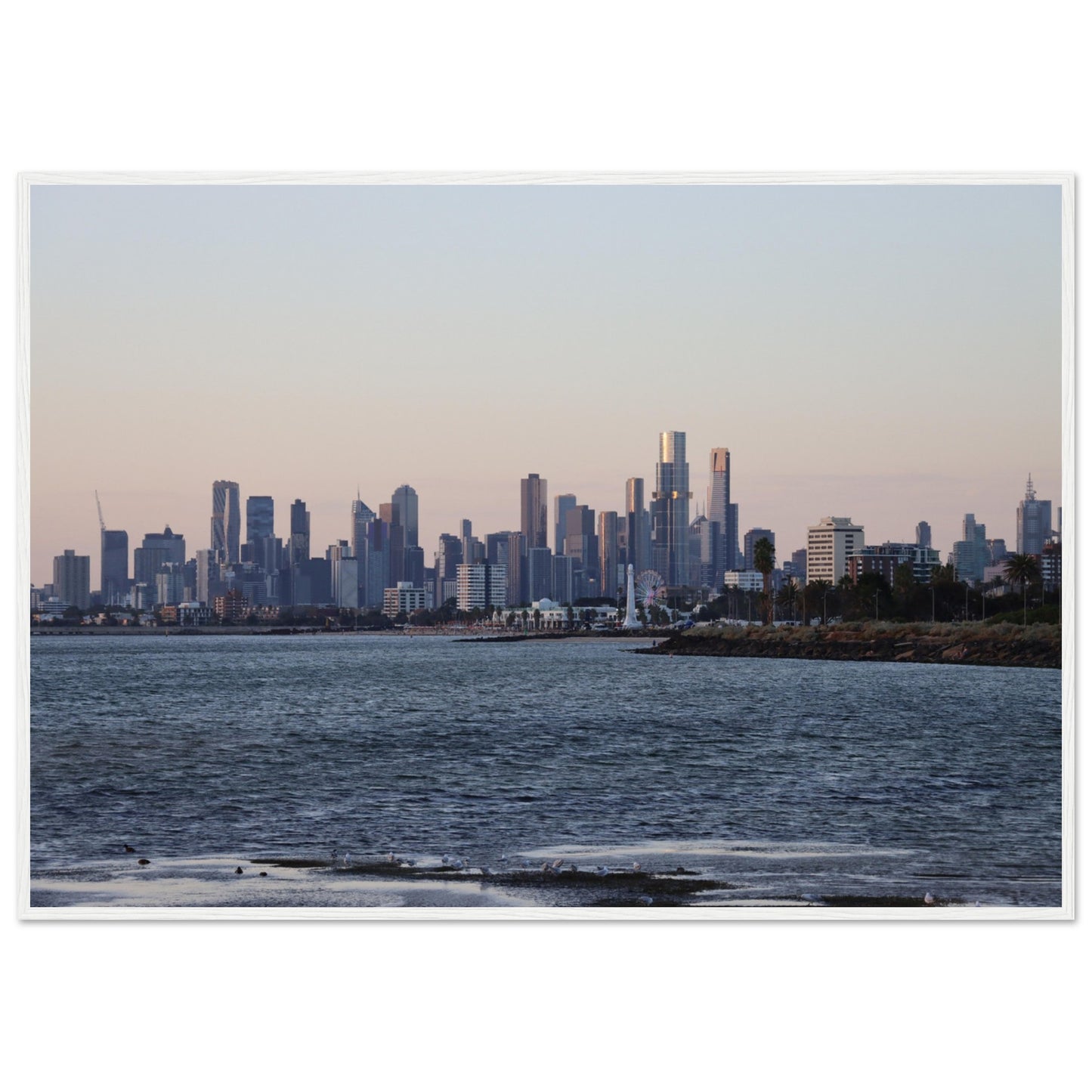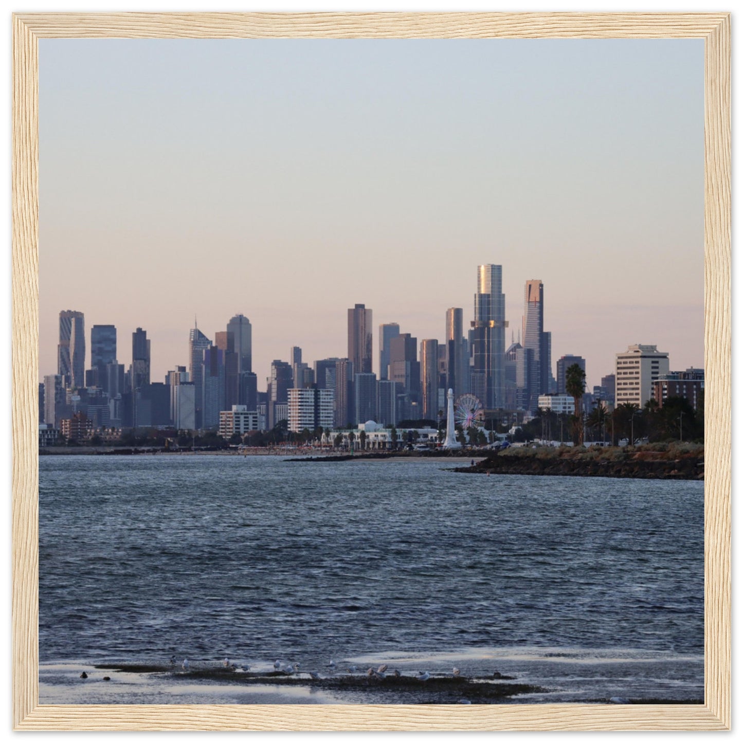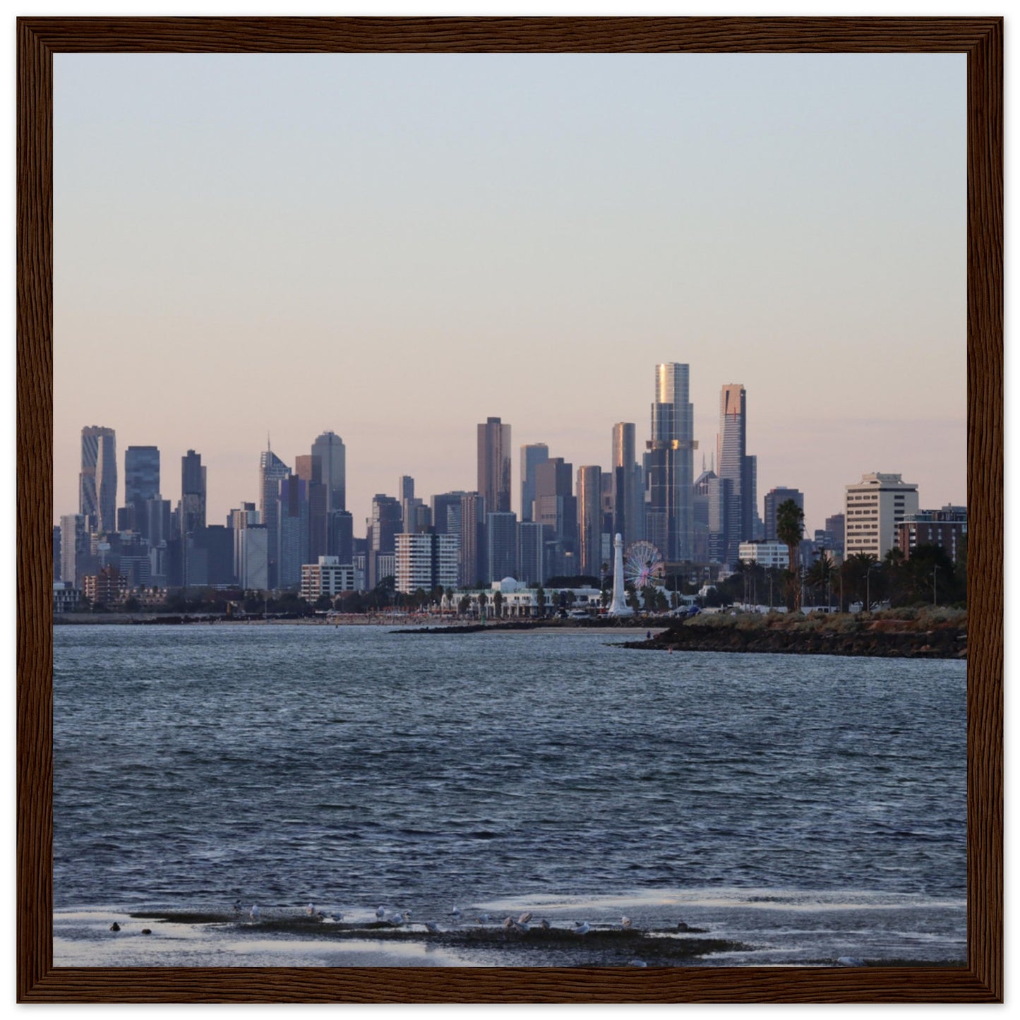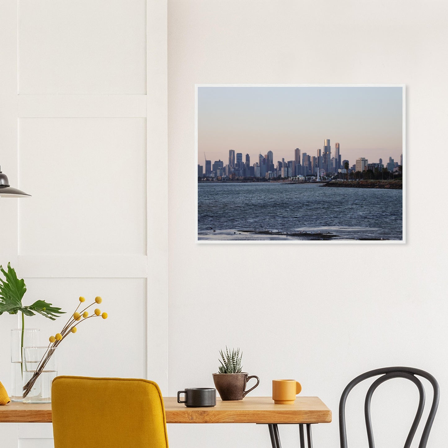 Melbourne skyline at dusk, Australia - Premium matte paper poster with wooden frame