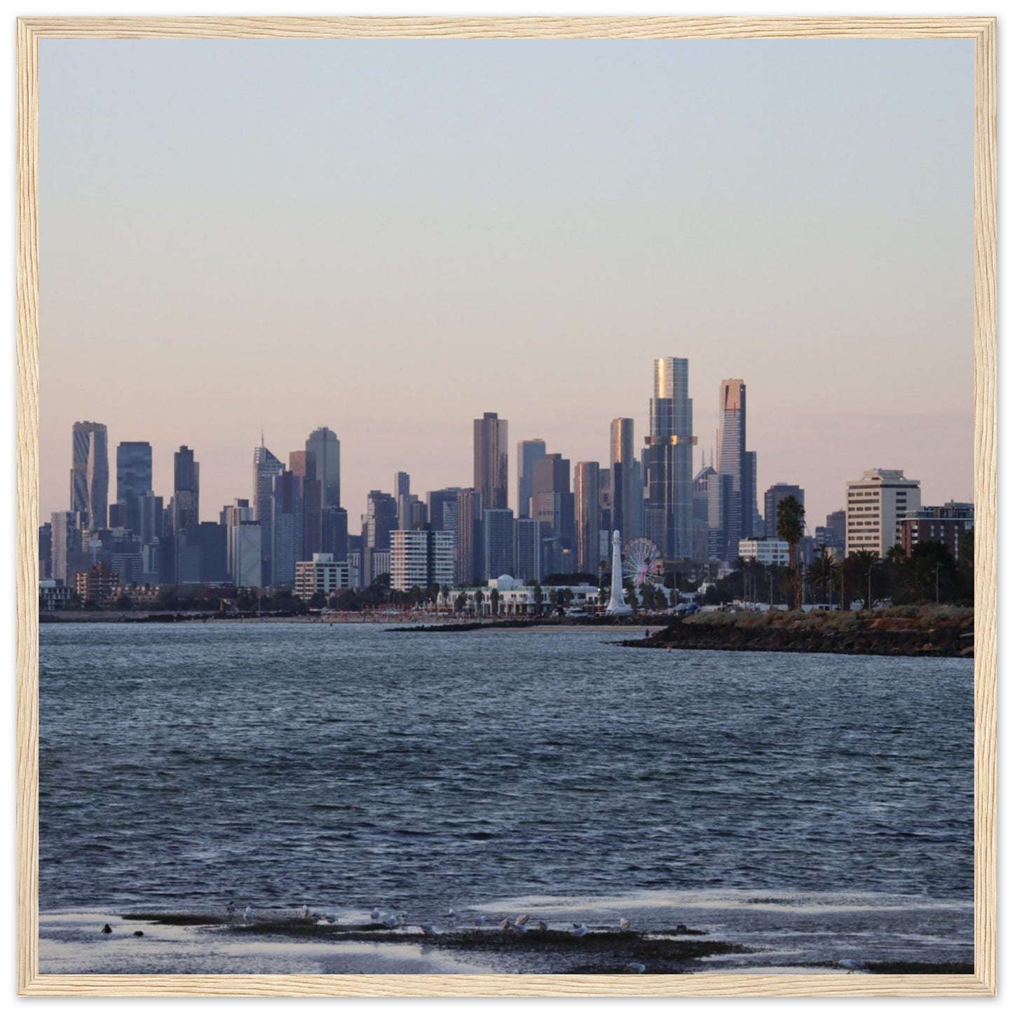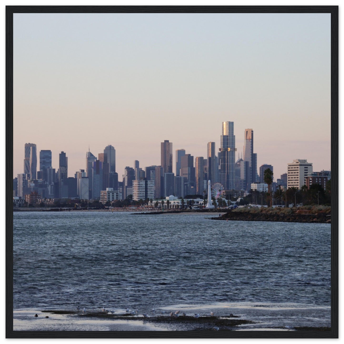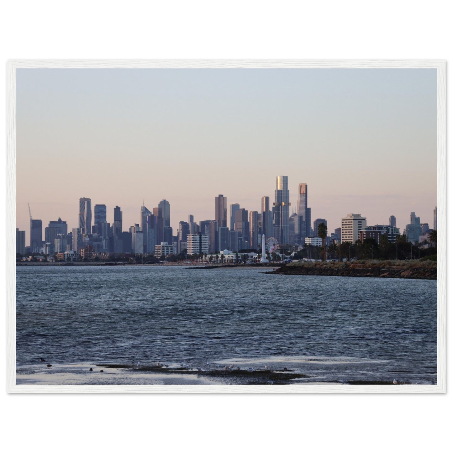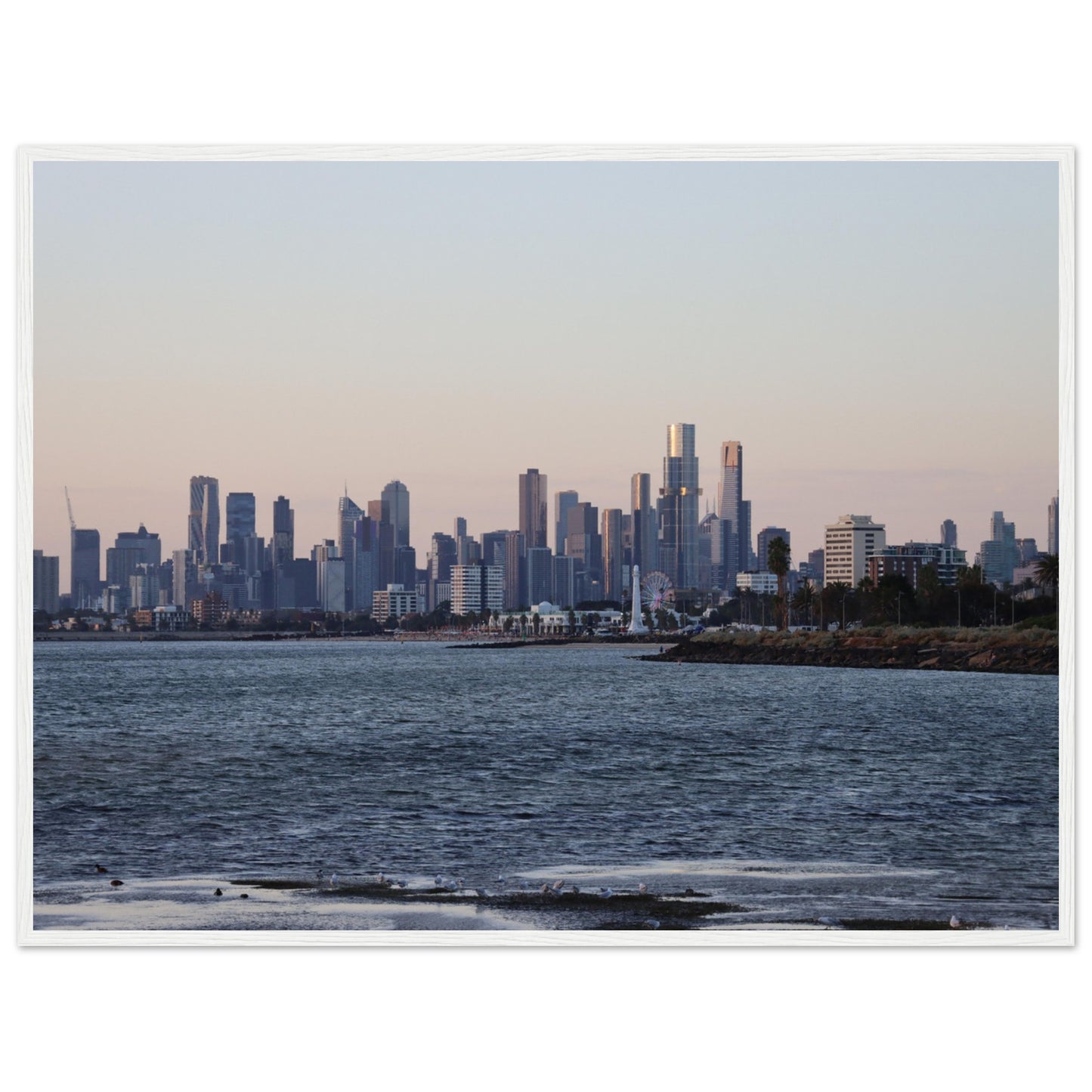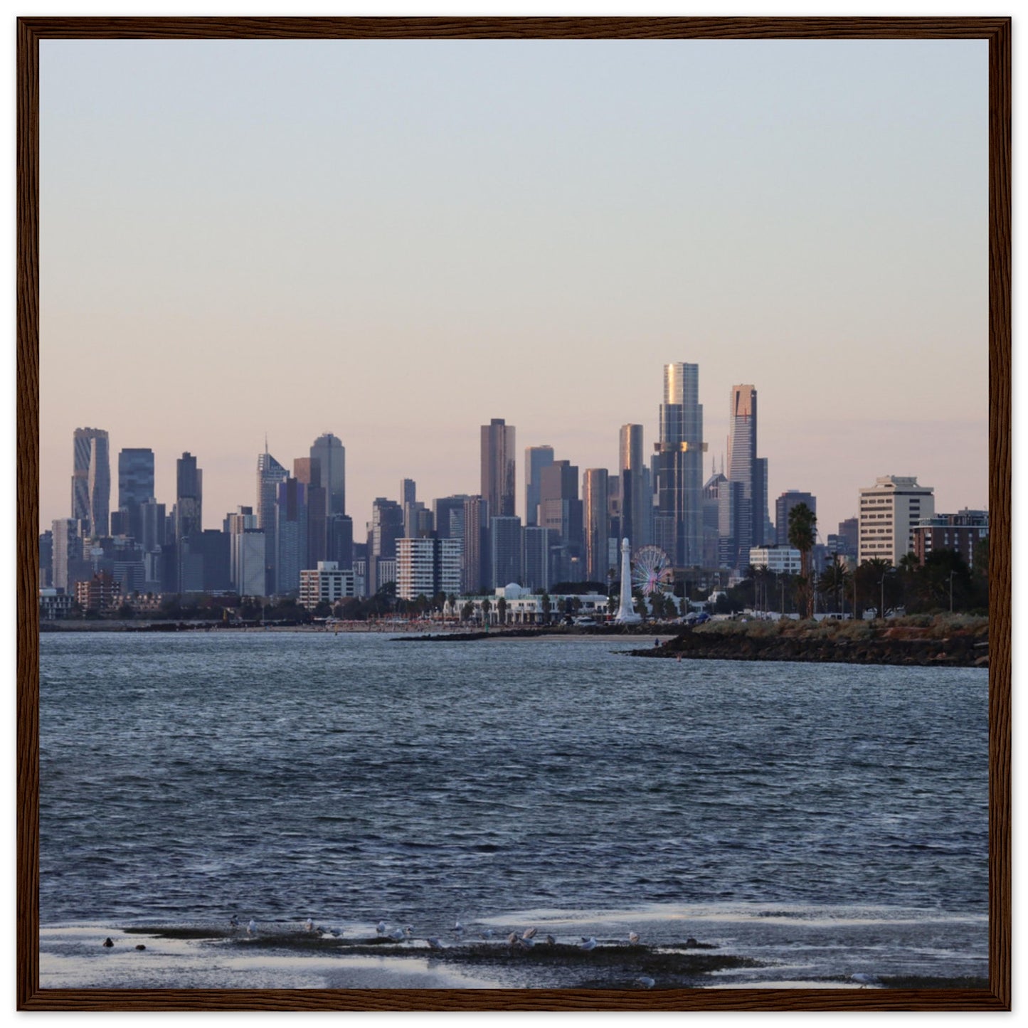 Melbourne skyline at dusk, Australia - Premium matte paper poster with wooden frame